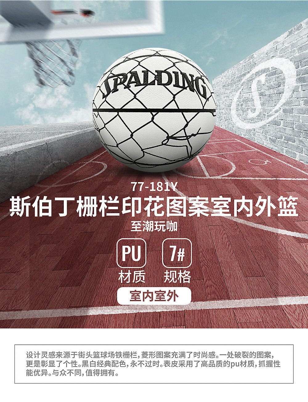 Spalding Официальная печать на ограждениях Spalding, универсальный баскетбольный мяч PU7 для использования в помещении и на открытом воздухе, стандартный баскетбольный мяч для дня рождения