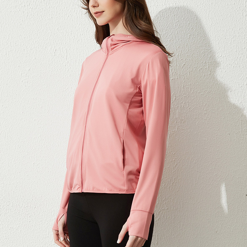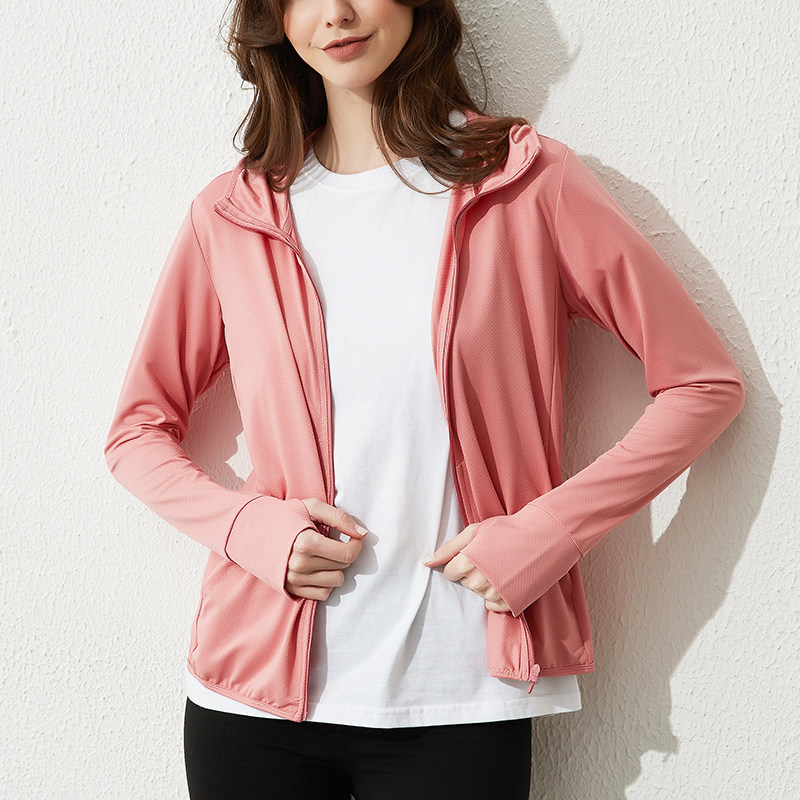 Весенняя летняя спортивная тонкая одежда для защиты от солнца для отдыха, розовый кардиган с капюшоном с молнией, для бега, защита от ультрафиолета