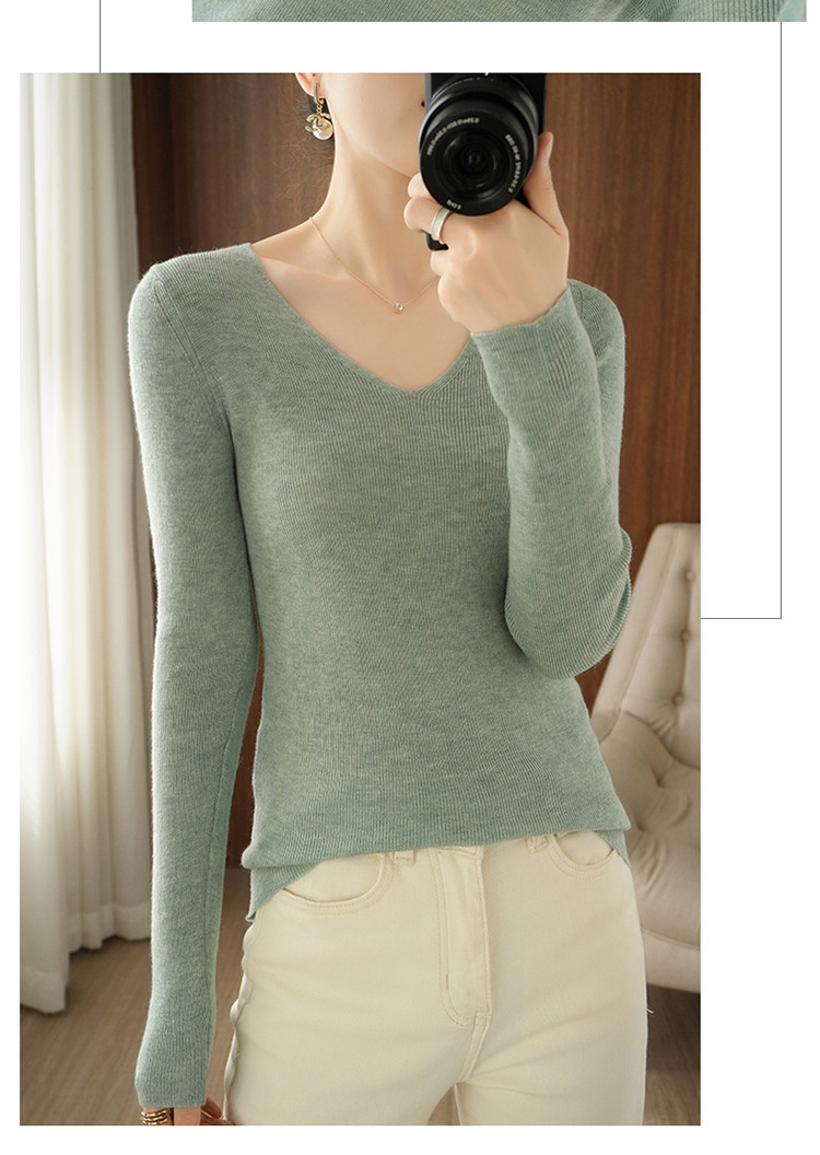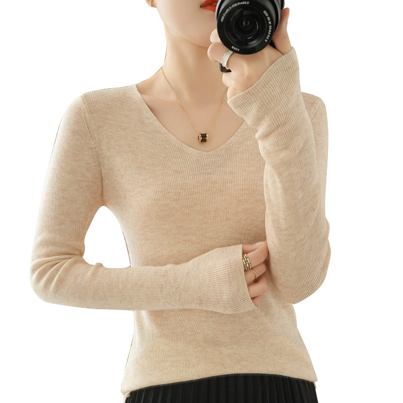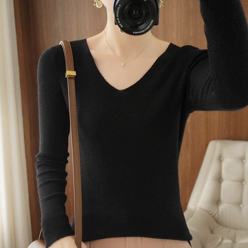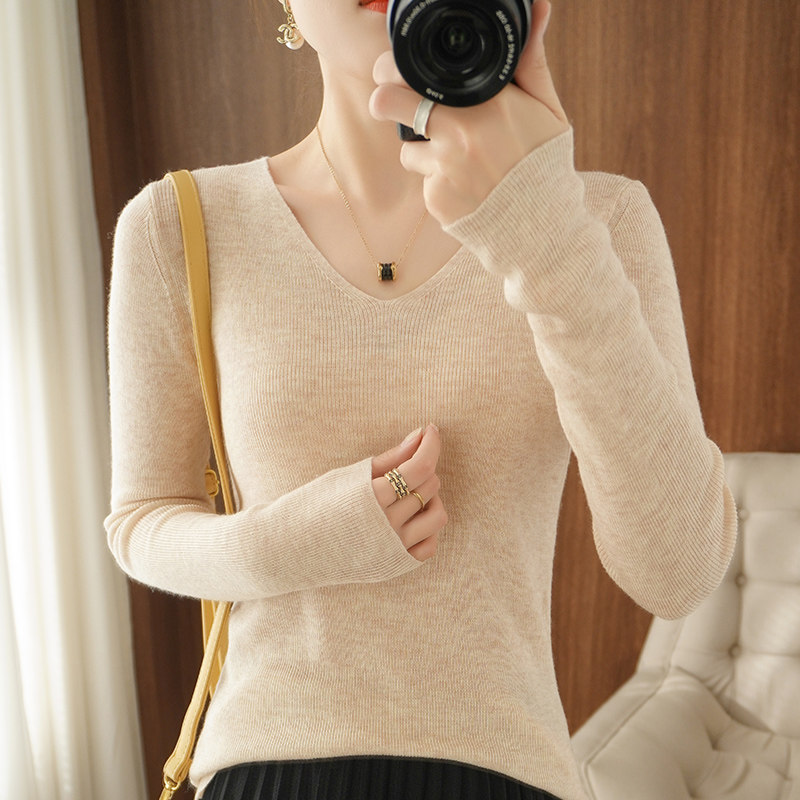 Осенний шерстяной свитер, приталенный трикотажный приятный телу тонкий лонгслив, коллекция 2021, в корейском стиле