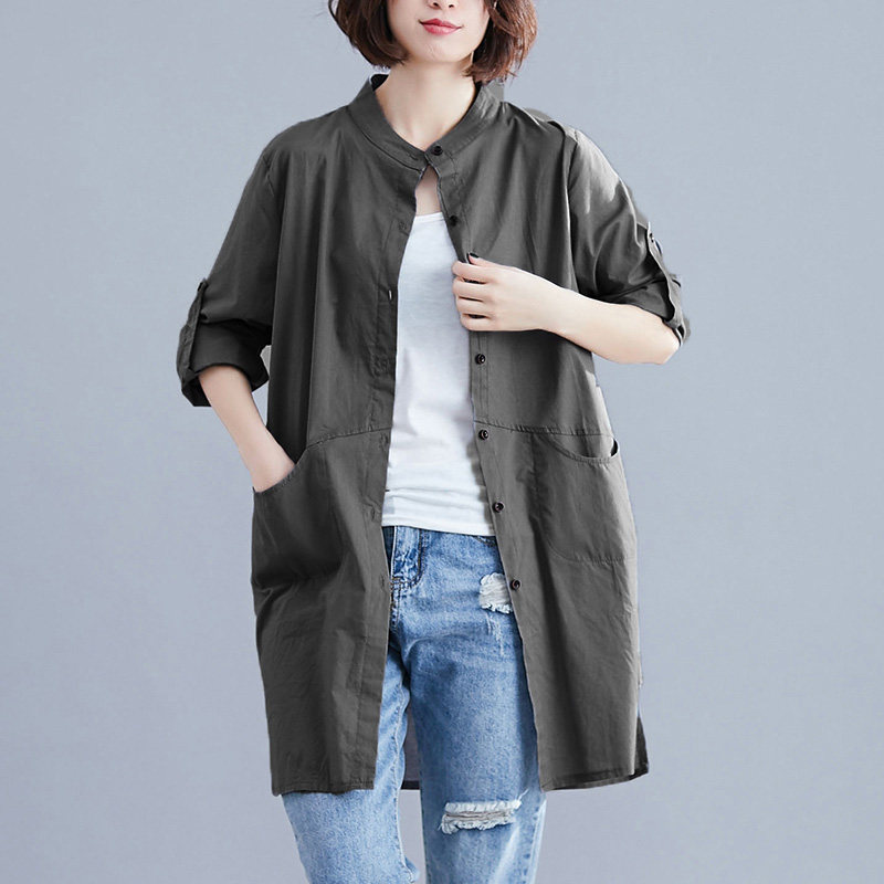 Длинная летняя рубашка, цветной лонгслив, кардиган, оверсайз, из хлопка и льна, средней длины