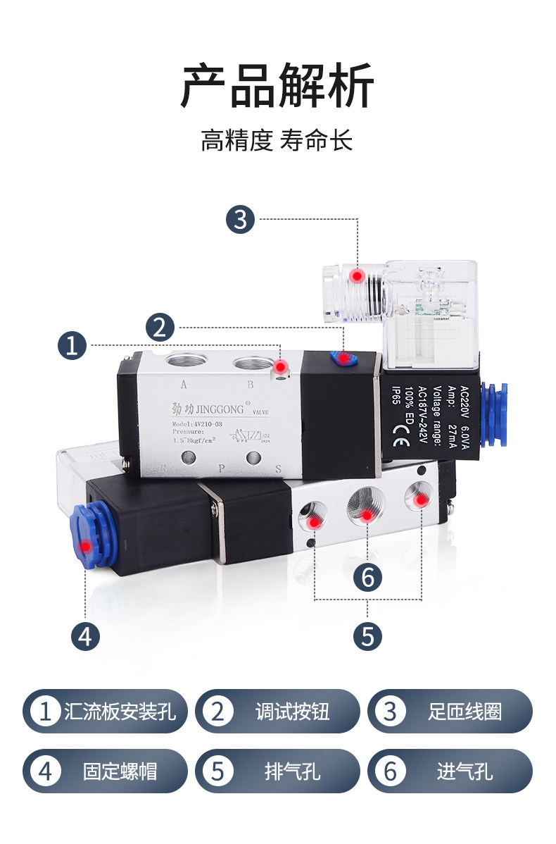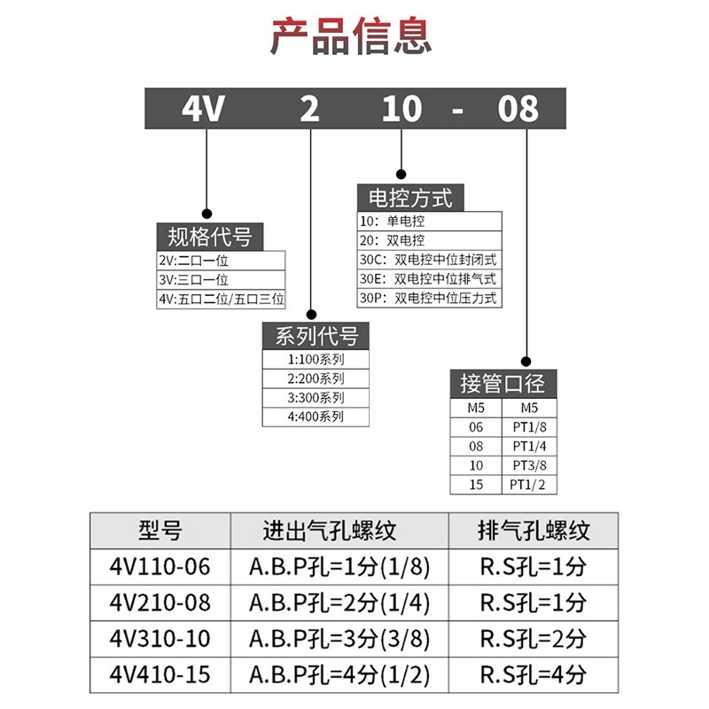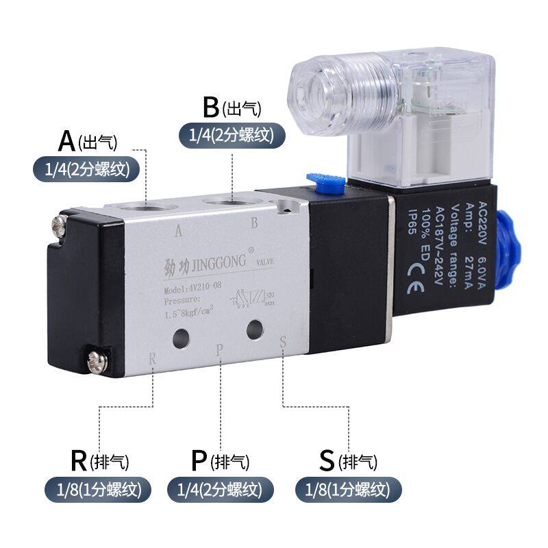 4V210-08 Пневматический соленоидный клапан двухуровневого пятиуровневого электромагнитного замены Группа управления клапанами 220 В клапана 220 В.