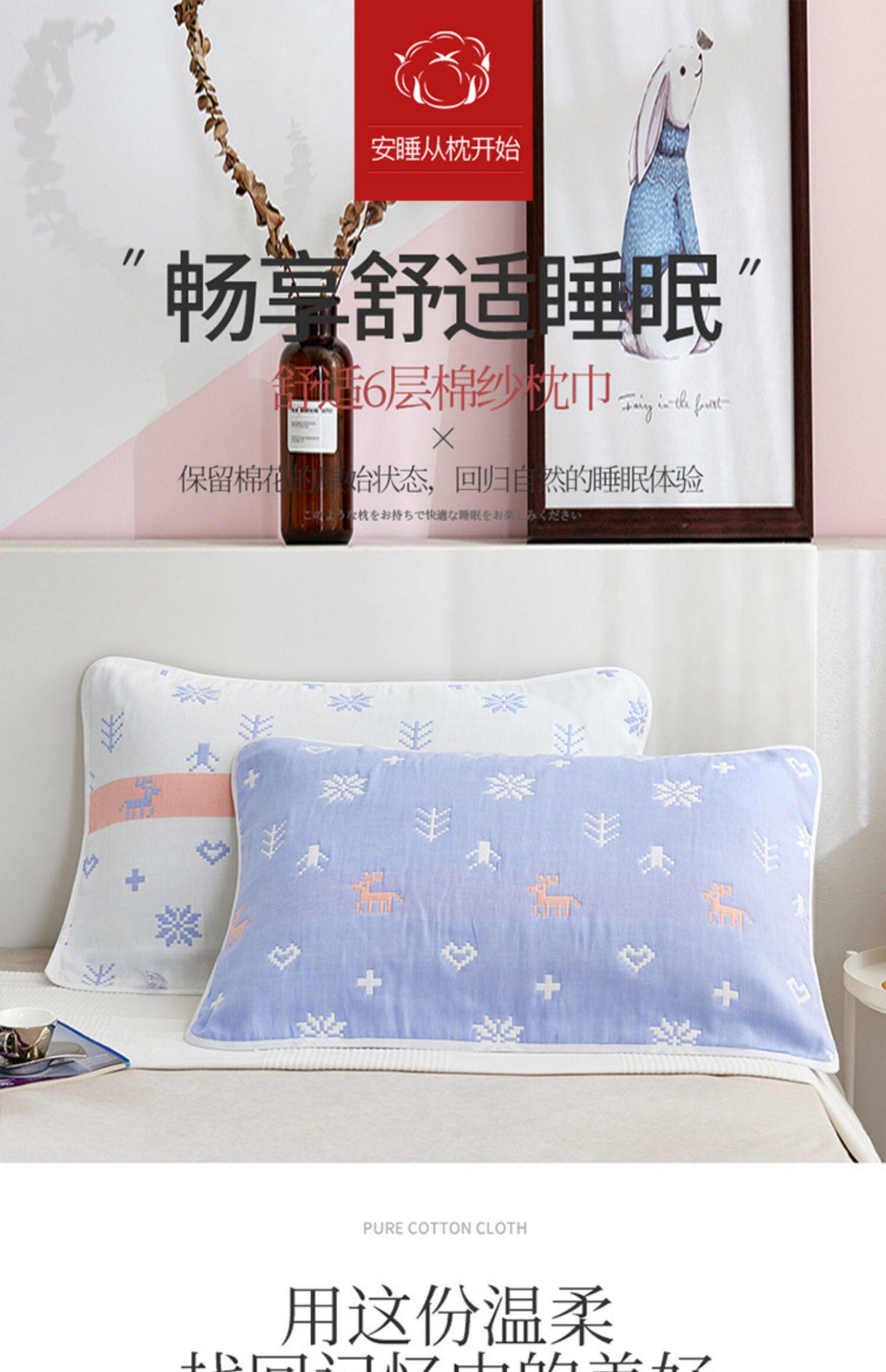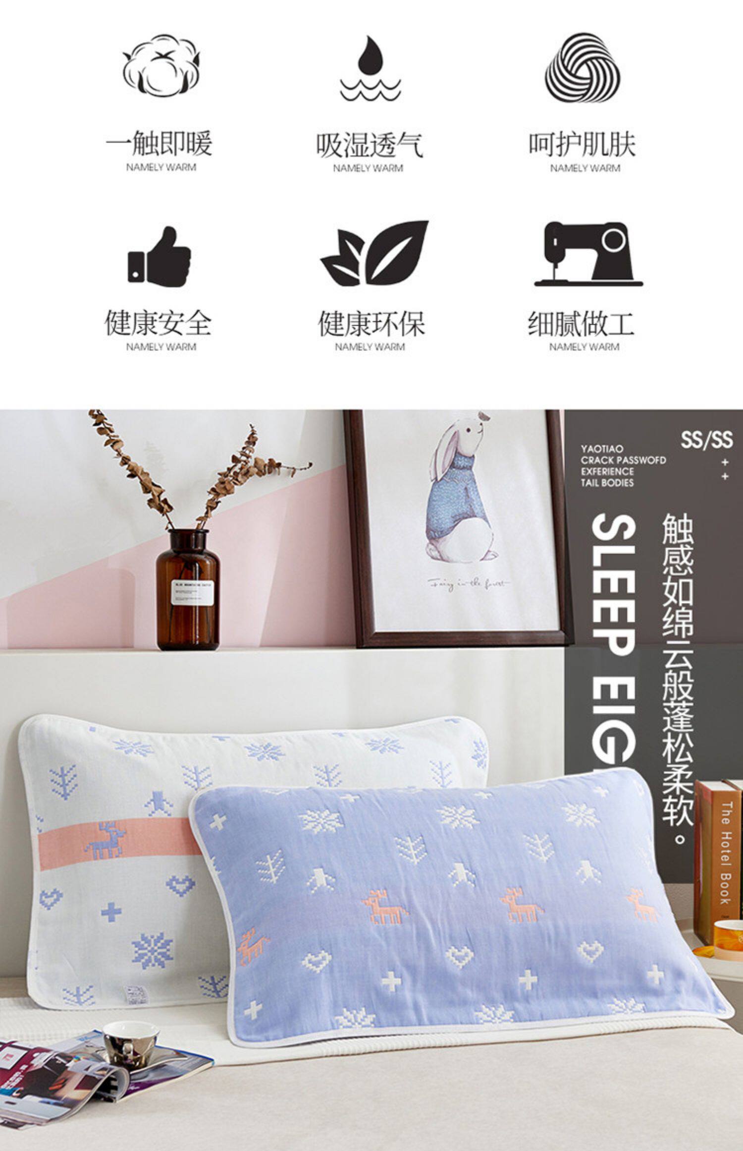 Хлопковая марлевая скандинавская мультяшная нескользящая наволочка, подушка, платок
