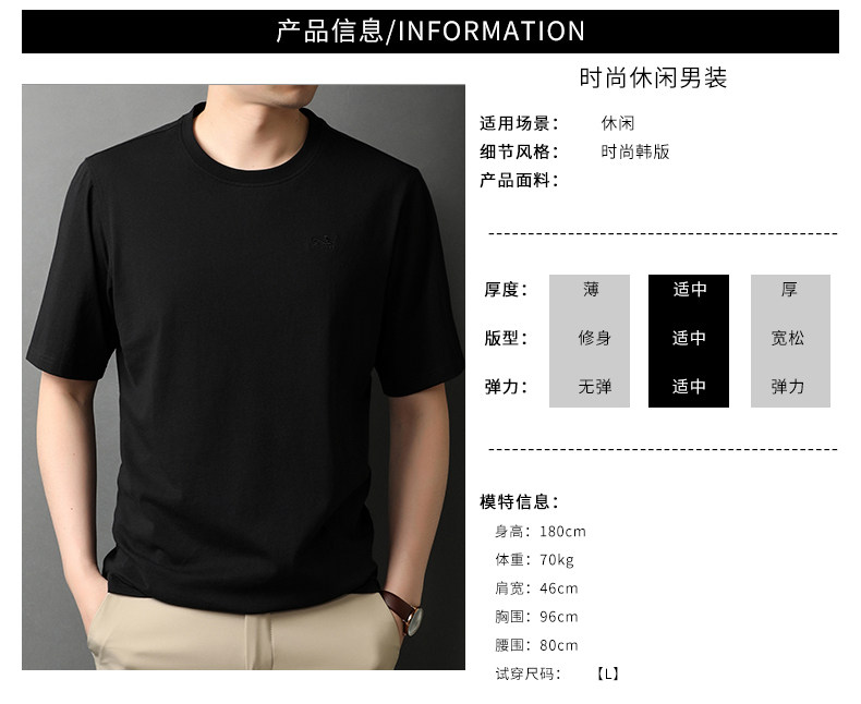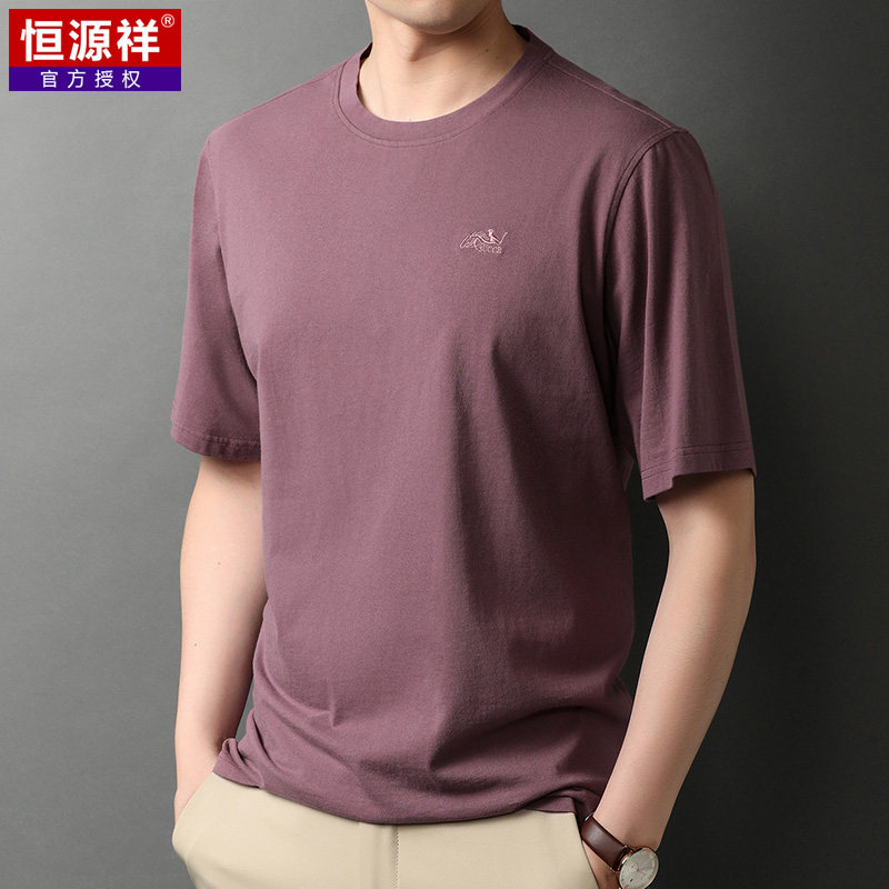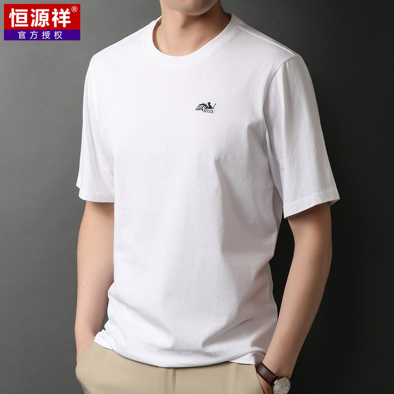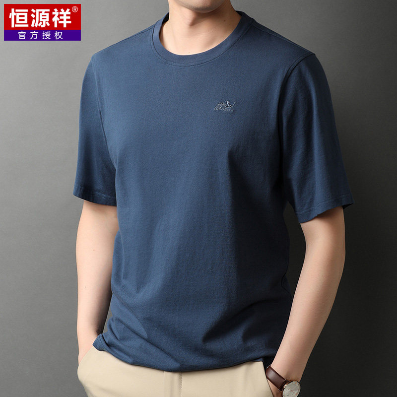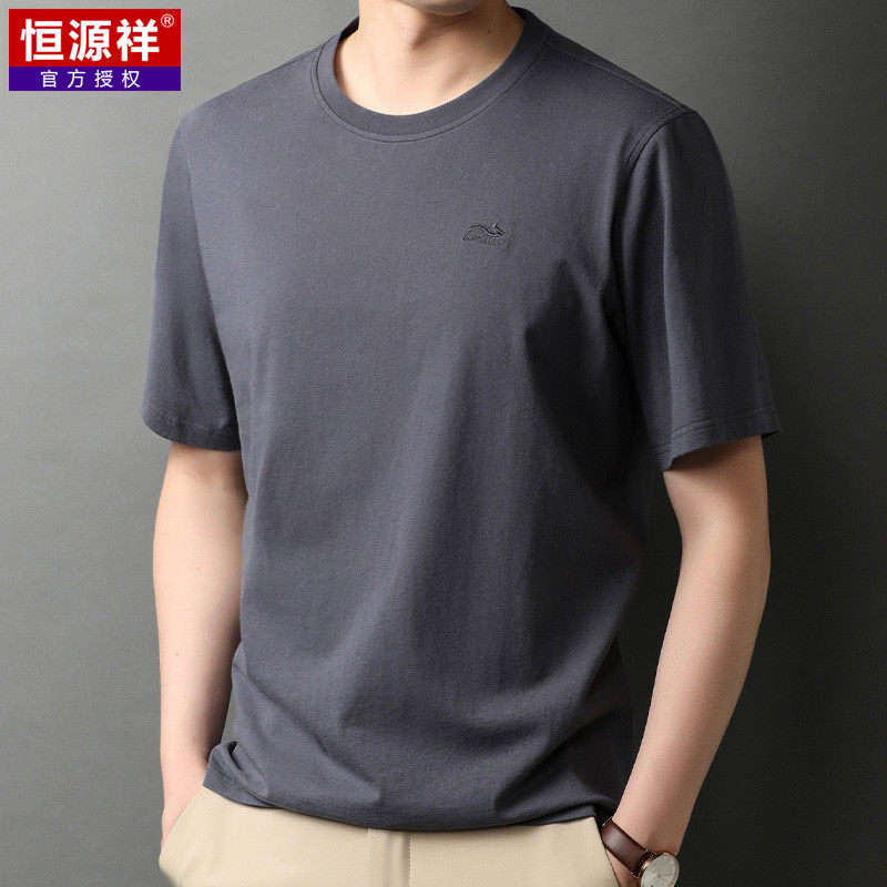 恒源祥 Мужская летняя хлопковая футболка с коротким рукавом с круглым воротником, оверсайз