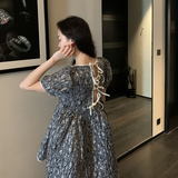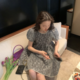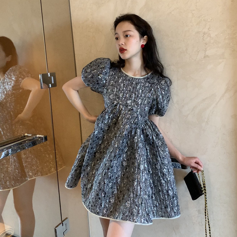 Ретро платье, приталенный корсет, в цветочек, коллекция 2021, рукава фонарики, А-силуэт