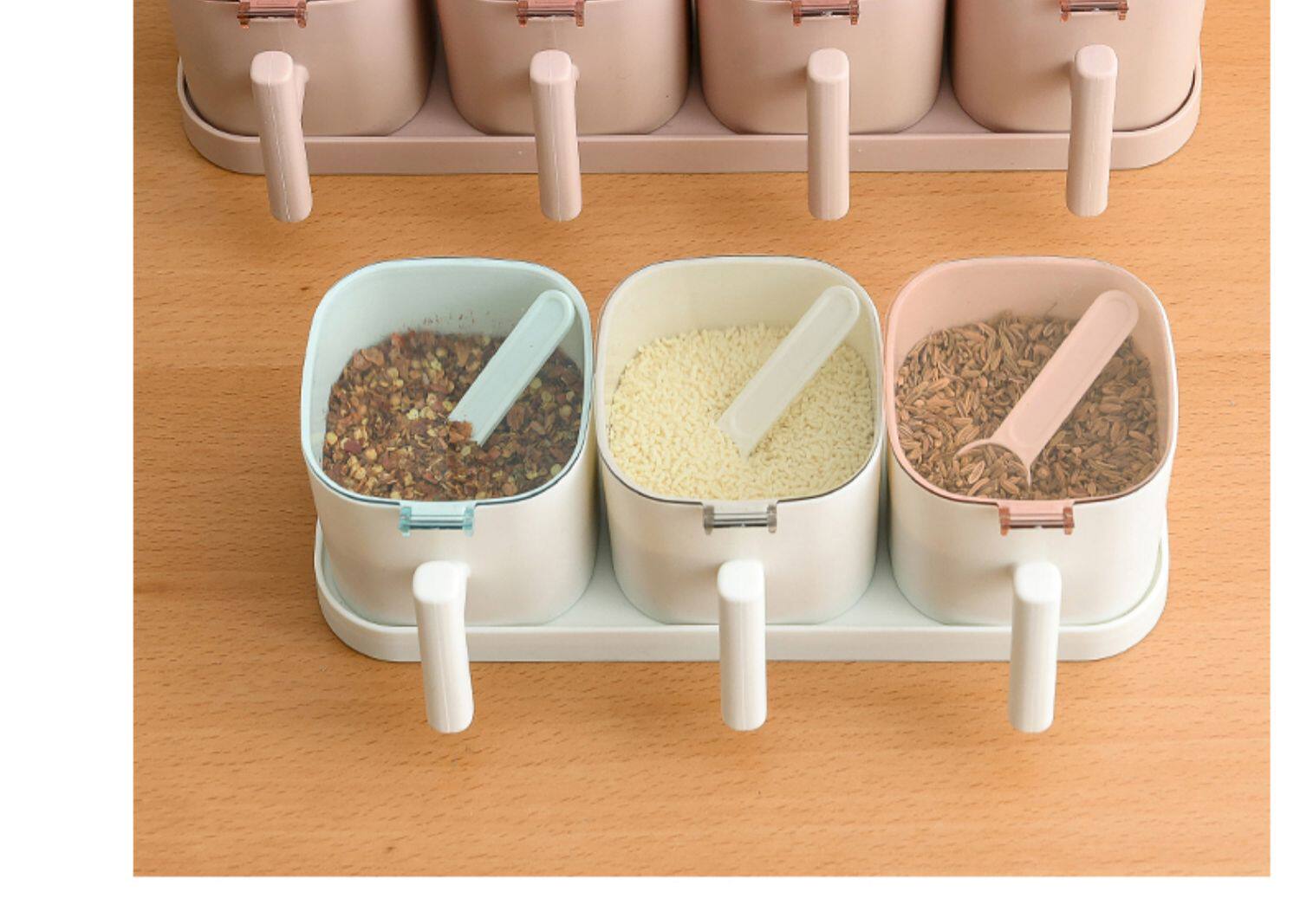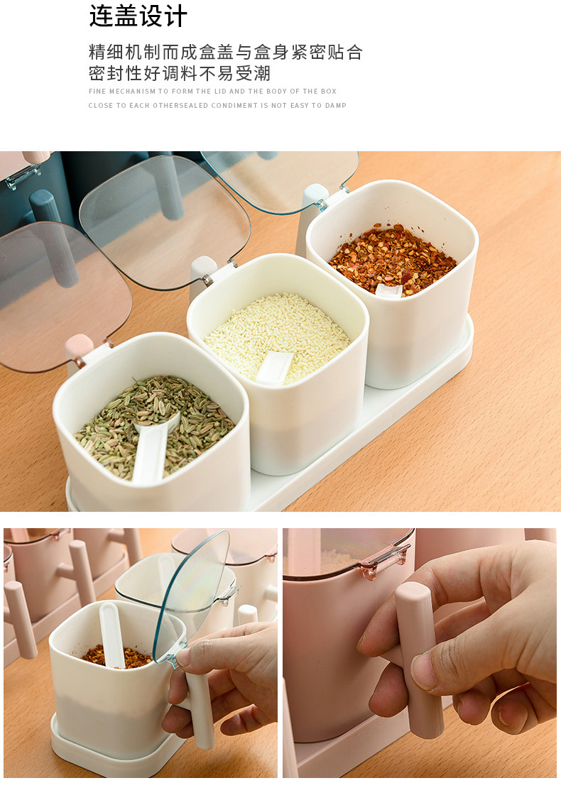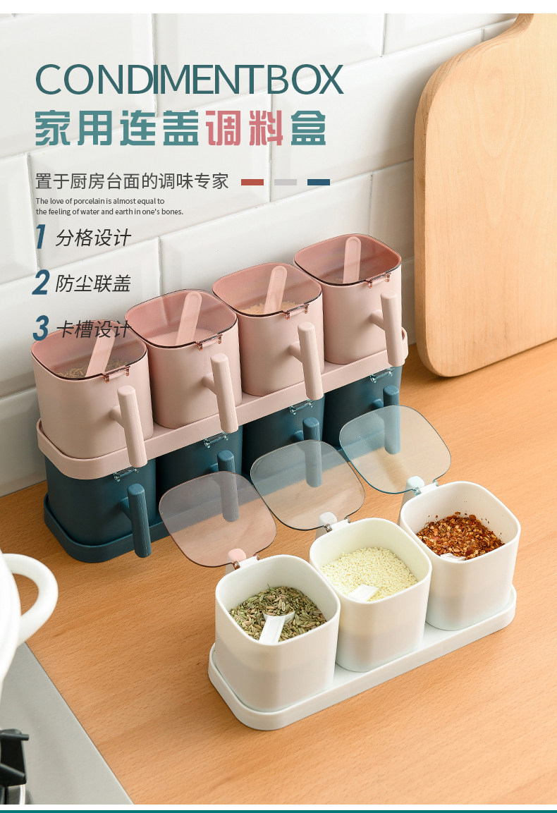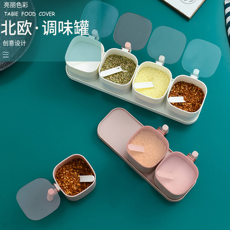 Кухня комбинированная приправа для приправы приправы кухонные принадлежности с крышкой коробки для соленой резервуары приправы с ложкой ящиком для хранения ложки