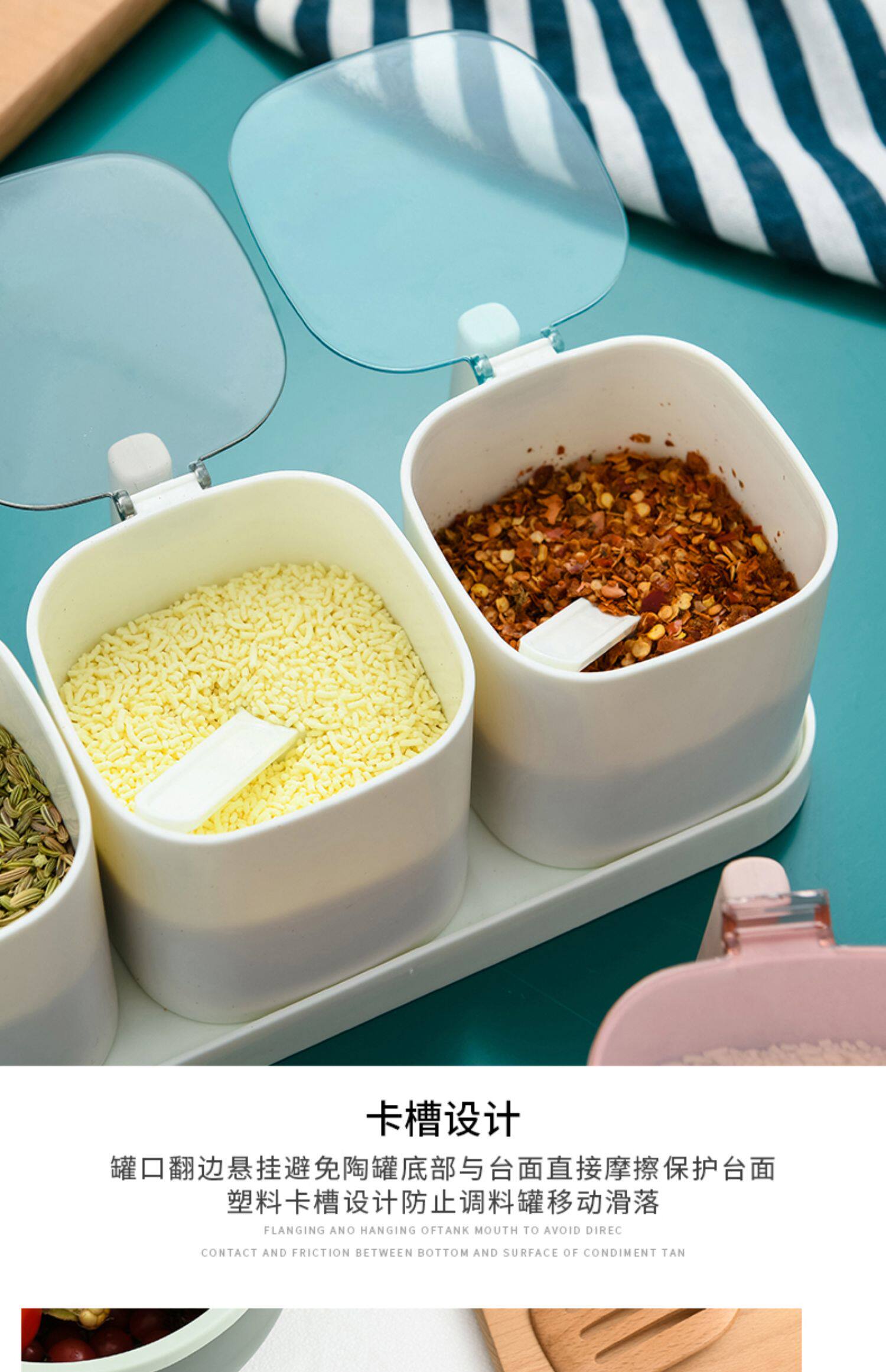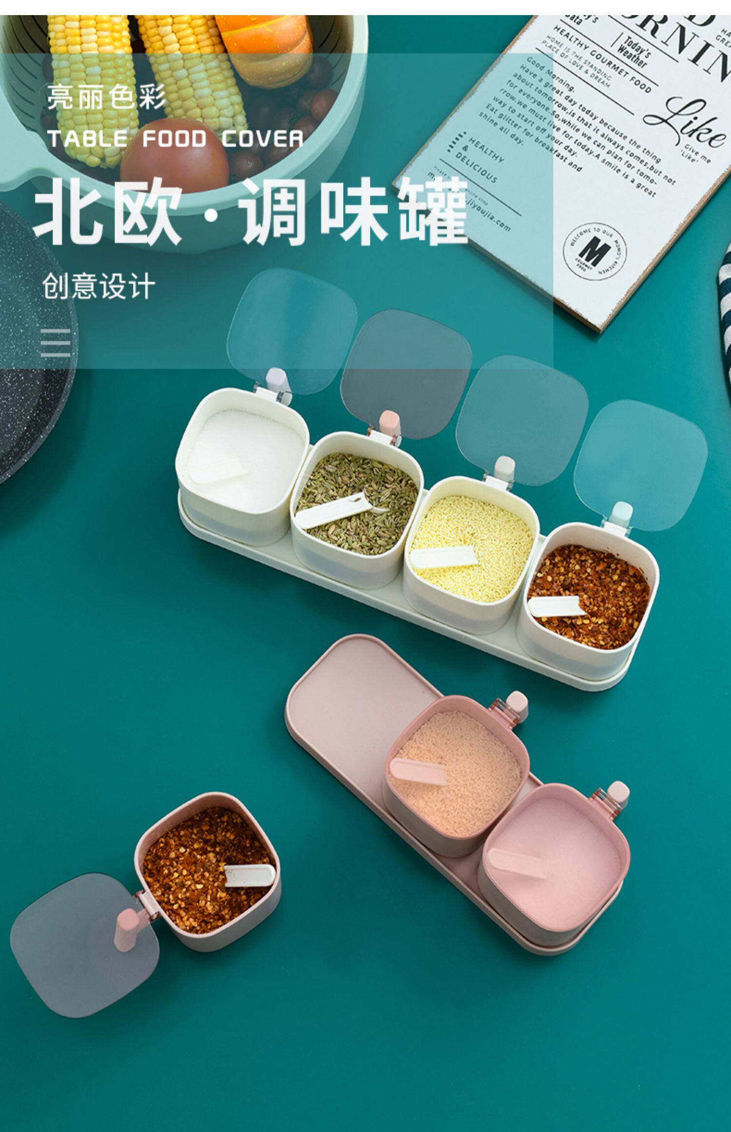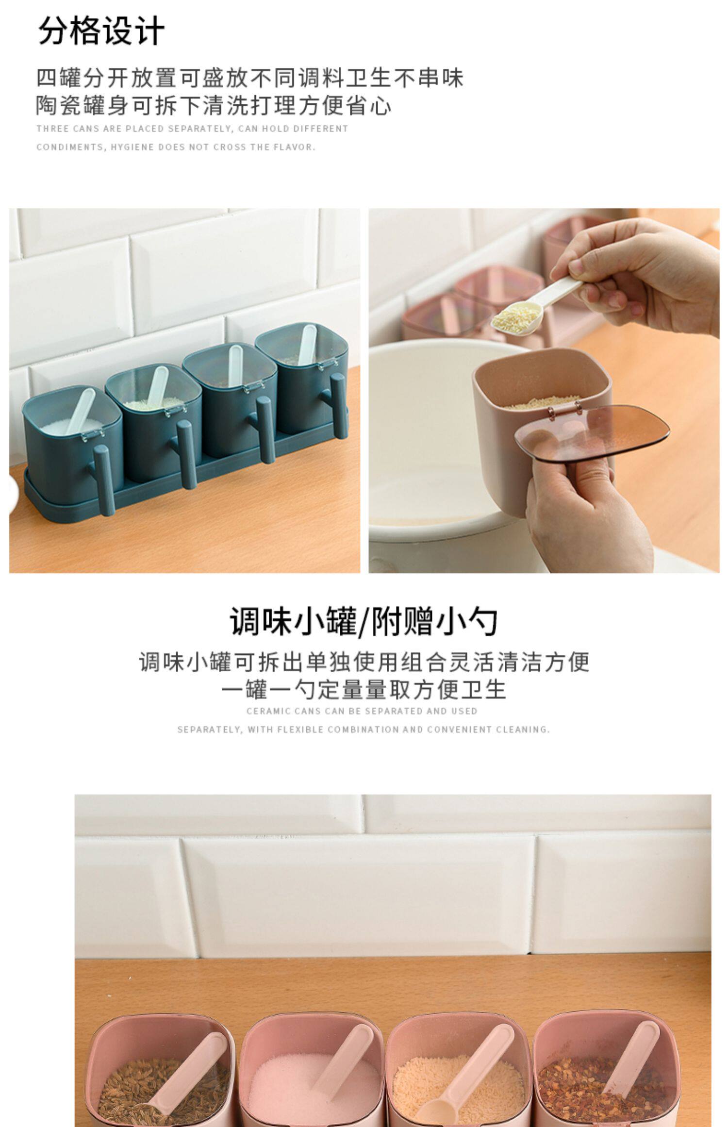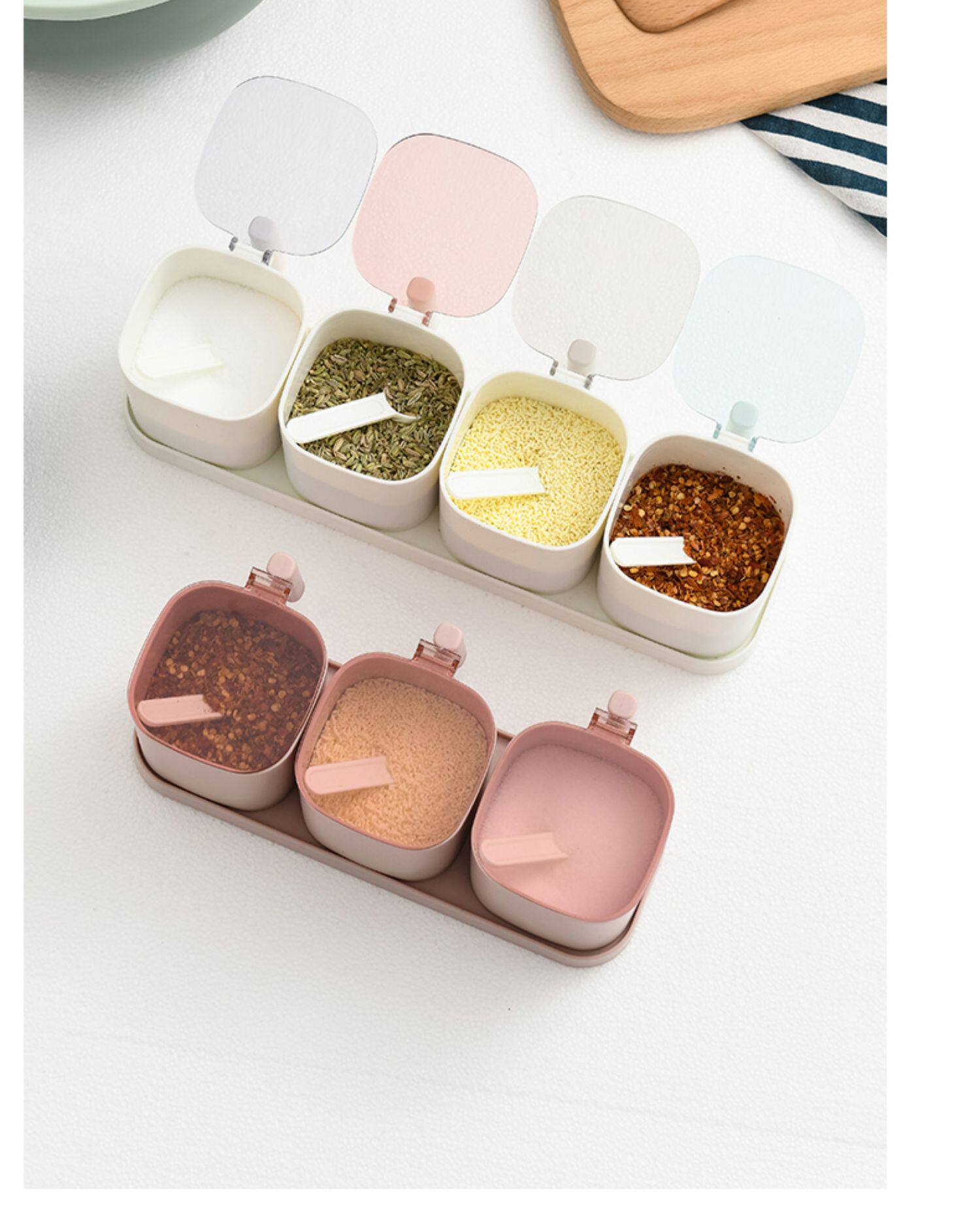 Кухня комбинированная приправа для приправы приправы кухонные принадлежности с крышкой коробки для соленой резервуары приправы с ложкой ящиком для хранения ложки