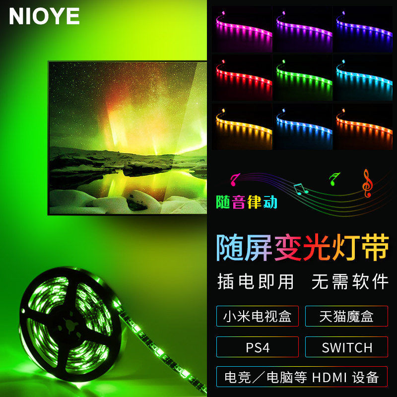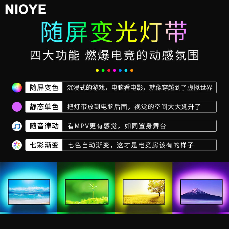 NIOYE Атмосферная подсветка телевизора с экраном Ambilight, божественный свет RGB, синхронизированная фоновая подсветка занавески проектора