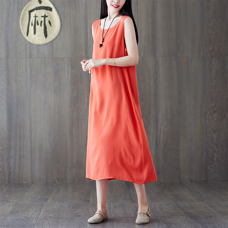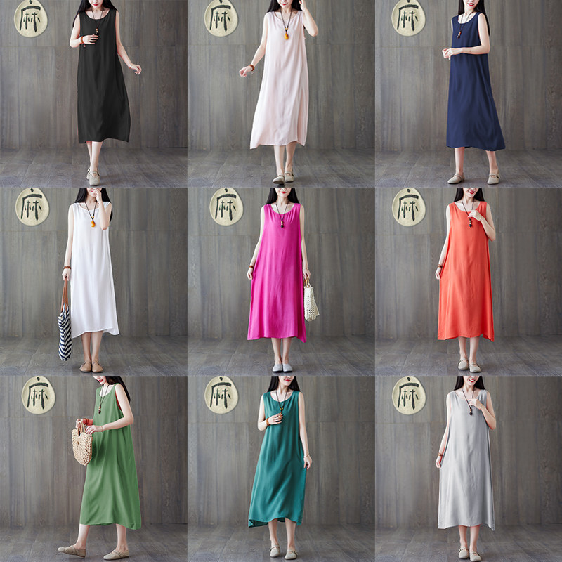 Ретро цветное платье, летняя длинная базовая юбка, свободный крой, оверсайз