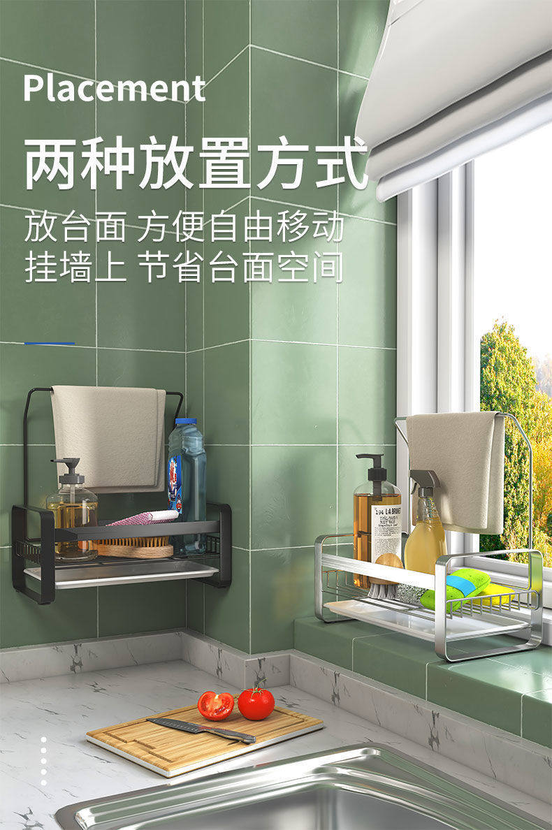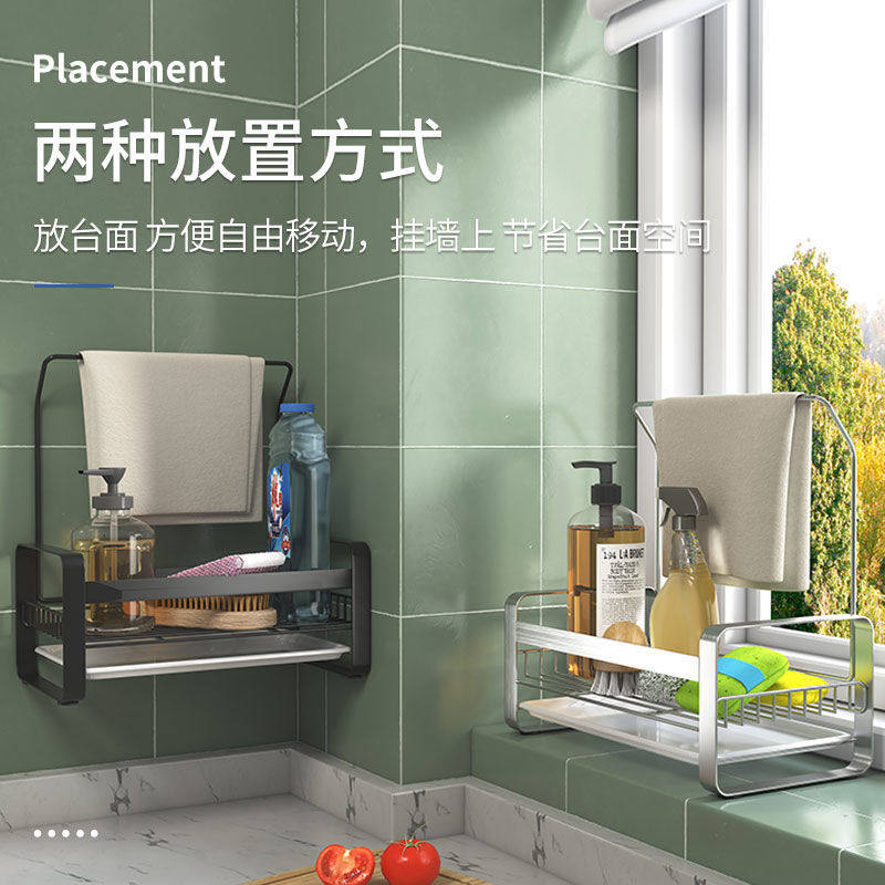 - Подставка для слива губки без стержня, модель матового серебристого цвета для столешницы