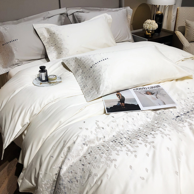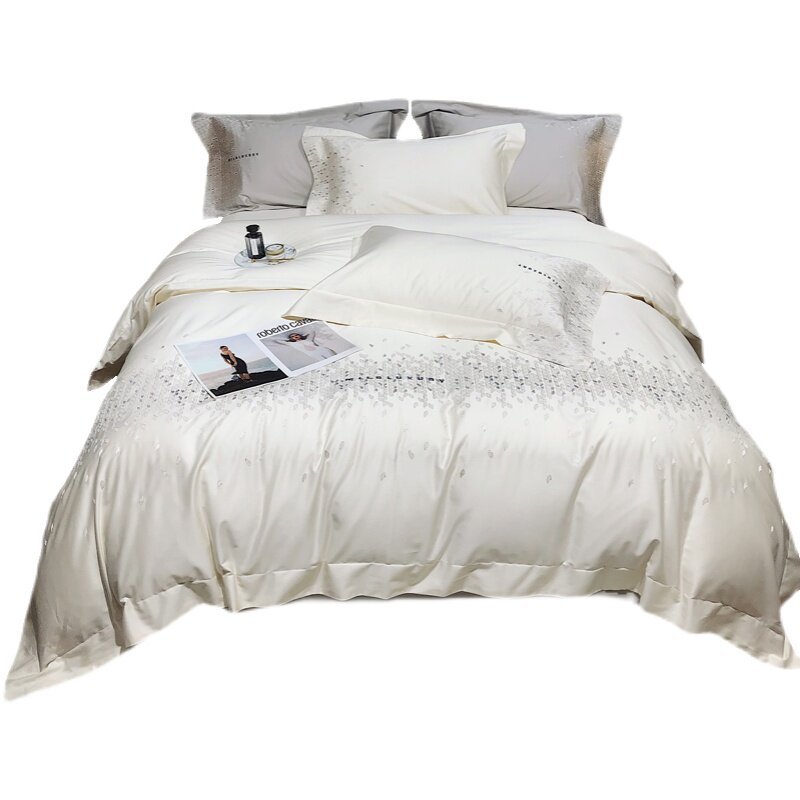 Элитный хлопковый комплект, пододеяльник, покрывало, европейский стиль, 120 шт, 4 предмета, легкий роскошный стиль, простой и элегантный дизайн, с вышивкой