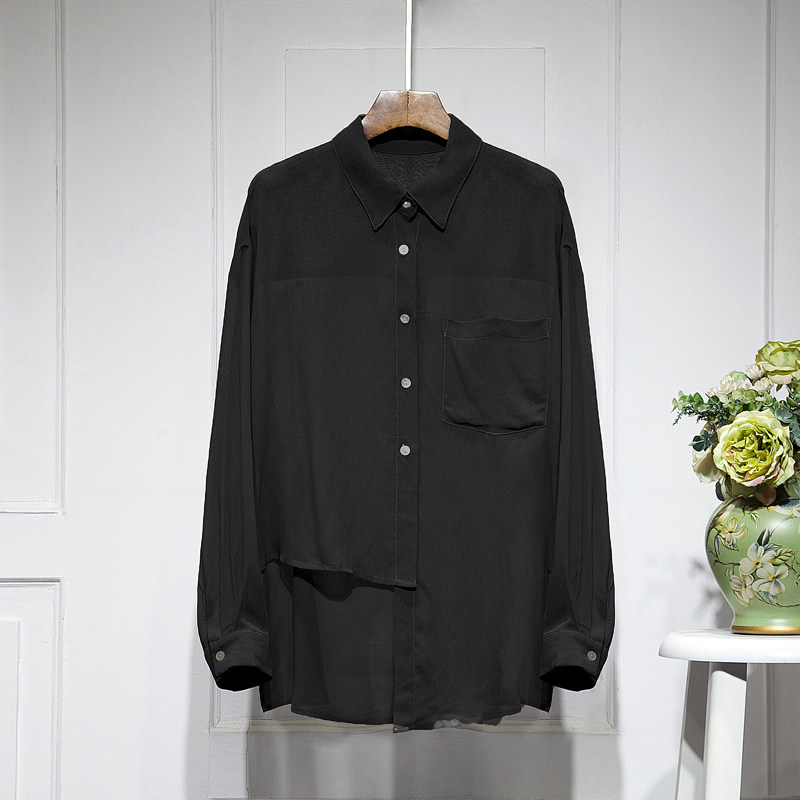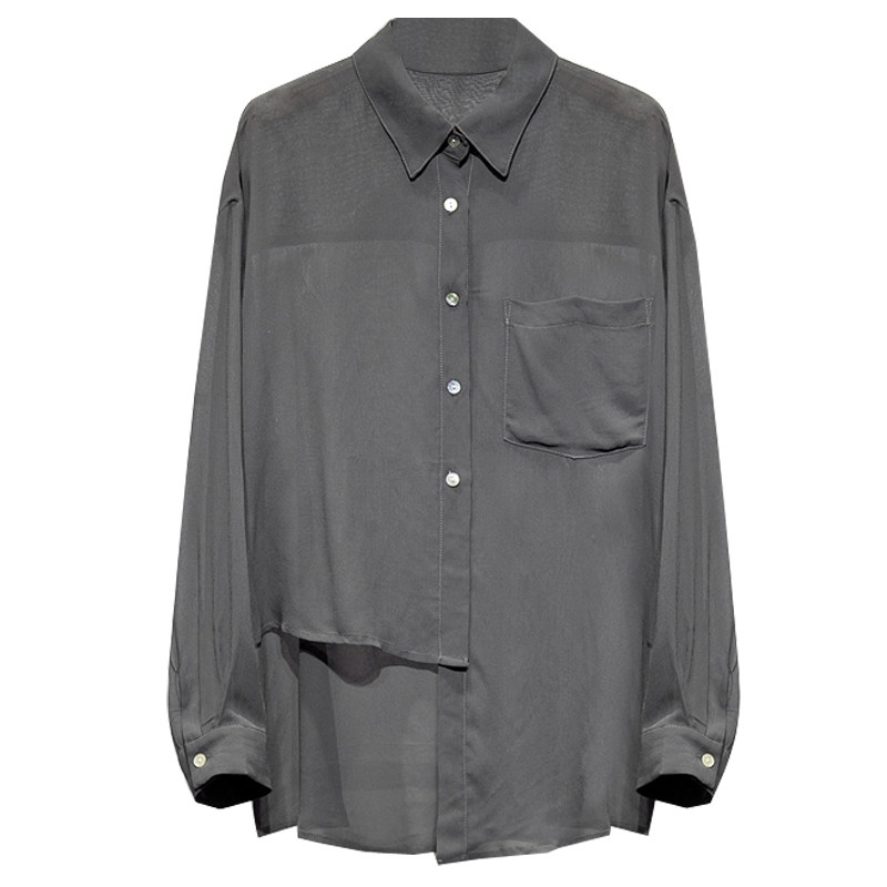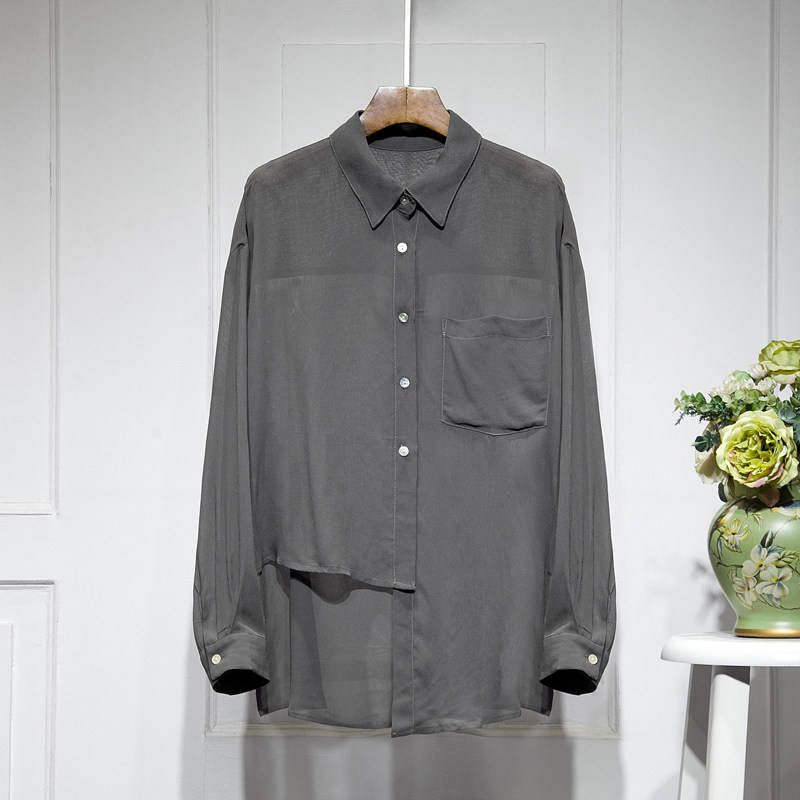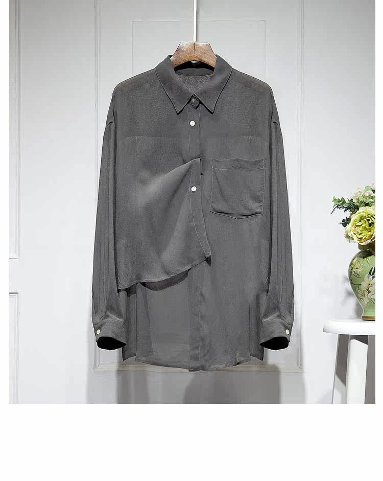 Шелковая шифоновая весенняя летняя асимметричная дизайнерская рубашка, тренд сезона