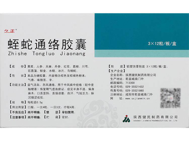 Jiuzheng Qizhong Snake Tongluo Капсулы 0,5 г*36 капсул/коробку меридиана частичное онемение тела Половина