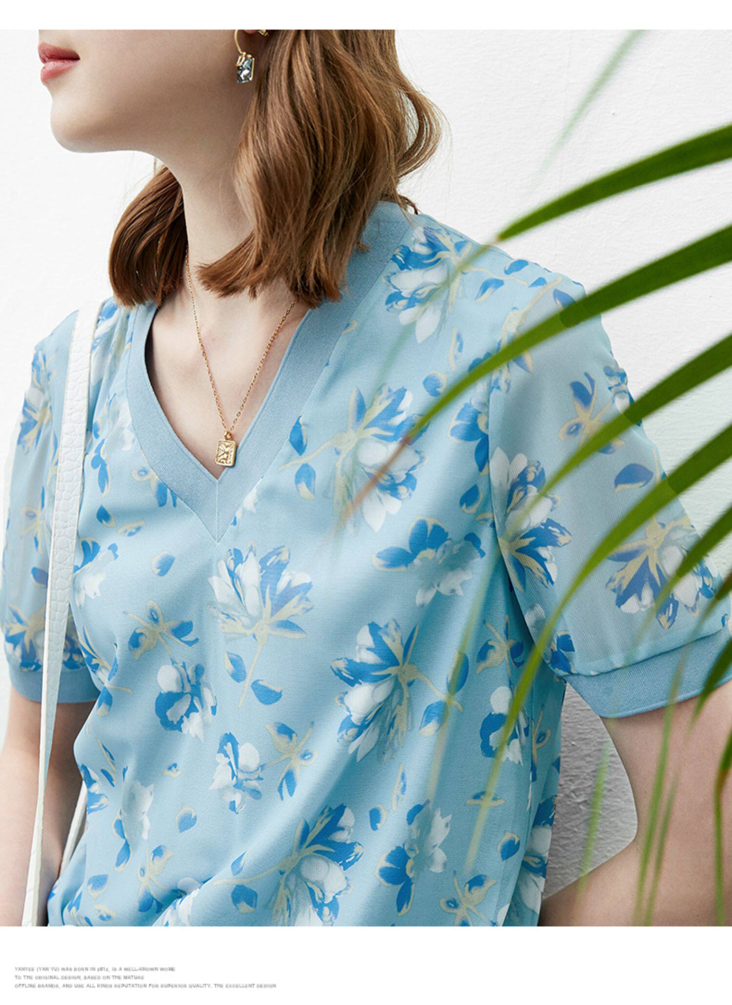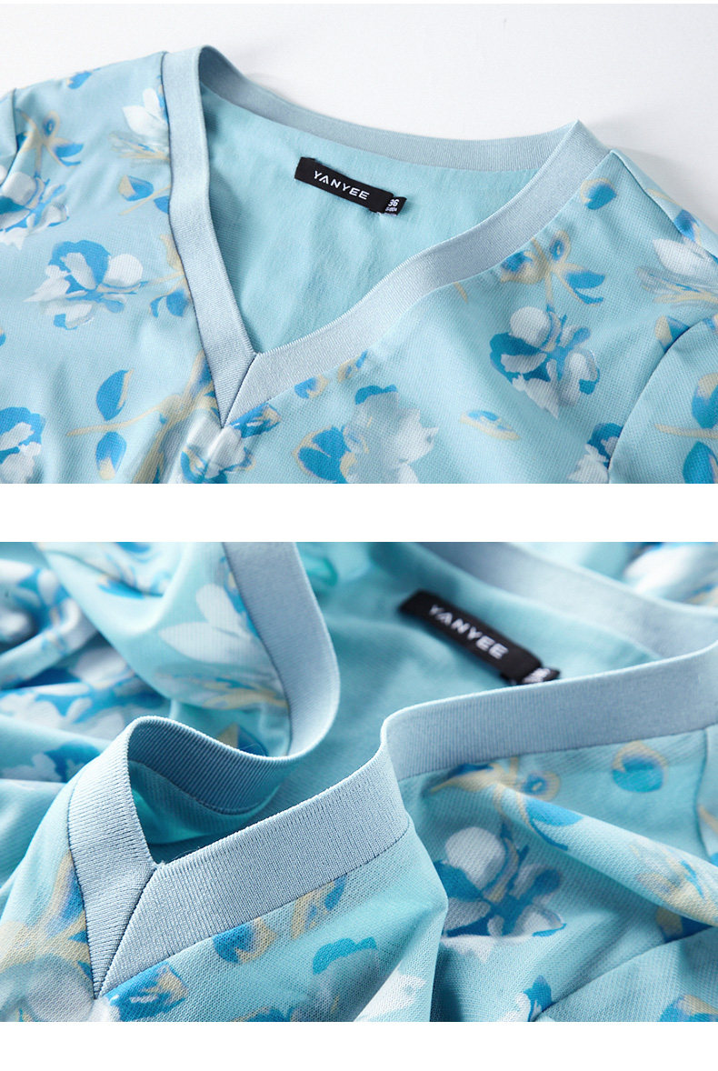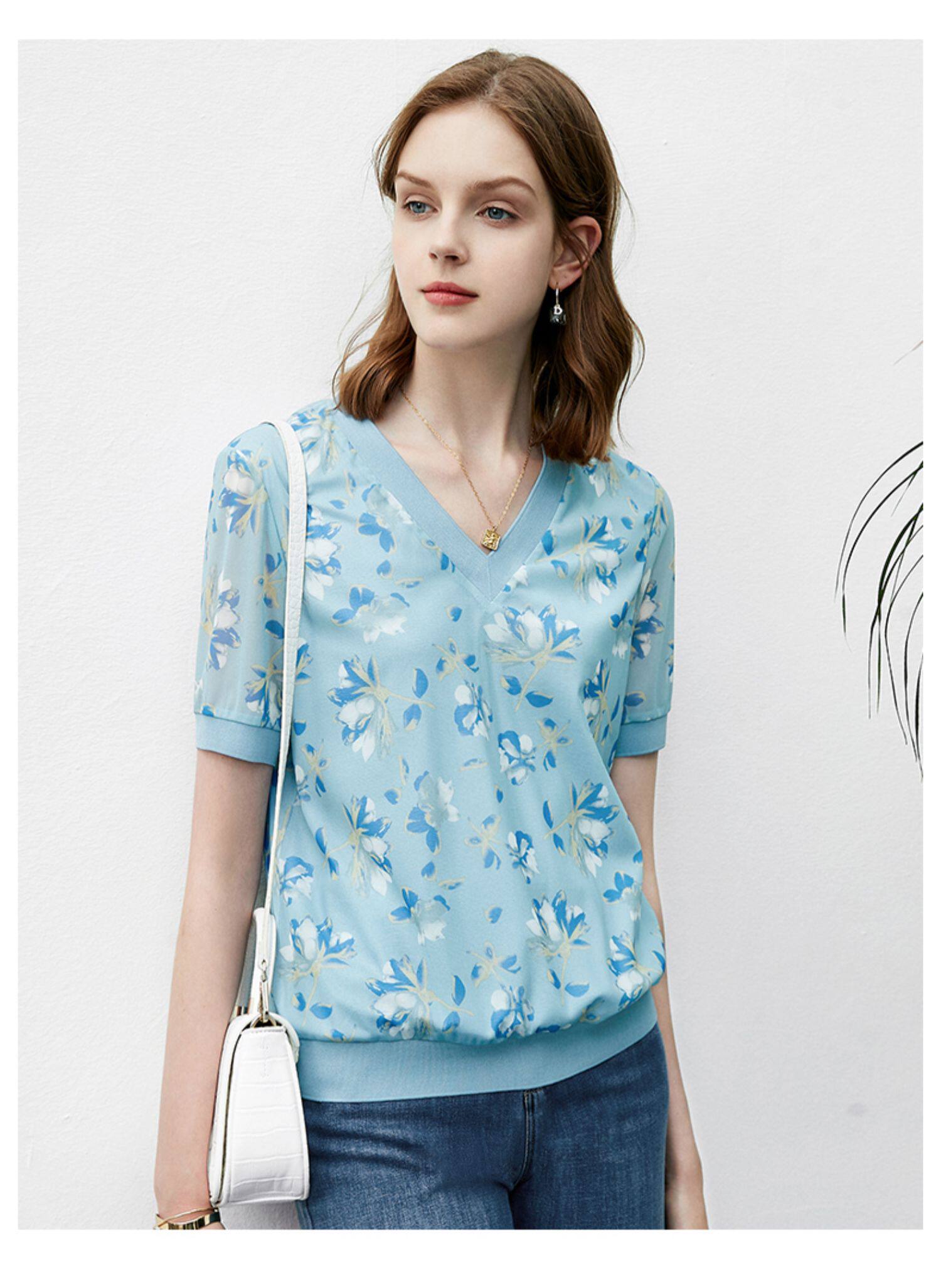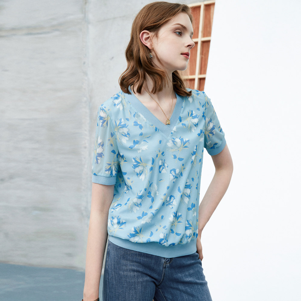 Тонкая летняя летняя одежда, футболка с коротким рукавом, V-образный вырез, цветочный принт, коллекция 2022, свободный крой