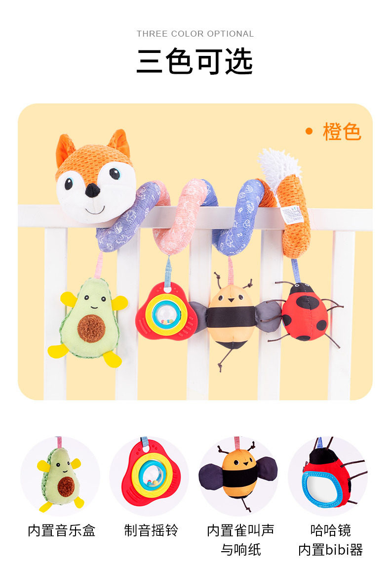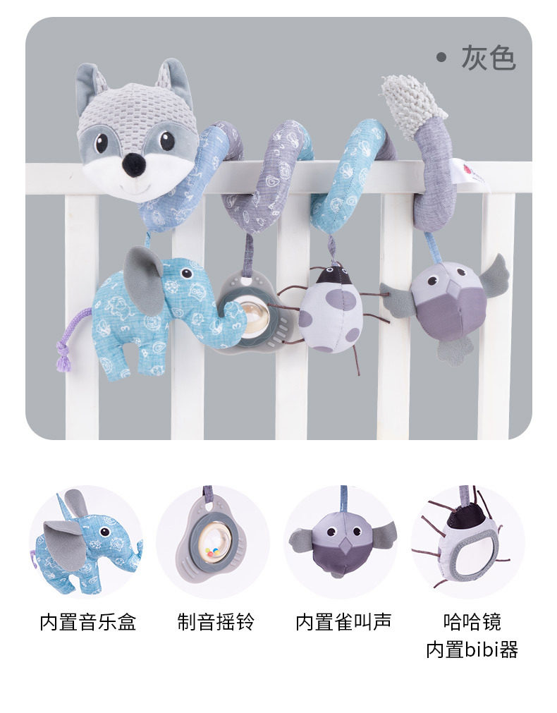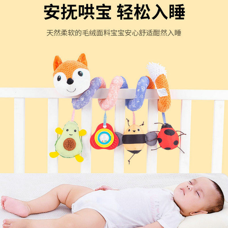 Плюшевая игрушка для кровати, успокаивающая погремушка с музыкой, лиса, енот, 0-1 лет
