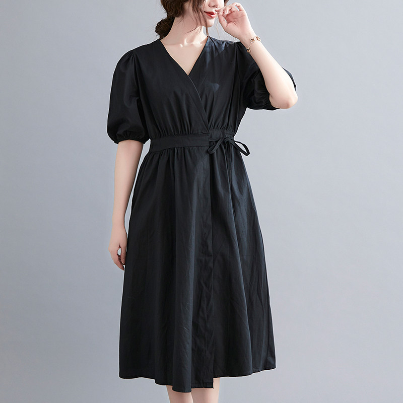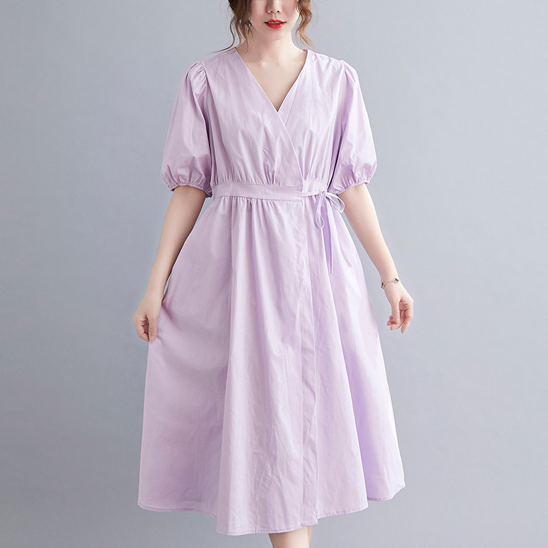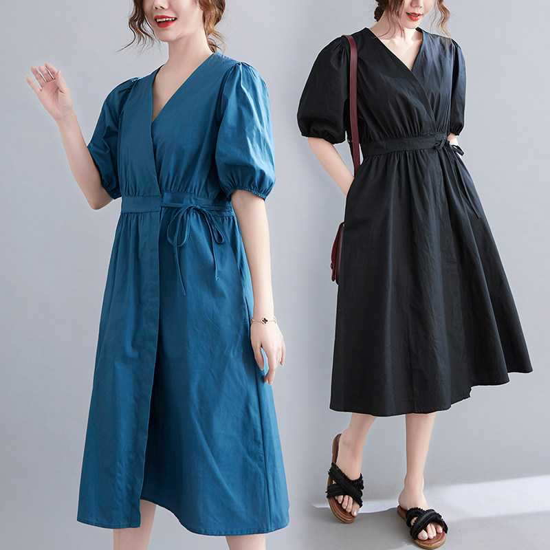 Летнее ретро цветное длинное платье, сезон 2021, большой размер, V-образный вырез, по фигуре, свободный крой, средней длины