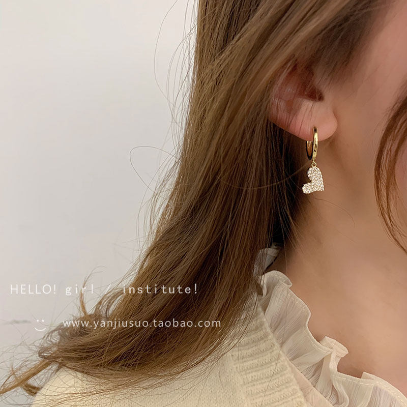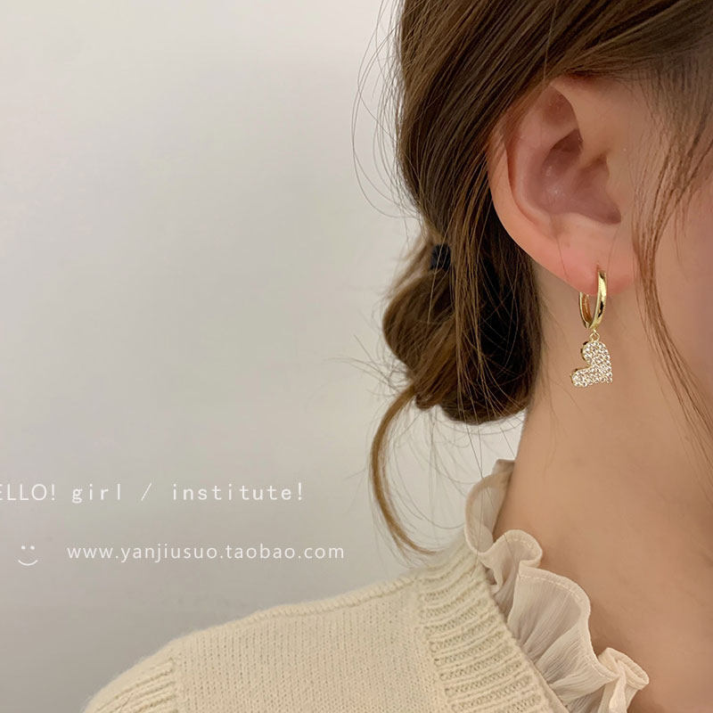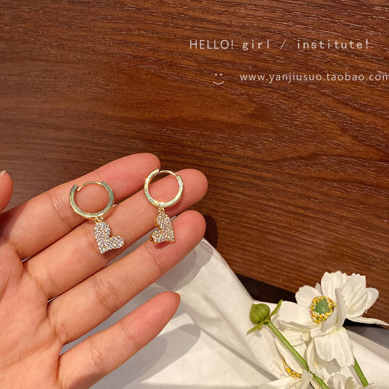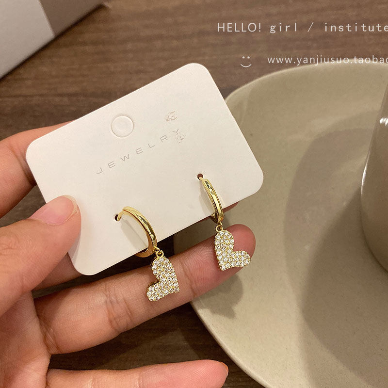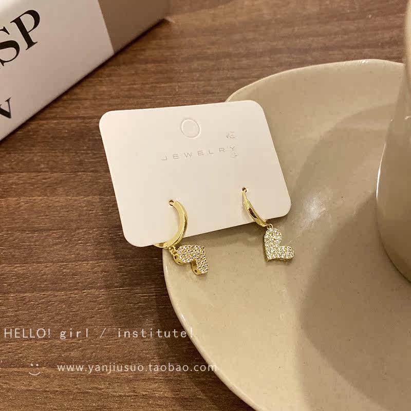Изысканные сексуальные короткие серьги с цирконом в форме сердца, французский стиль