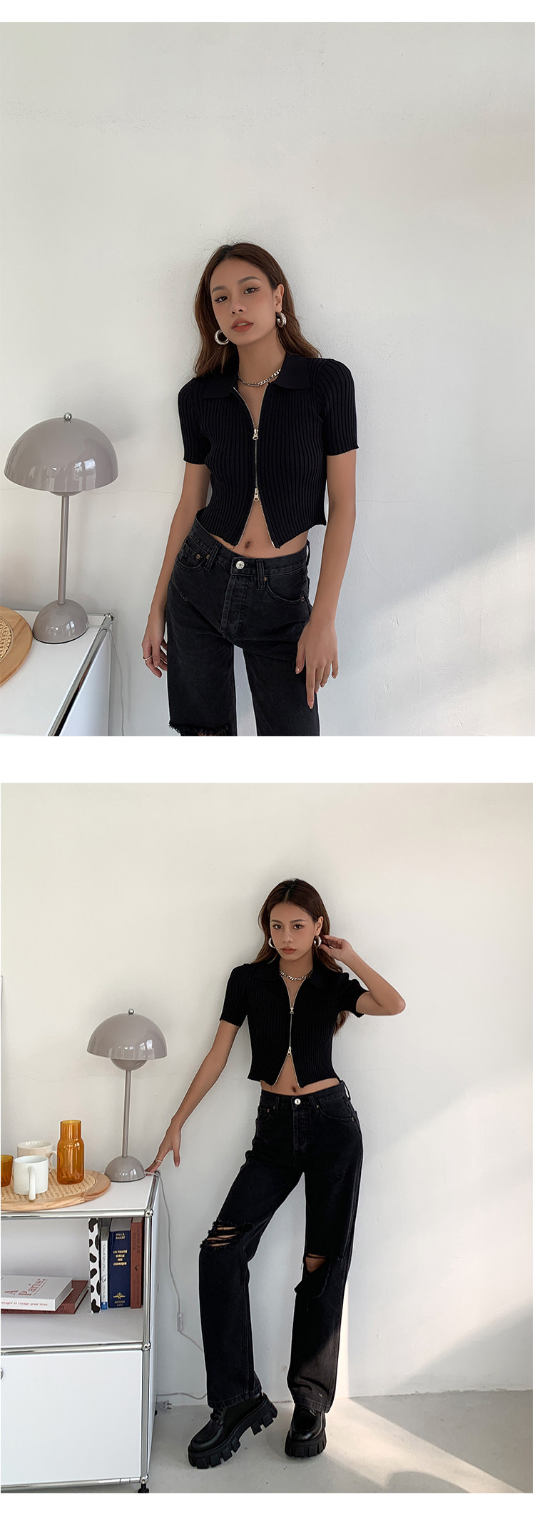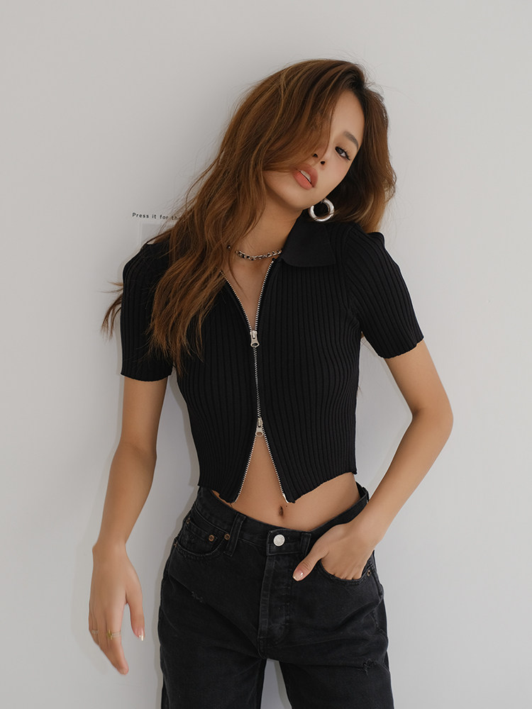 Трикотажный свитер с молнией, летняя футболка с коротким рукавом, коллекция 2021