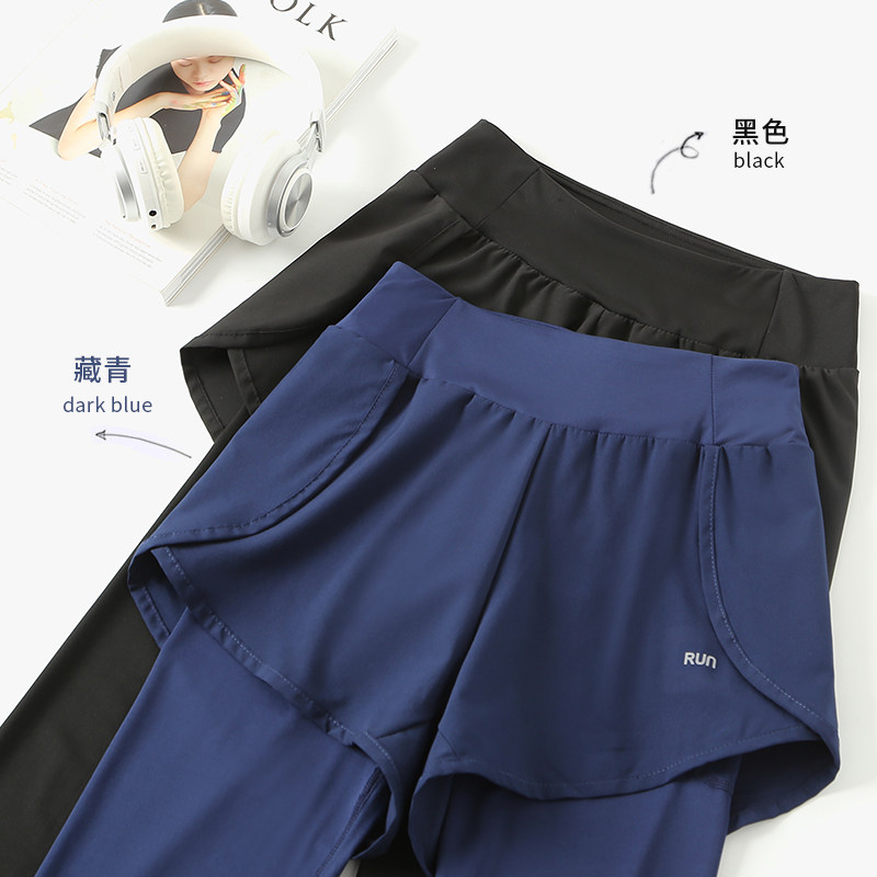 艾米恋 Летние тонкие штаны, быстросохнущий эластичный комбинезон для спортзала, спортивные леггинсы с шортами, комплект для йоги, для бега