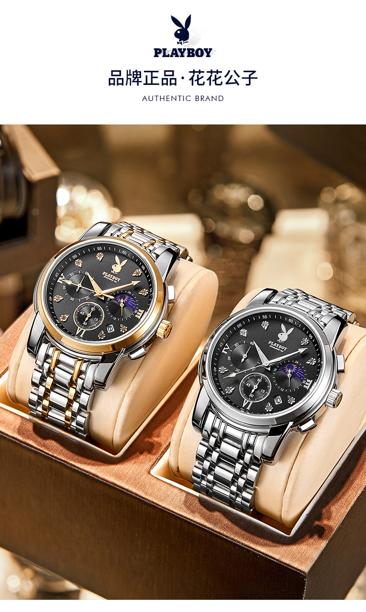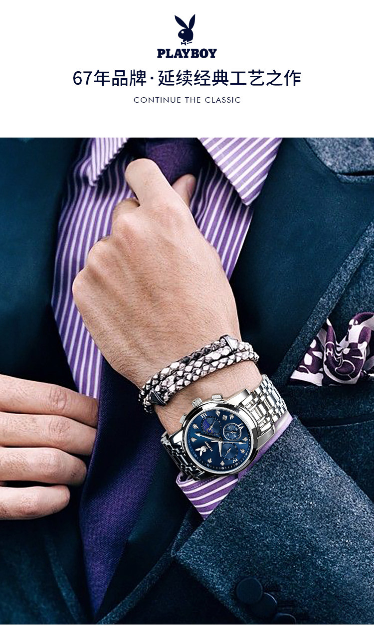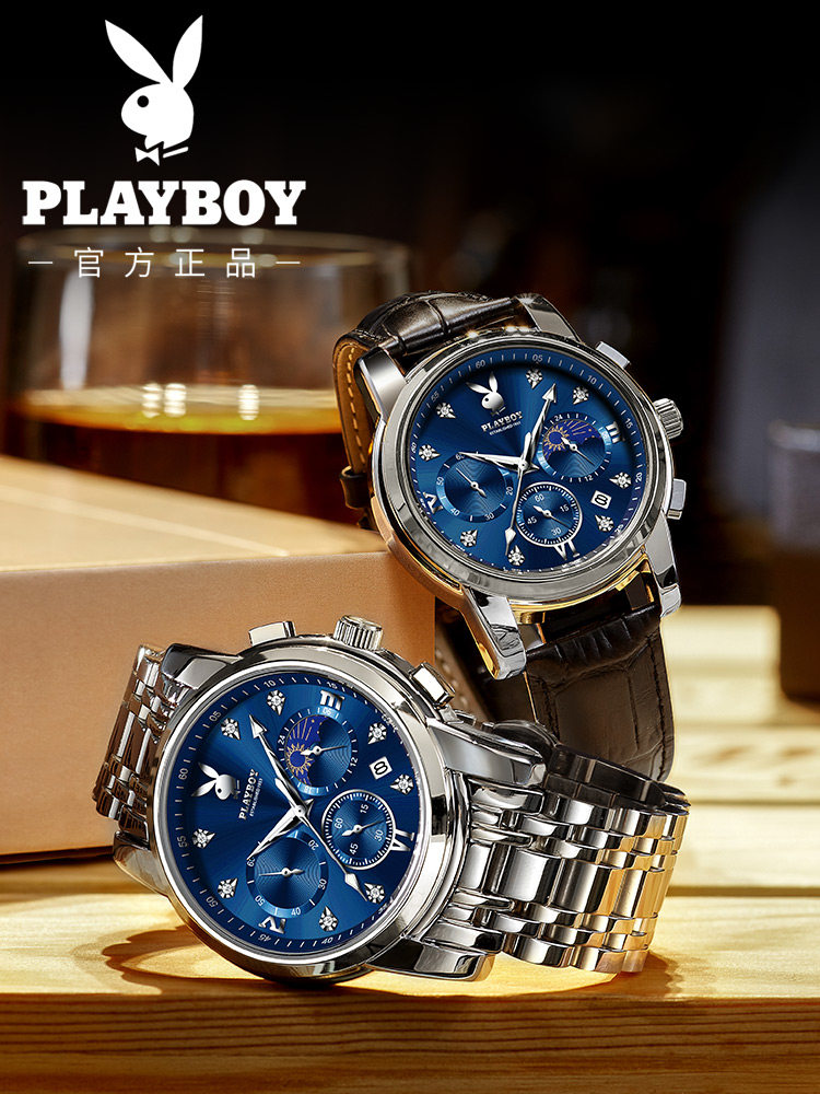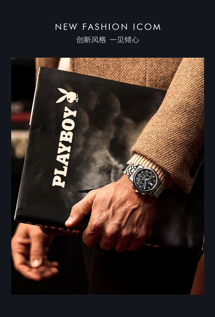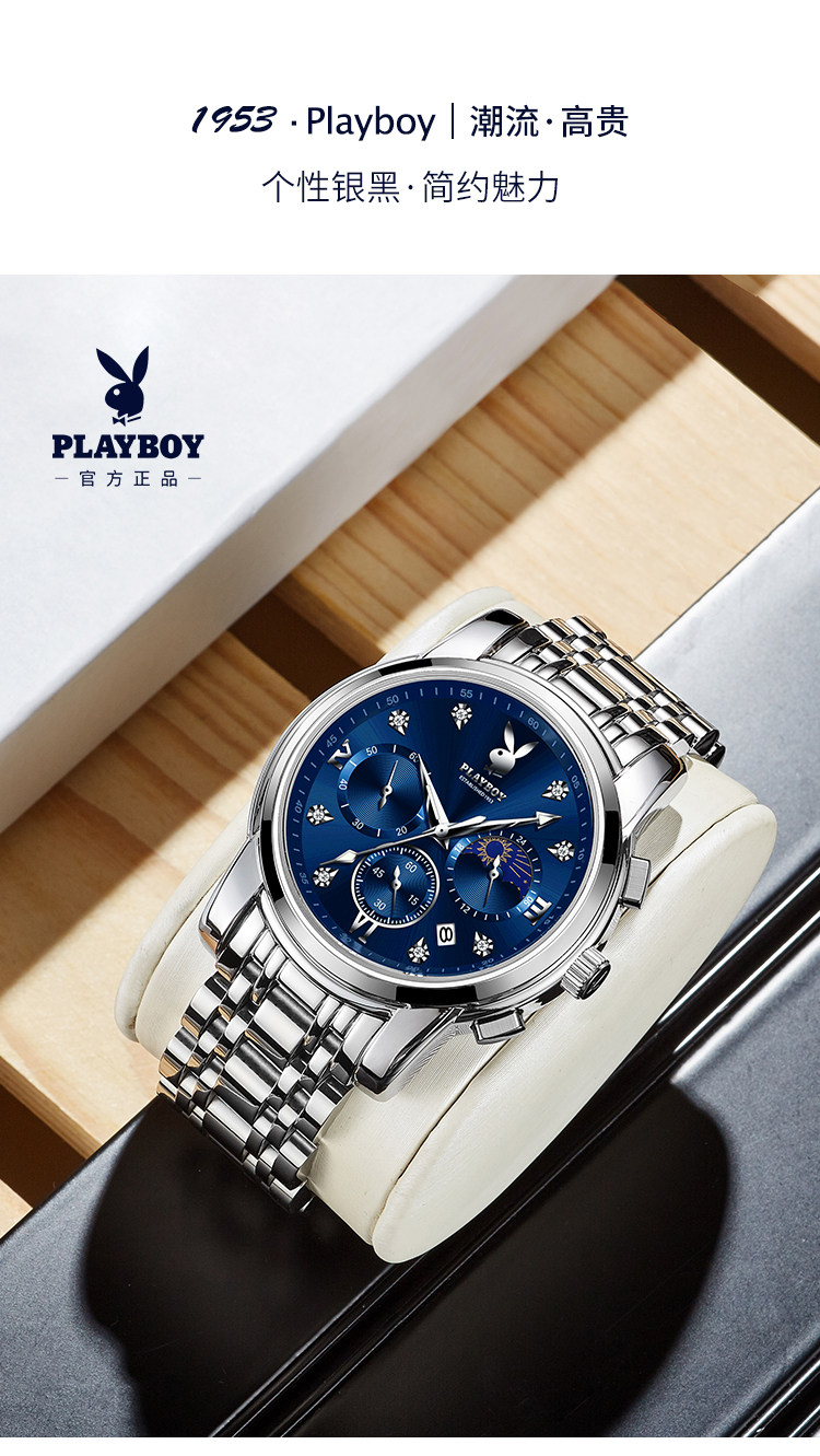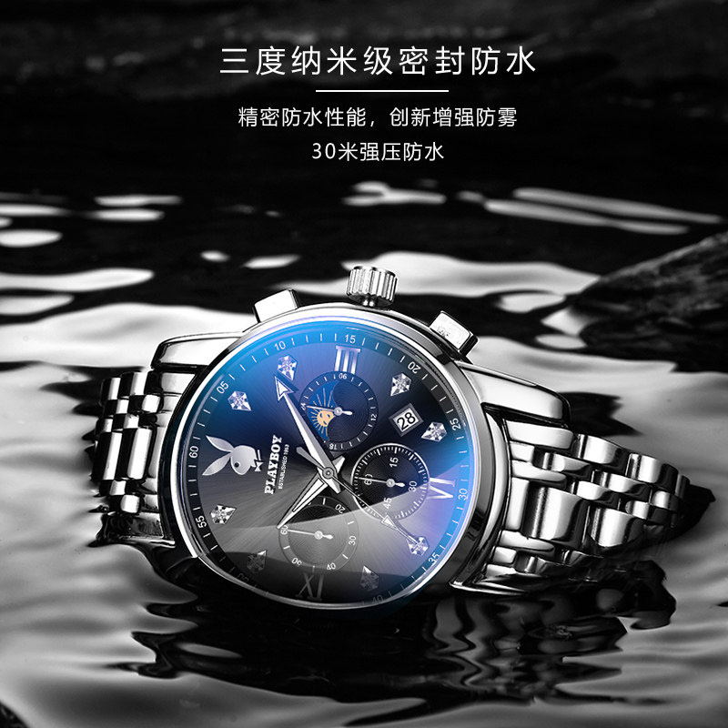 Playboy, швейцарские часы, механические механические часы, водонепроницаемые модные мужские часы, стальной ремешок, официальный продукт, полностью автоматический