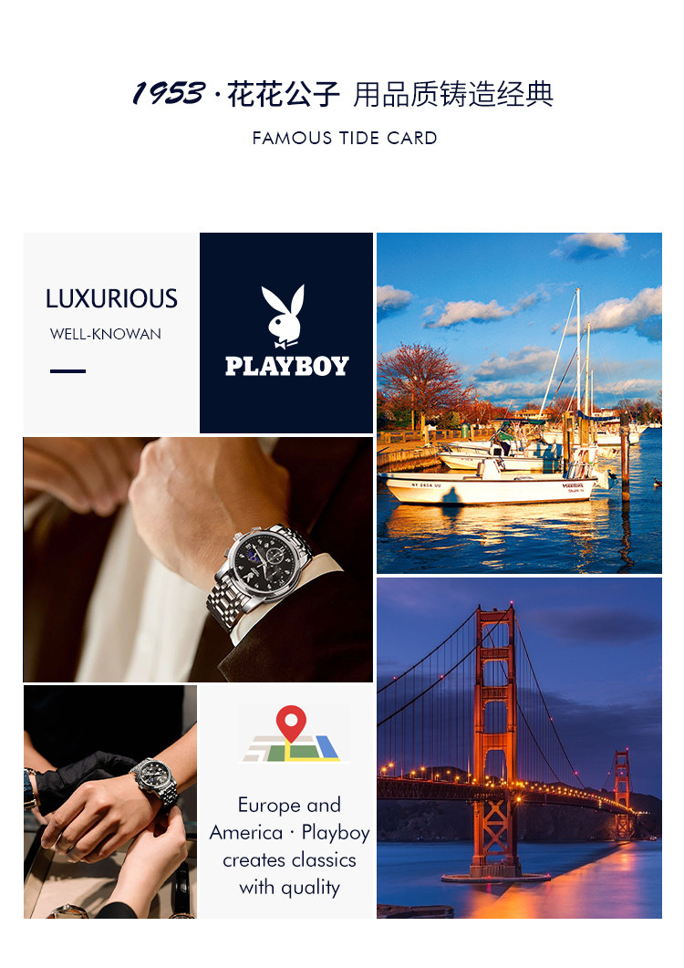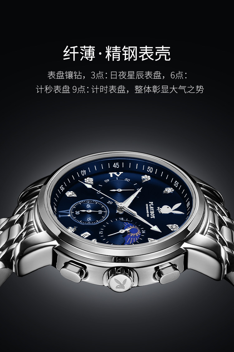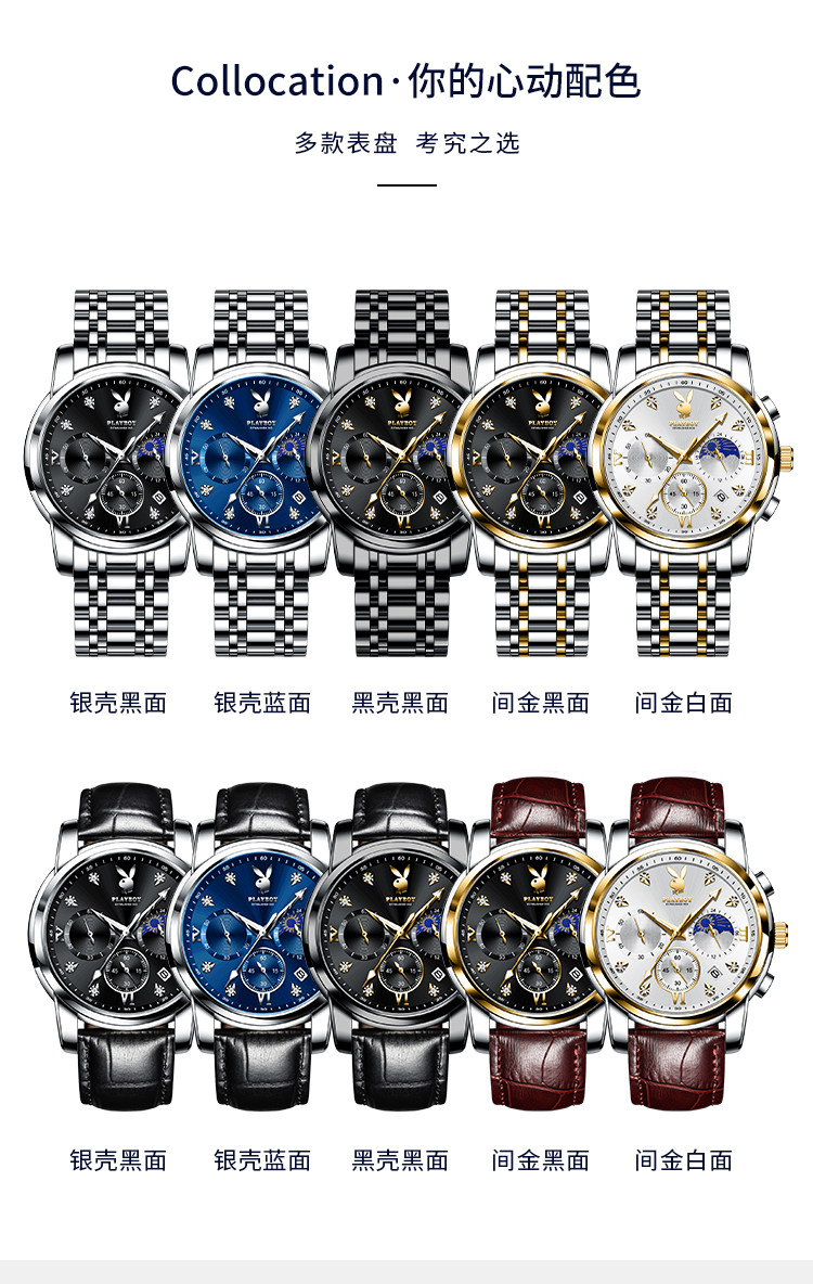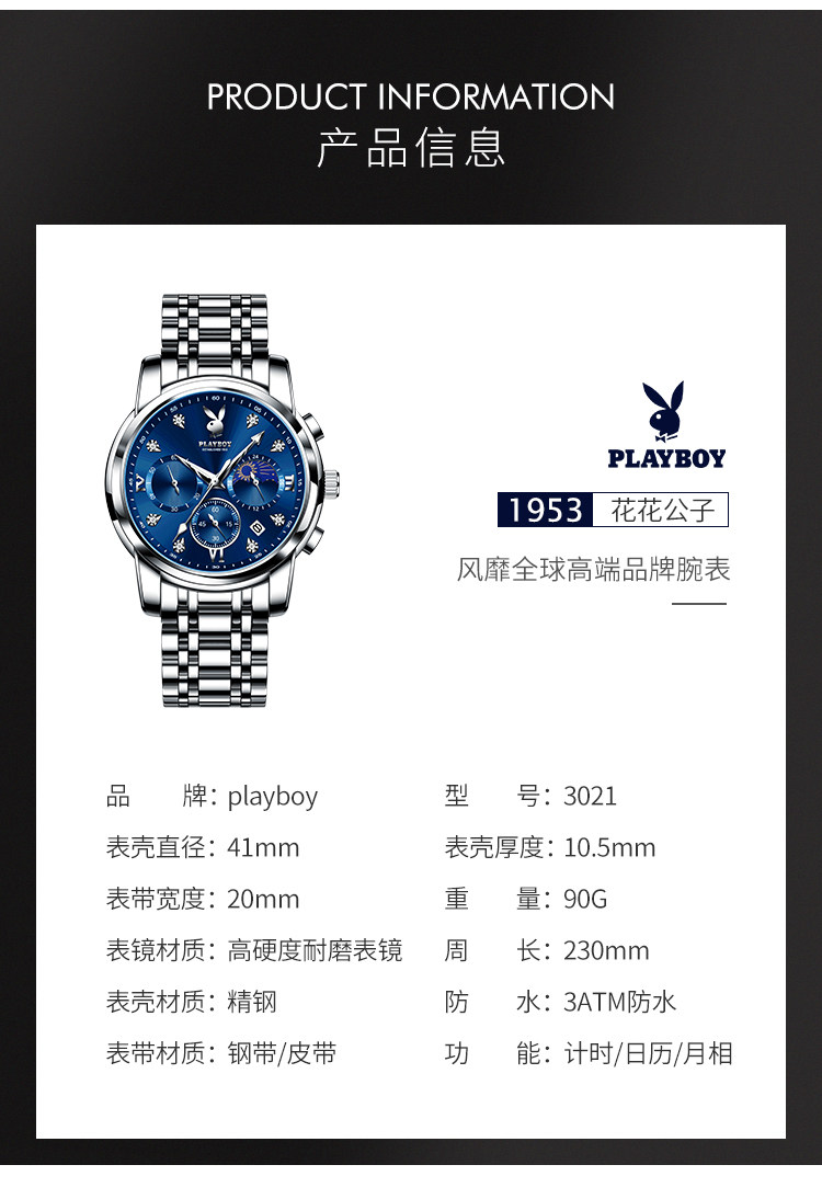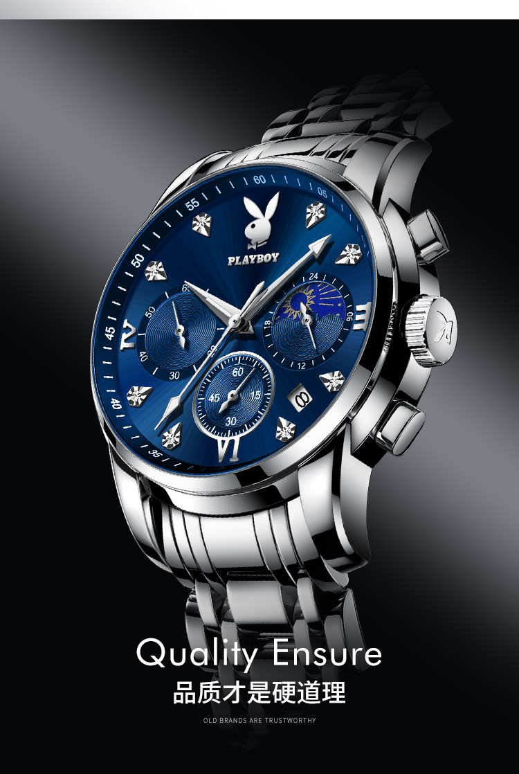 Playboy, швейцарские часы, механические механические часы, водонепроницаемые модные мужские часы, стальной ремешок, официальный продукт, полностью автоматический