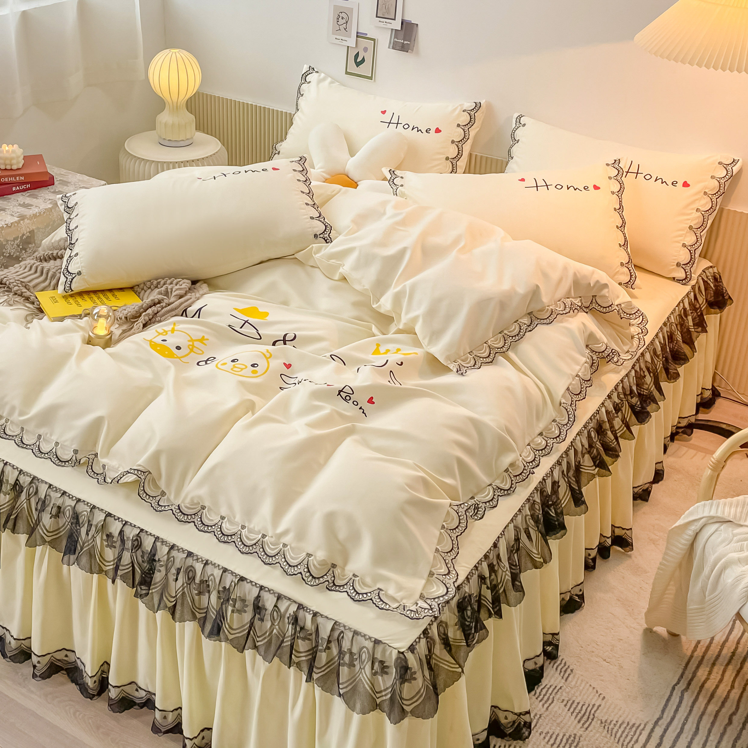 Корейский хлопковый комплект для принцессы, брендовый пододеяльник, покрывало, 4 предмета, популярно в интернете, простой и элегантный дизайн, 3 шт