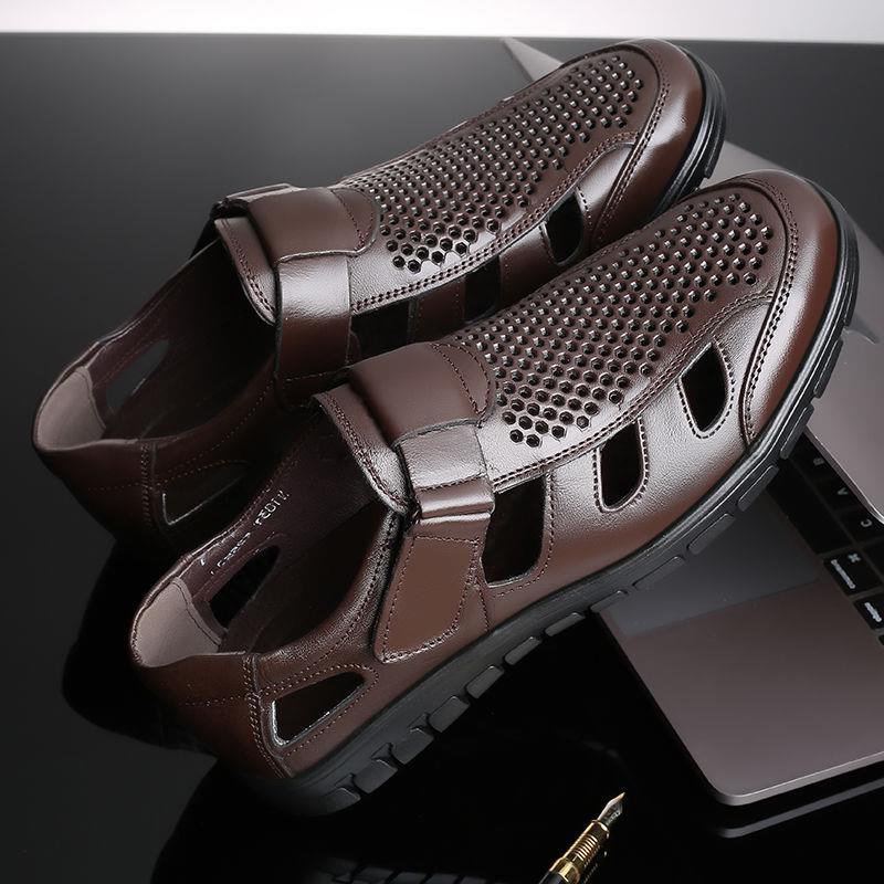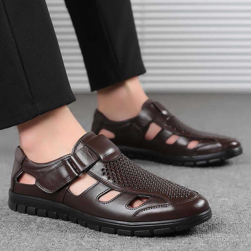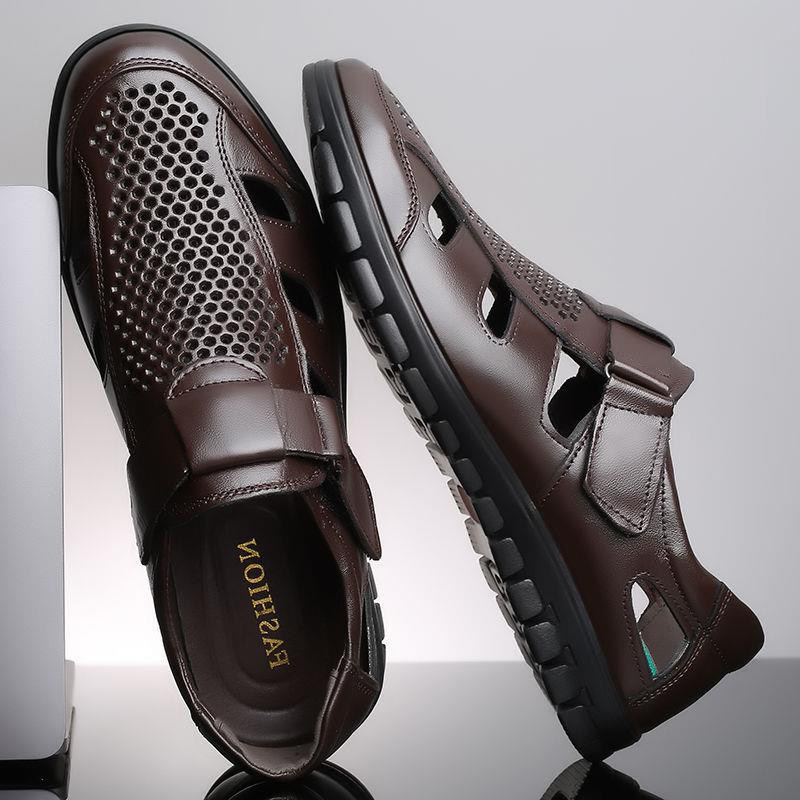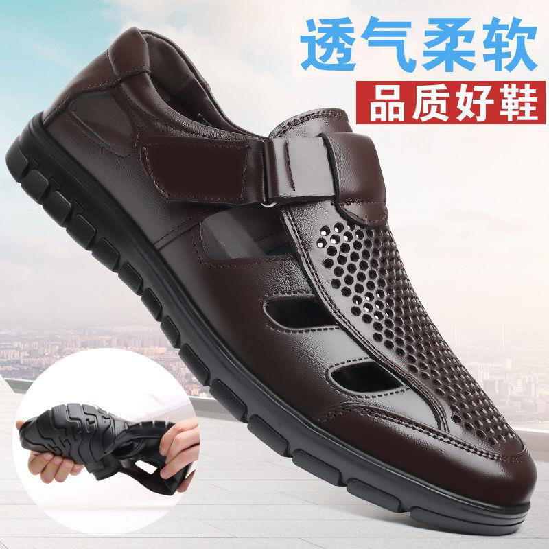 Летние дышащие сандалии, обувь для кожаной обуви, коллекция 2023, для среднего возраста, мягкая подошва