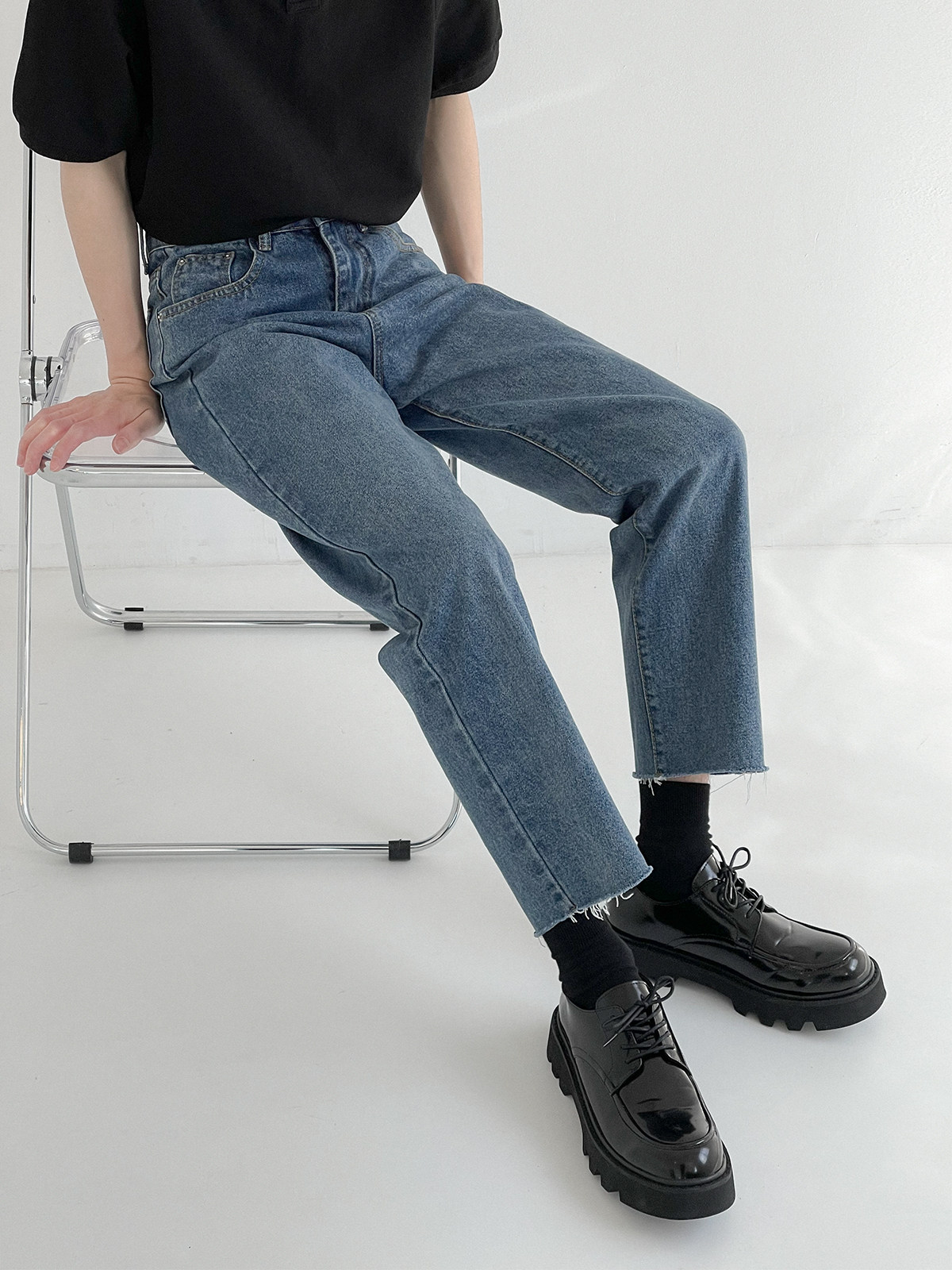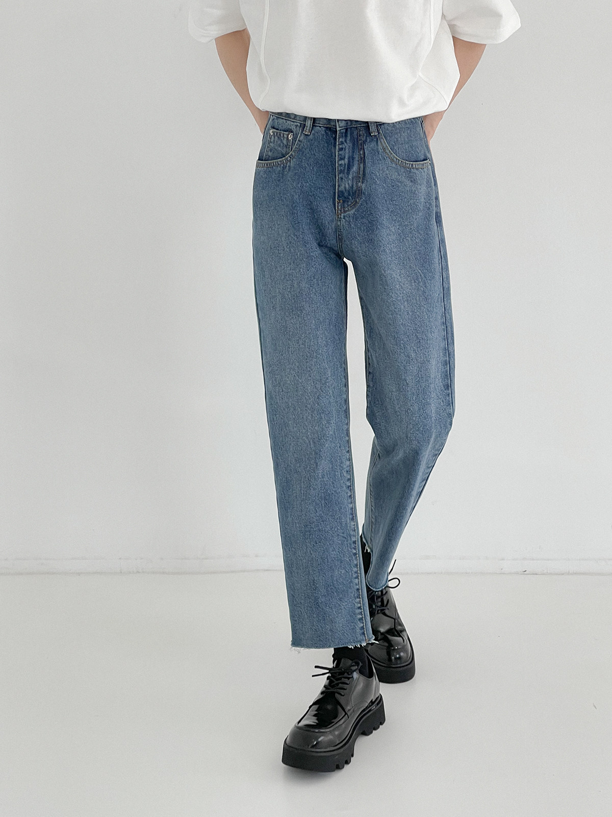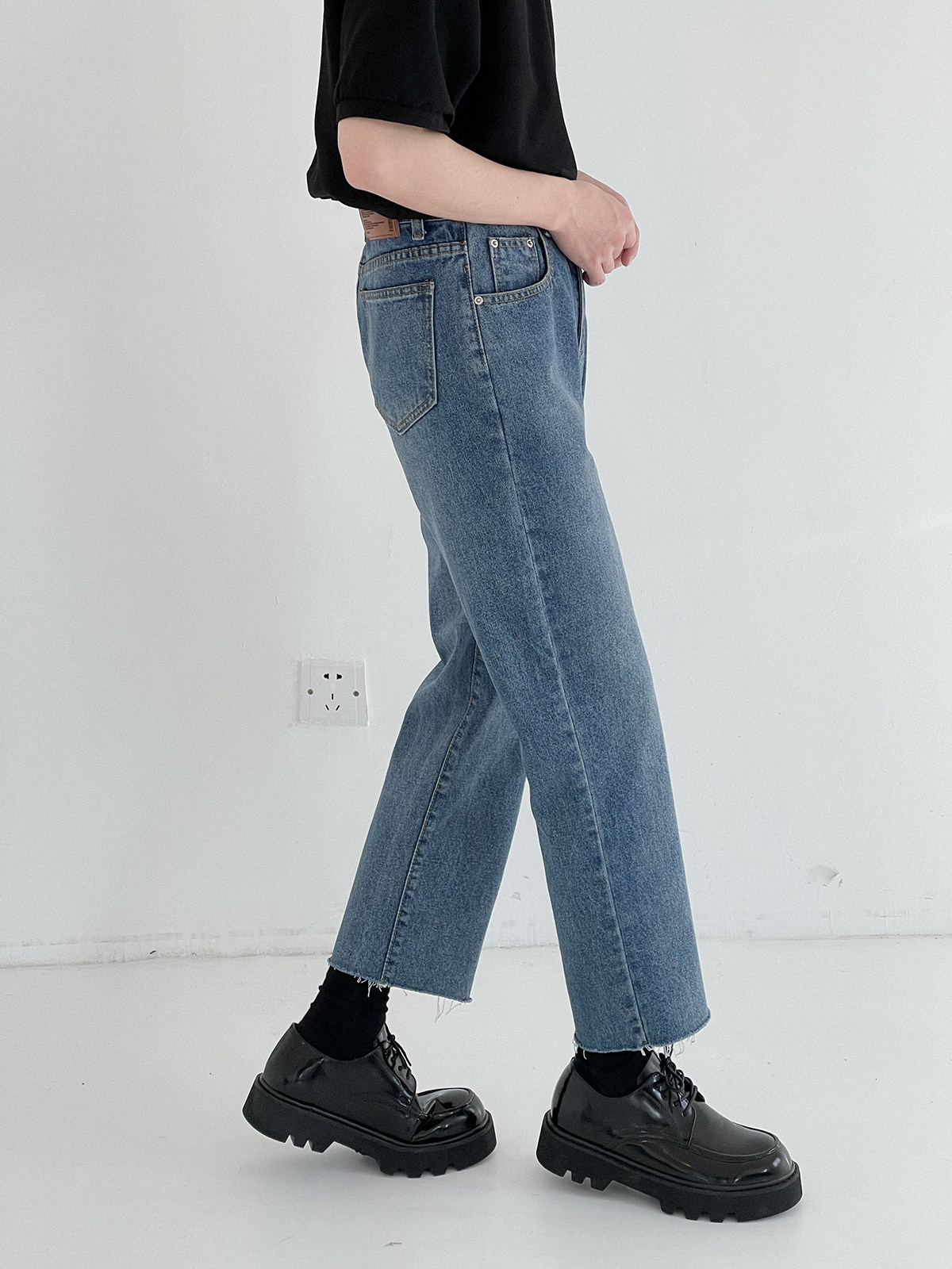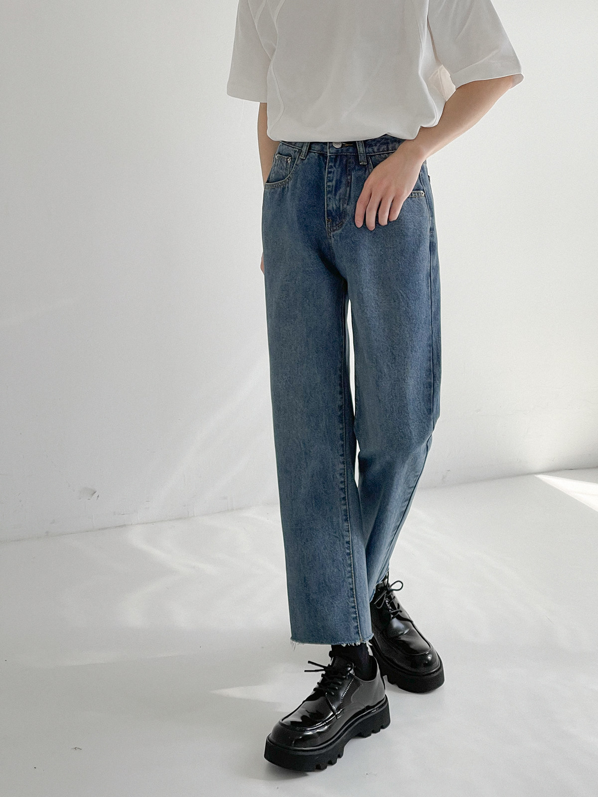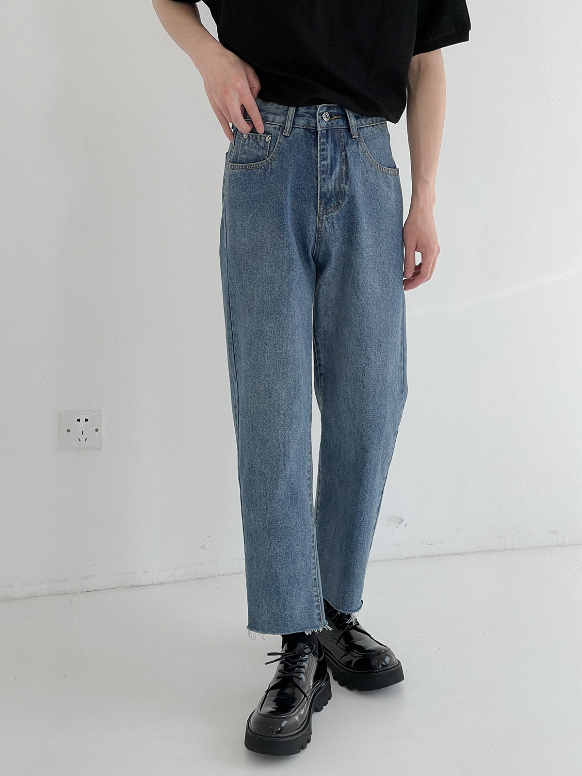 Tide, демисезонные прямые свободные джинсы, штаны, в корейском стиле