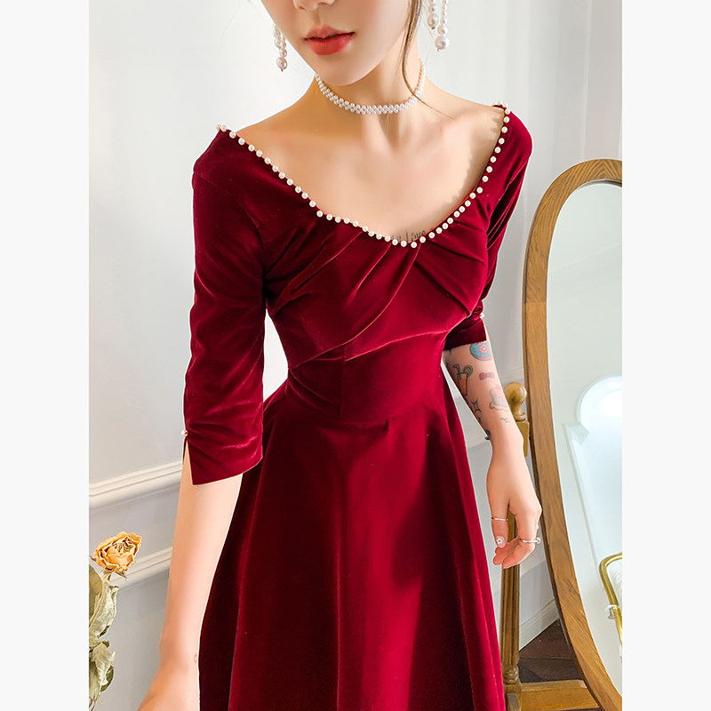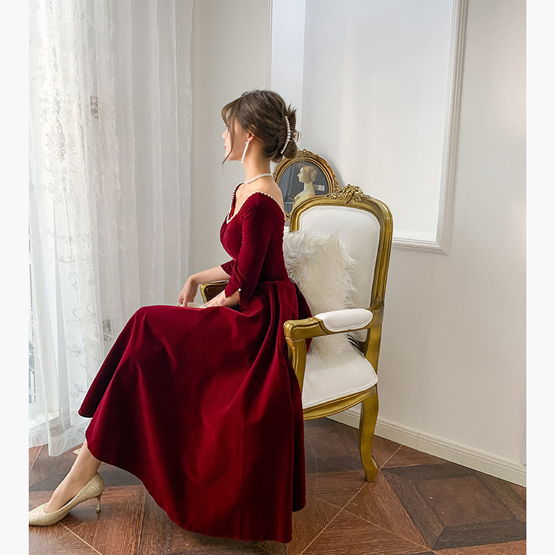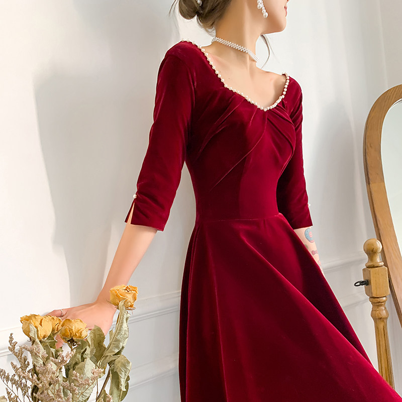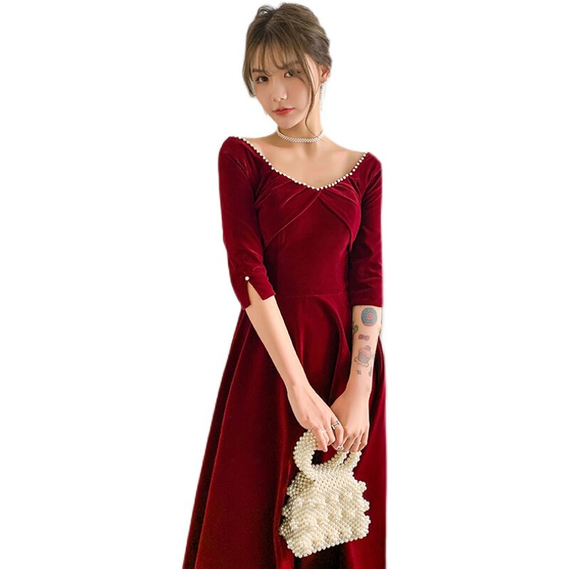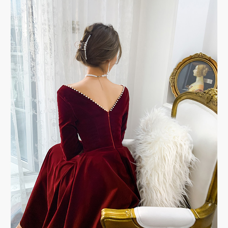 Свадебное платье, бордовое бархатное вечернее платье, коллекция 2022, подходит для подростков