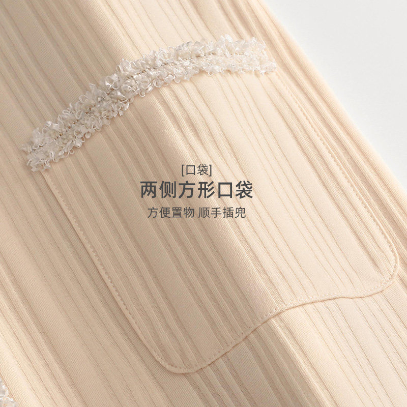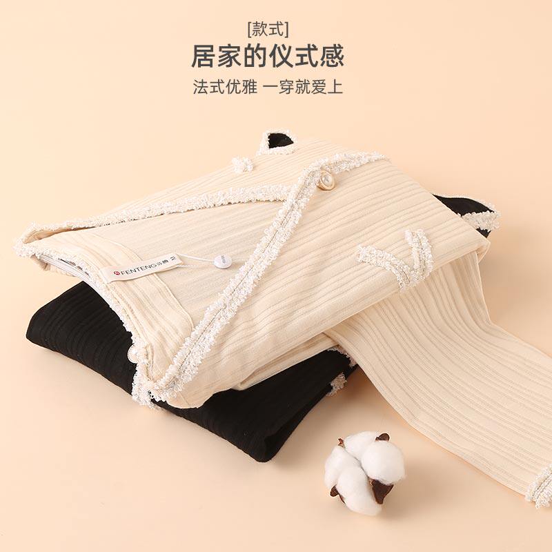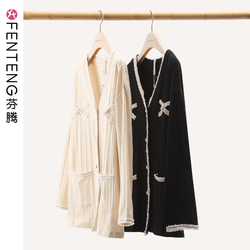 芬腾 Лонгслив, осенняя хлопковая пижама, кардиган, комплект, в стиле Шанель, V-образный вырез
