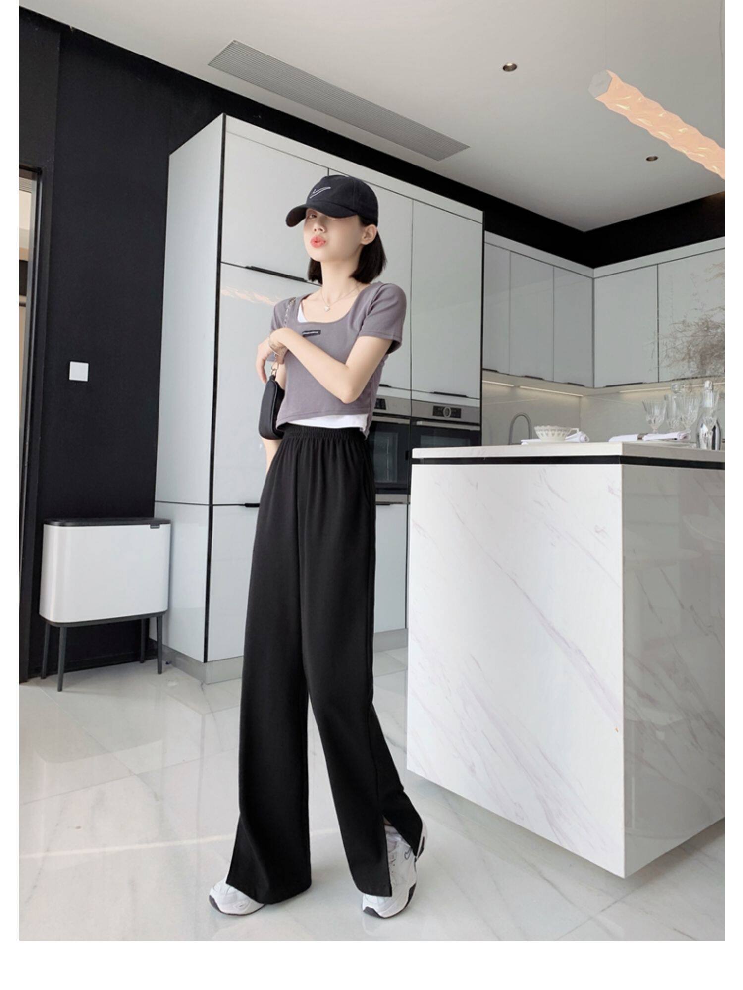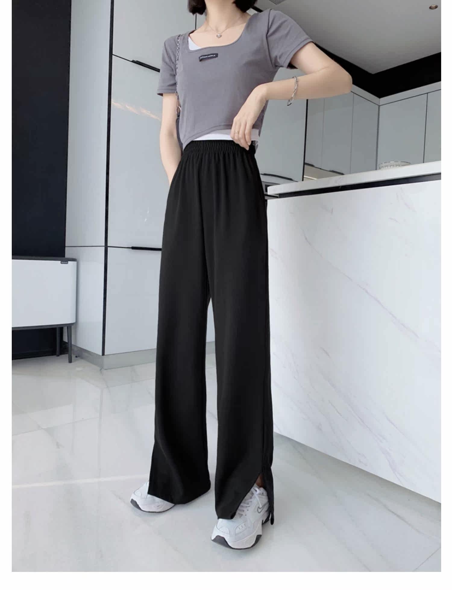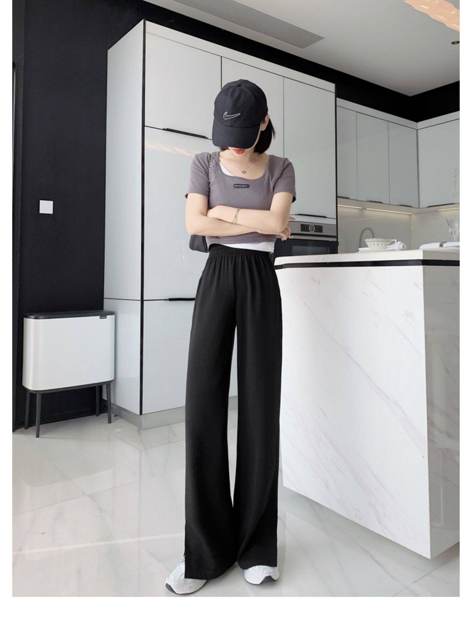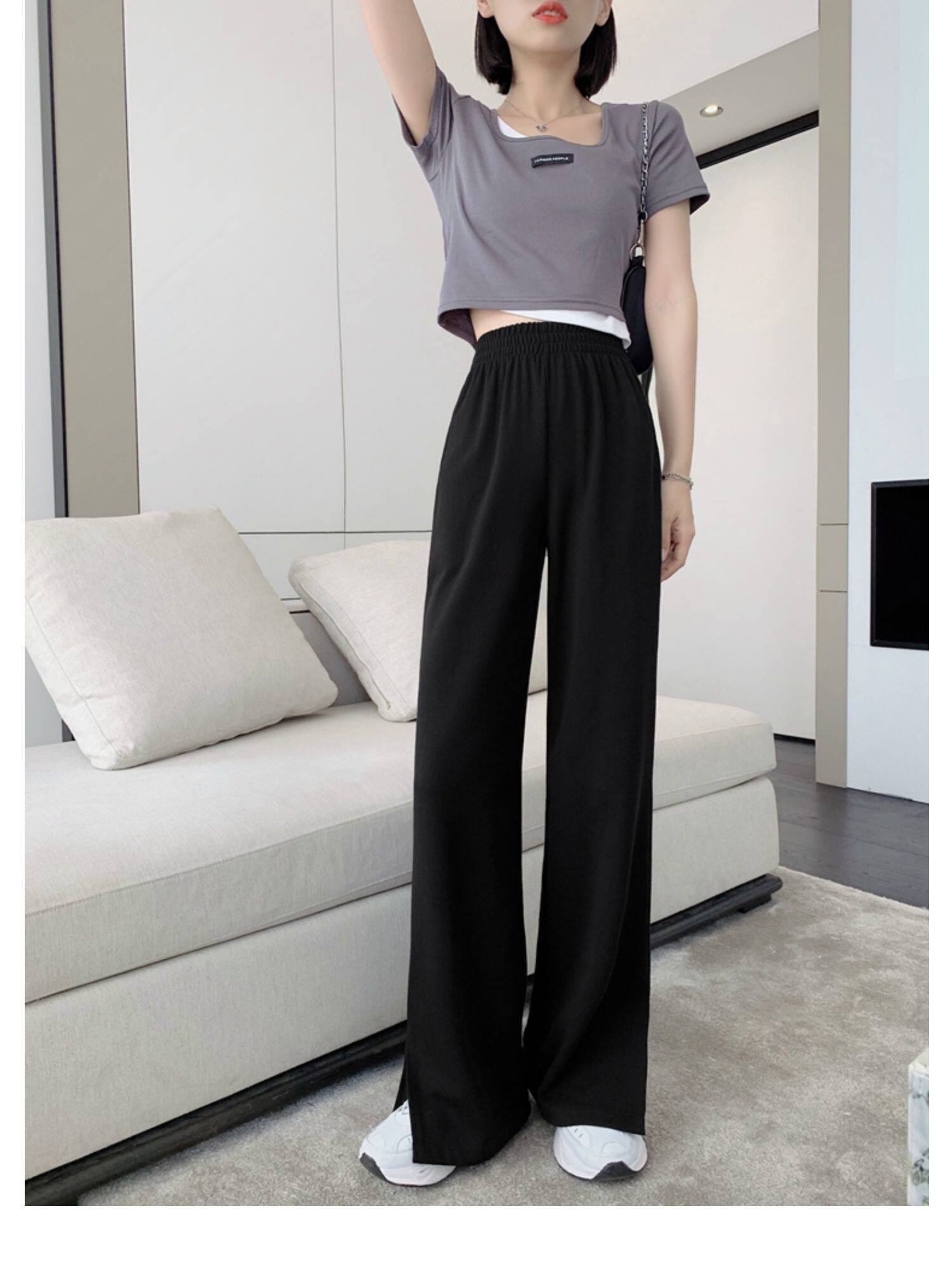 Тонкие штаны, высокая талия, свободный прямой крой