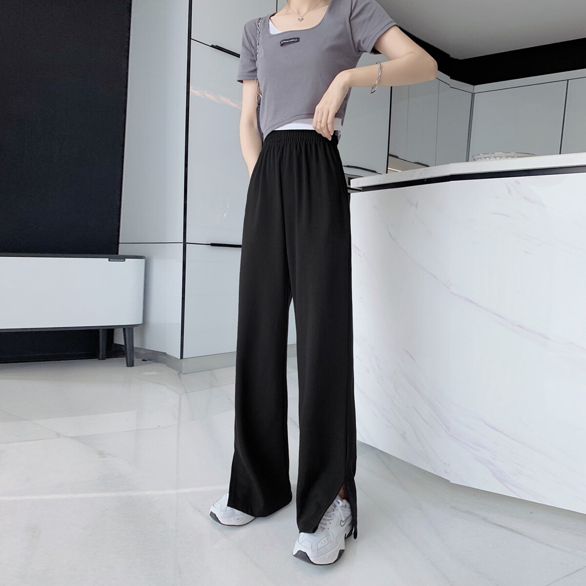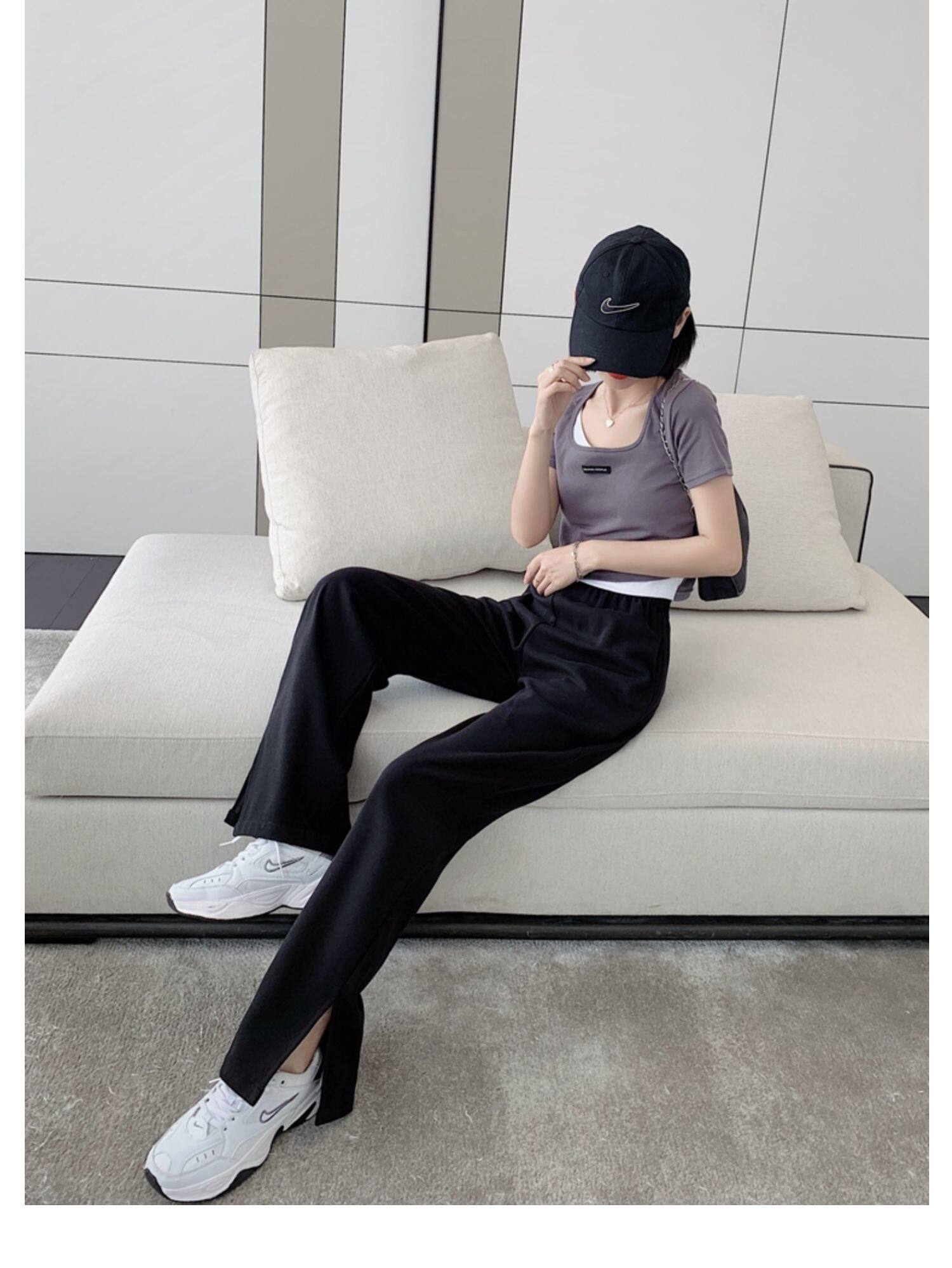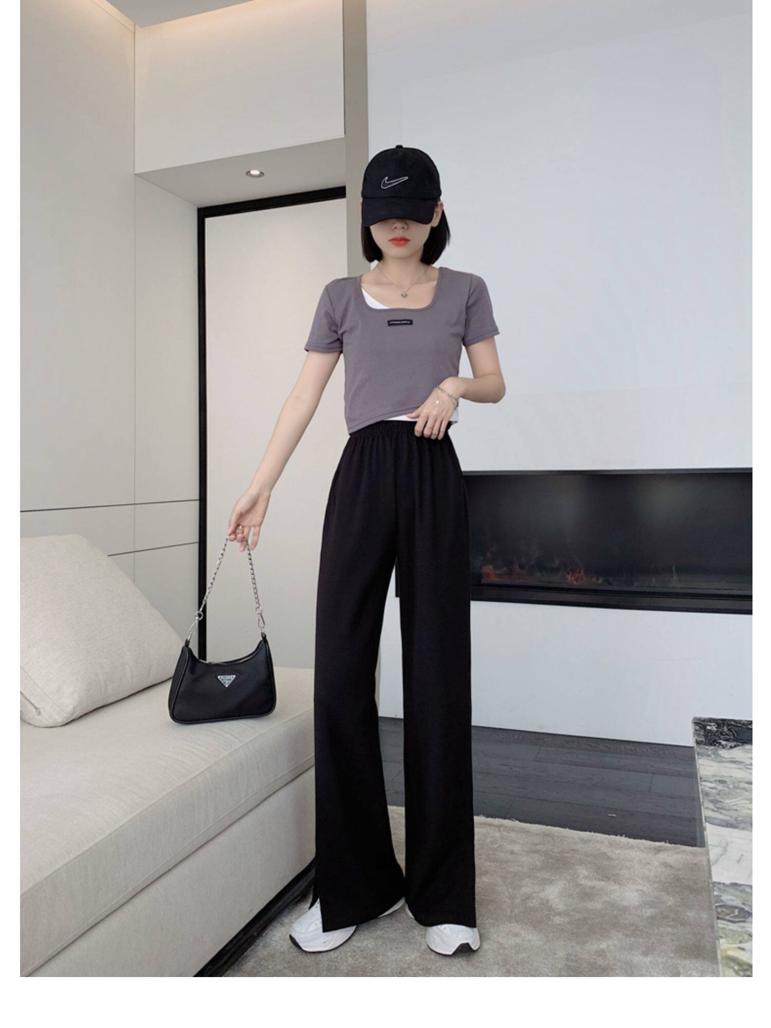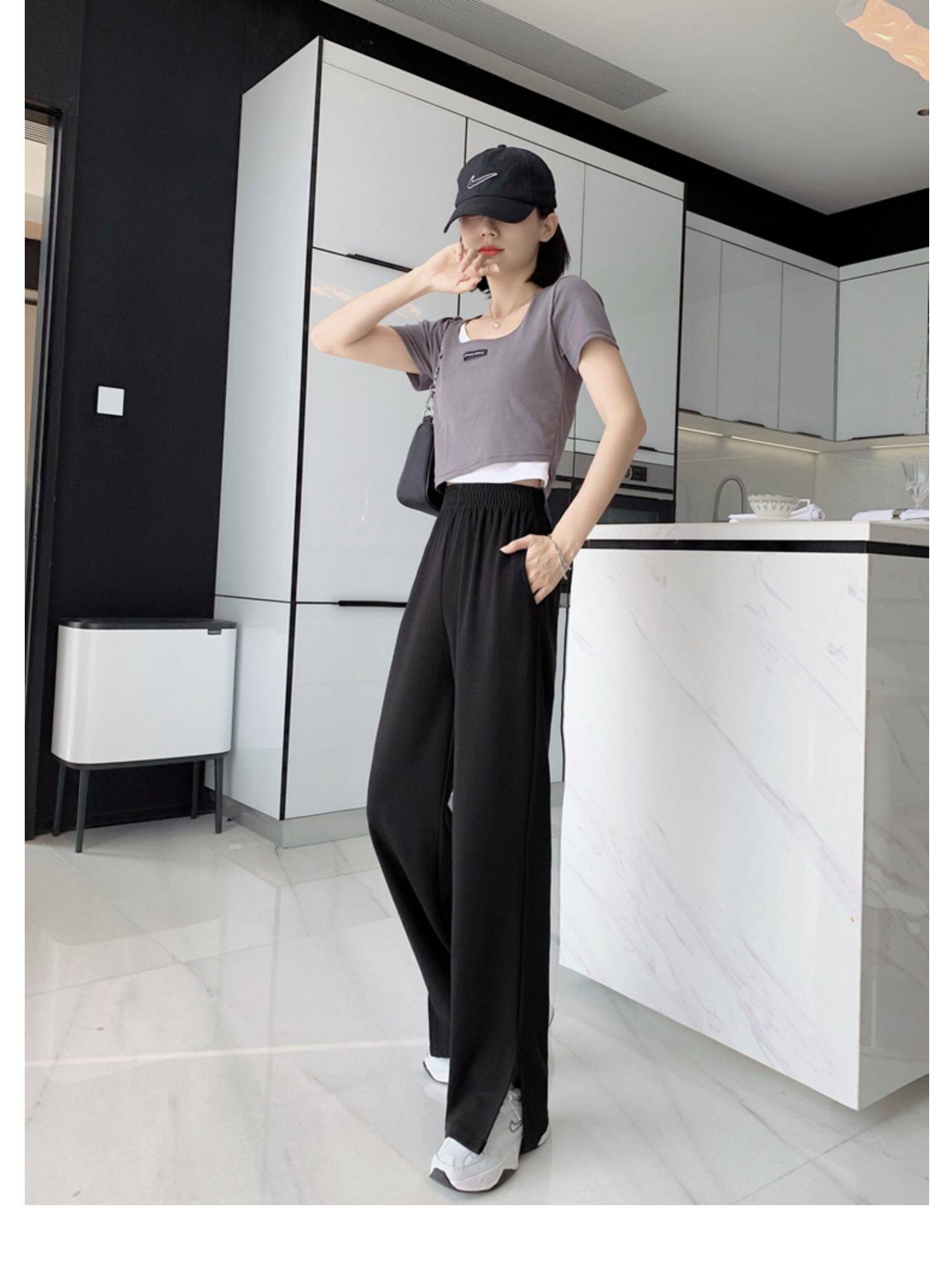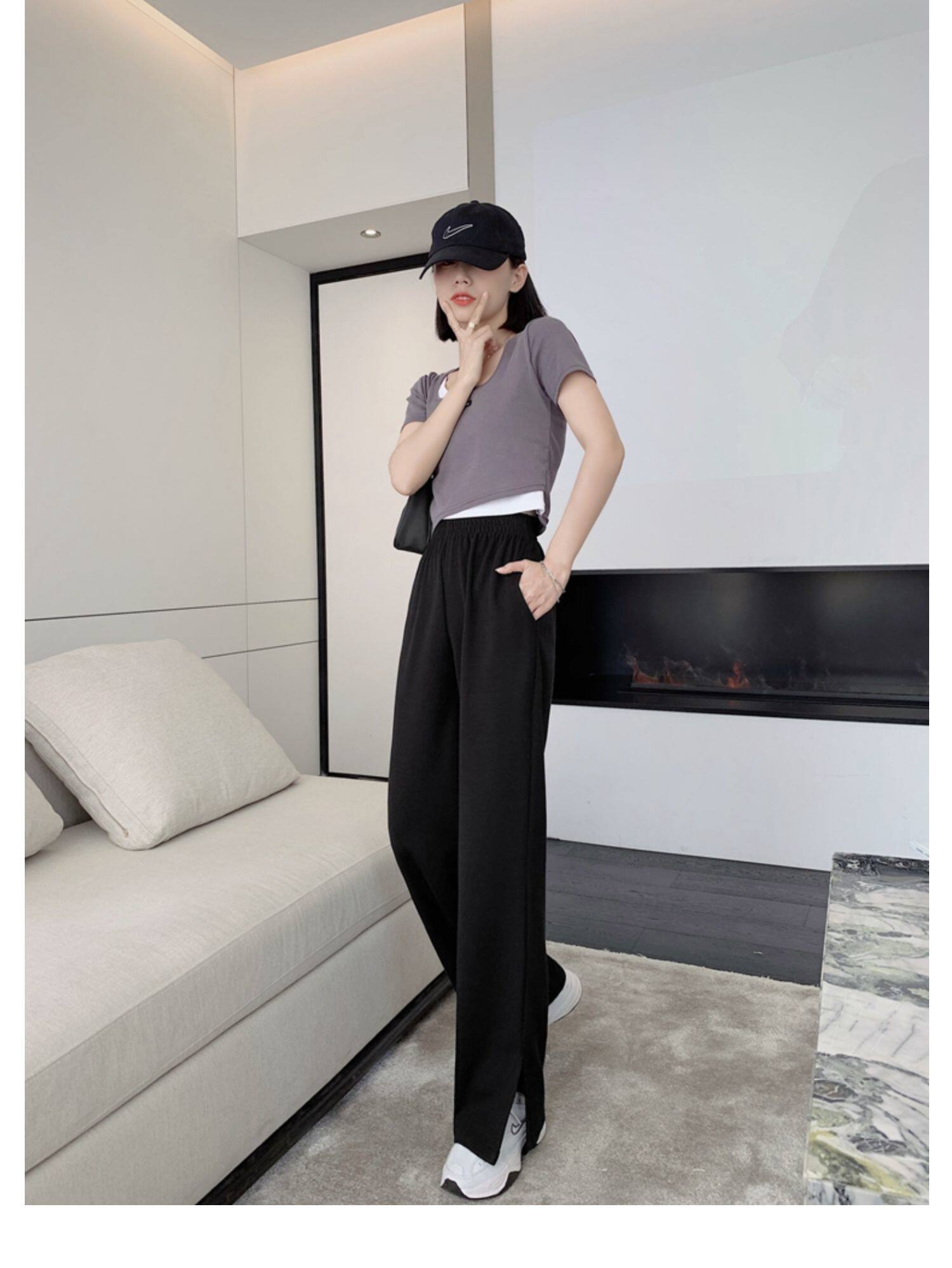 Тонкие штаны, высокая талия, свободный прямой крой