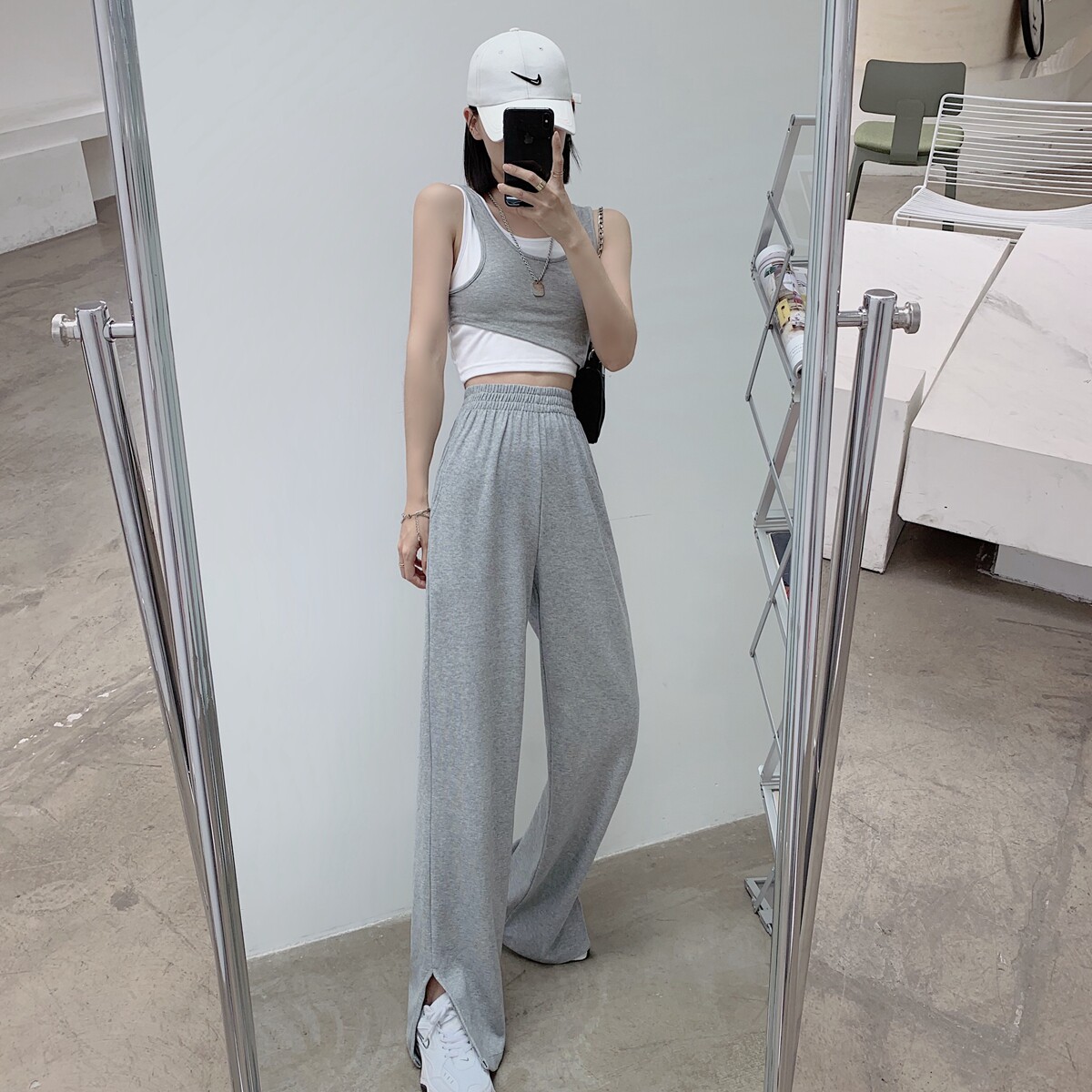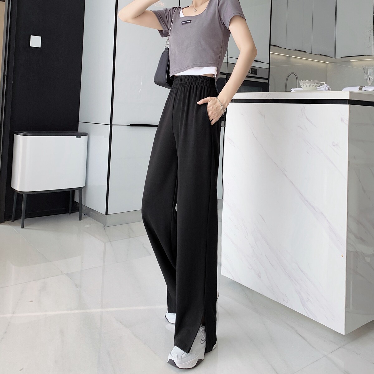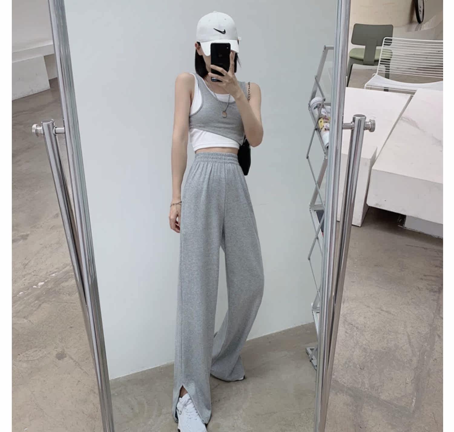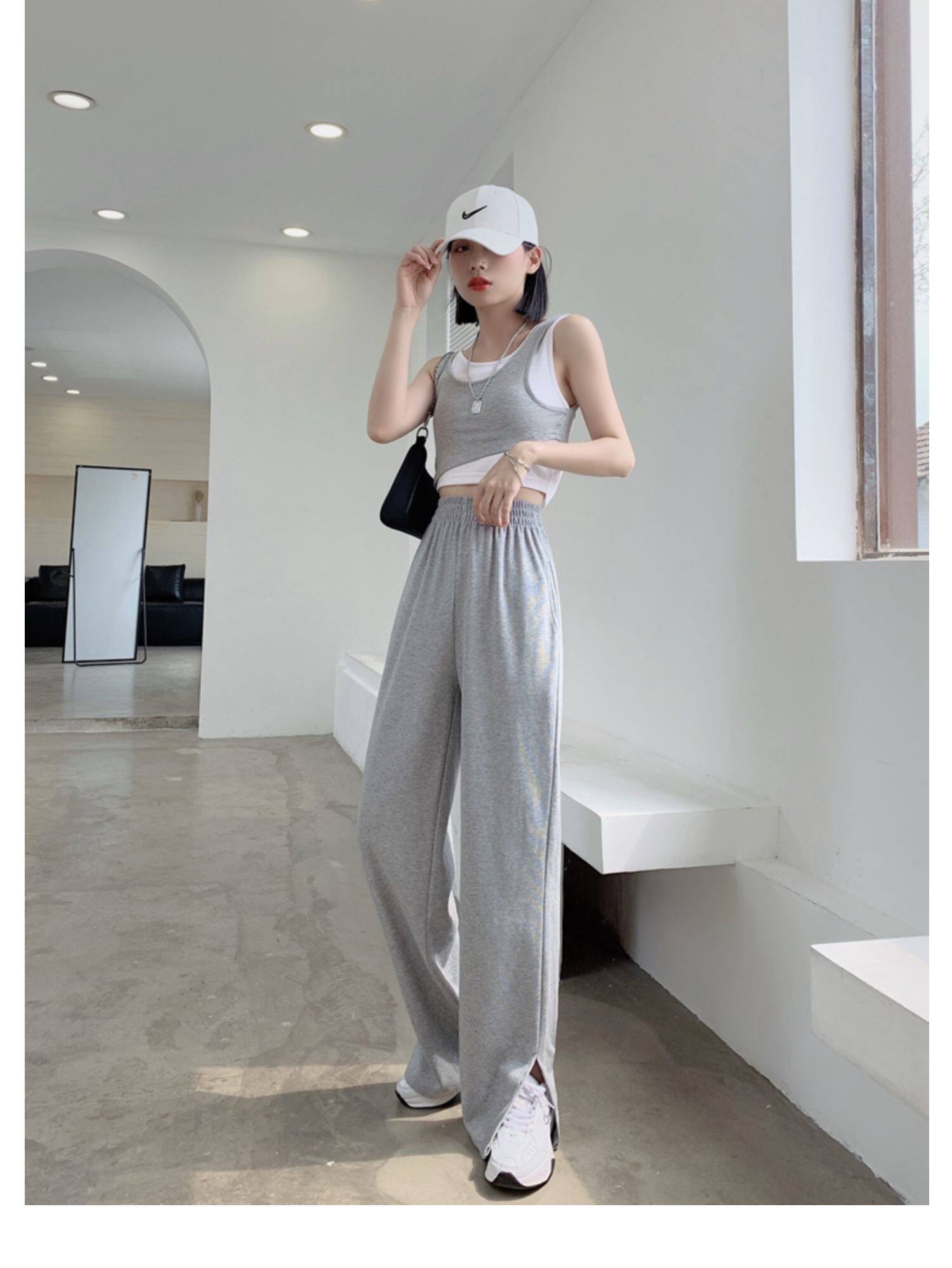 Тонкие штаны, высокая талия, свободный прямой крой