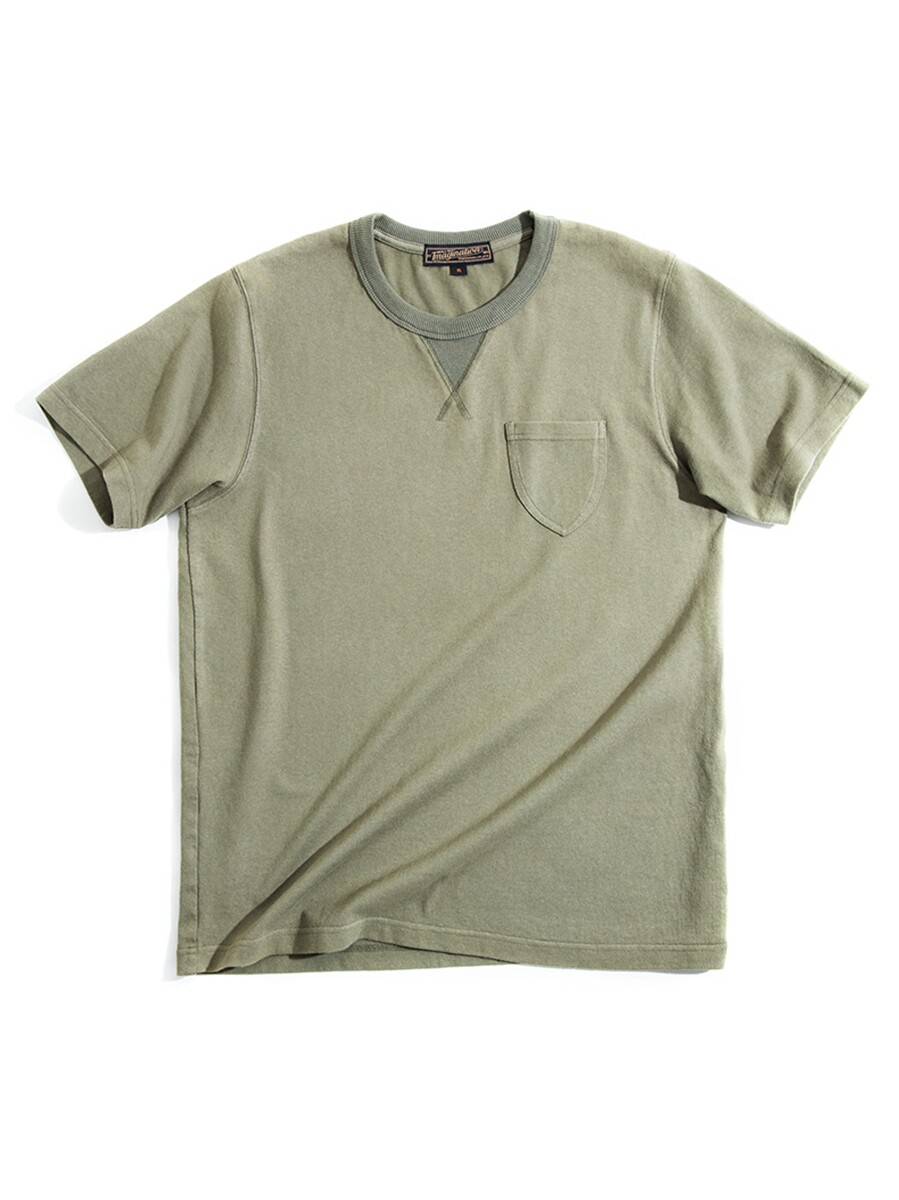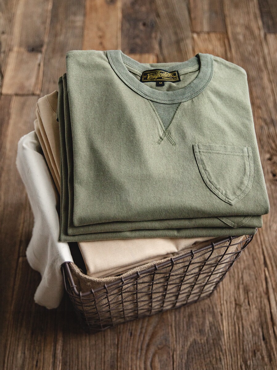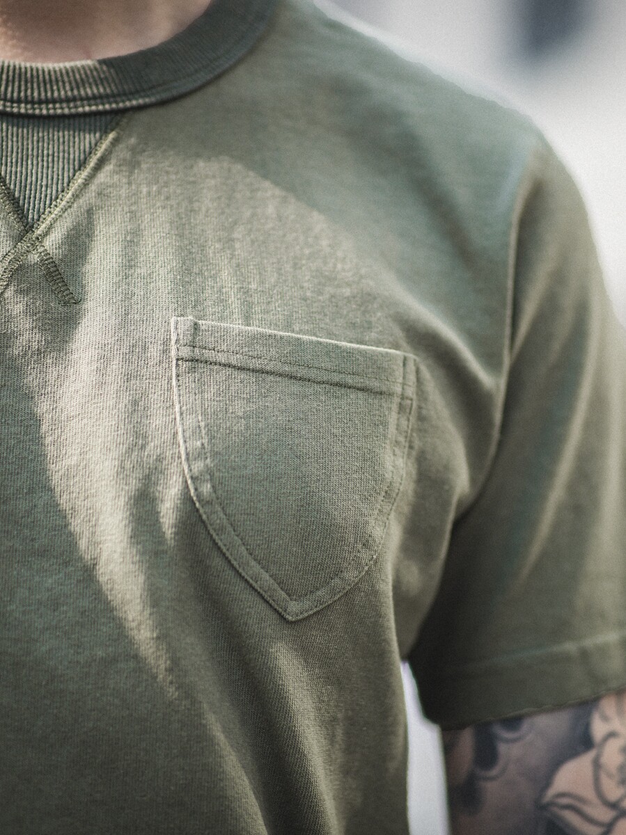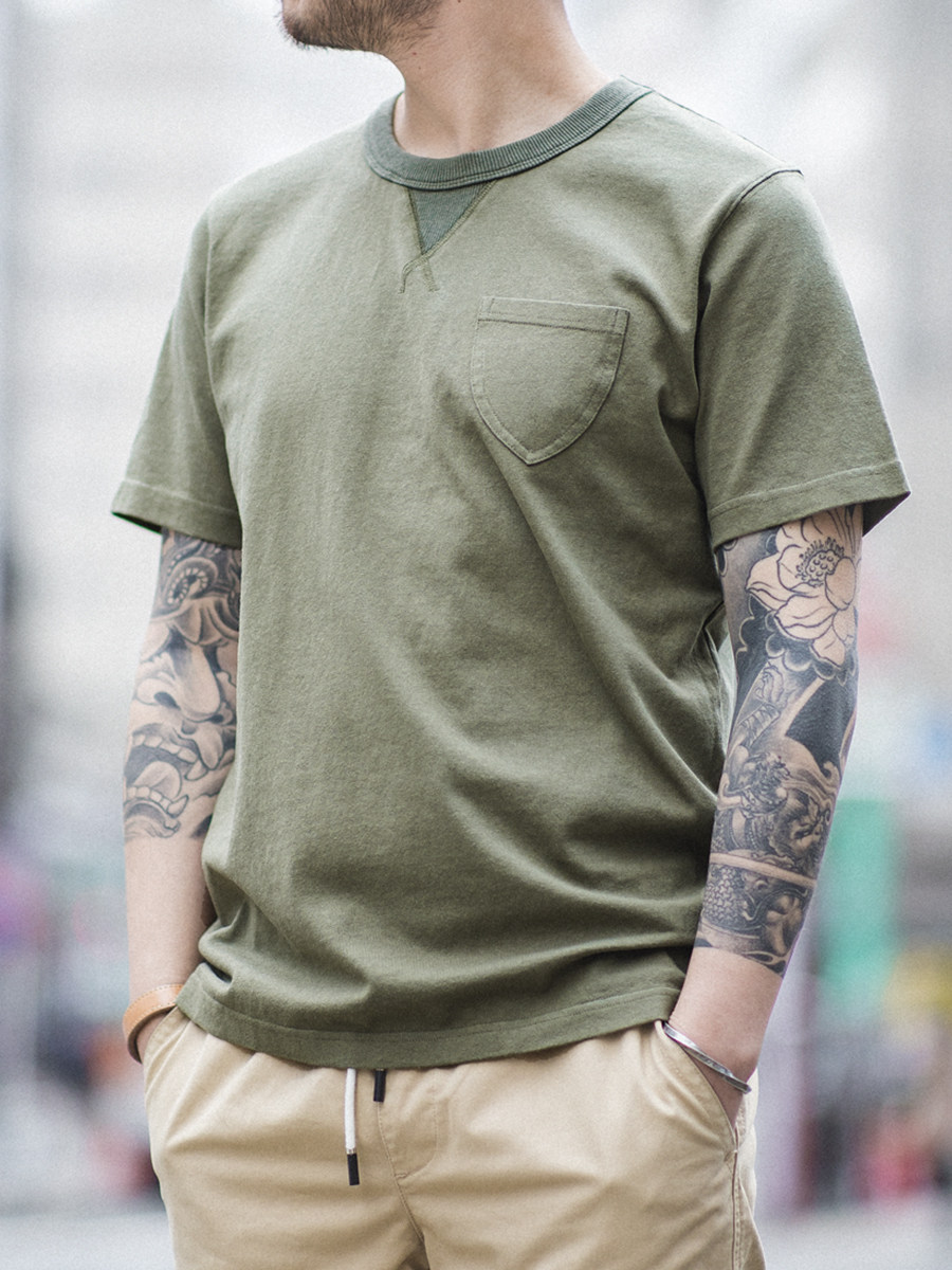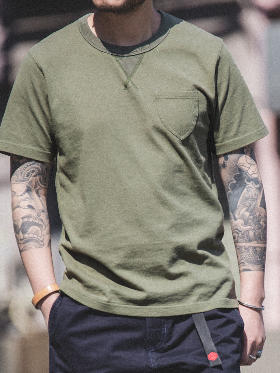 Хлопковая японская ретро зеленая футболка с коротким рукавом с круглым воротником