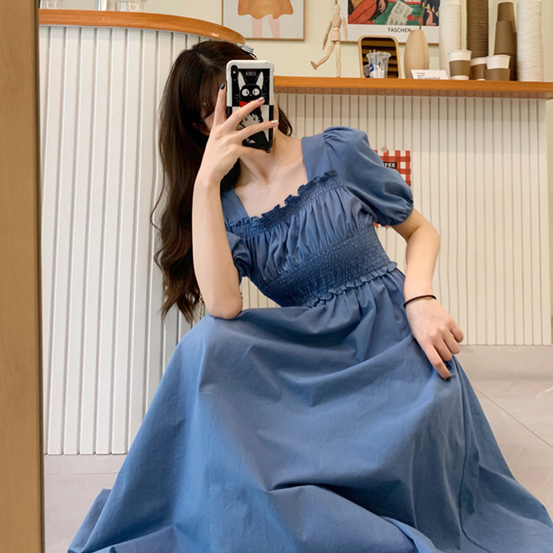 Летнее ретро платье, сексуальная длинная юбка, большой размер, квадратный вырез, французский ретро стиль