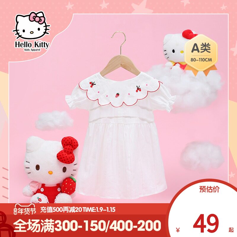 Hello Kitty, летняя трикотажная кукла, платье, детская одежда, подходит для подростков, короткий рукав, кукольный воротник, в цветочек