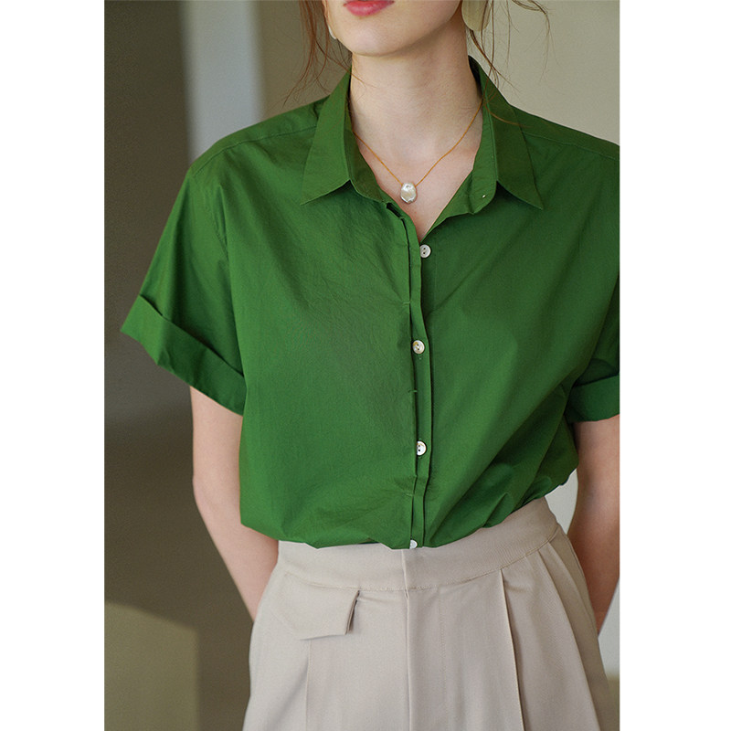 Ретро зеленая хлопковая рубашка, французский стиль