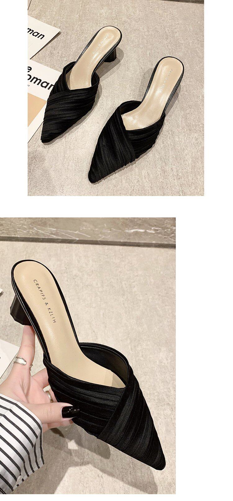 Обувь, весенняя сумка для обуви с заостренным носом на высоком каблуке, летние тапочки, 2024 года, тренд сезона