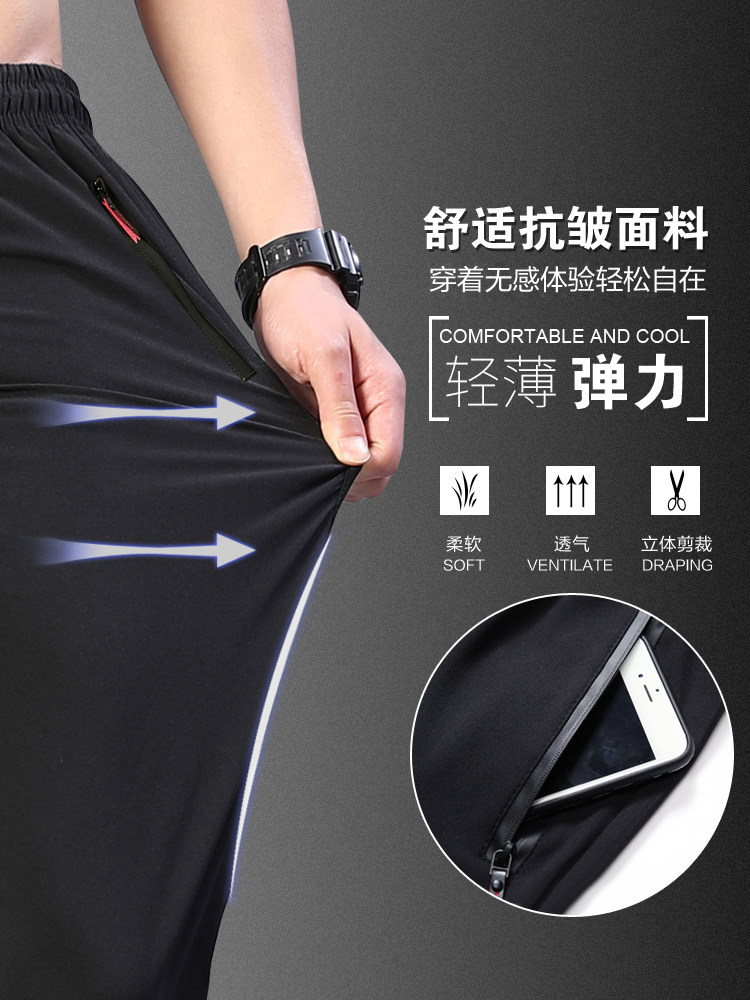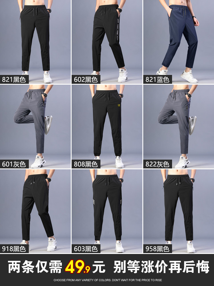 Мужские шелковые летние тонкие штаны, трендовые быстросохнущие спортивные повседневные брюки для отдыха, свободный прямой крой