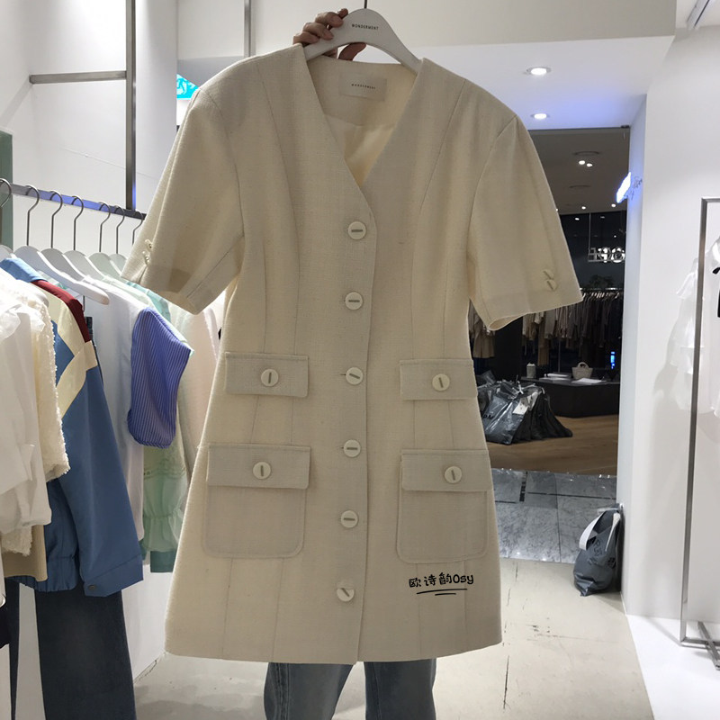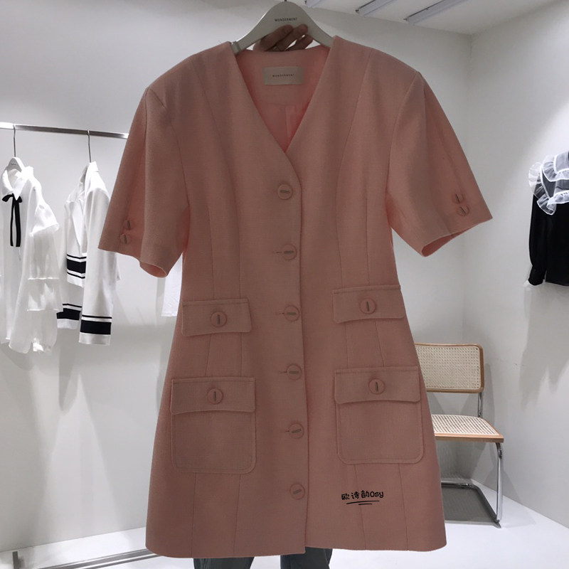 Летнее платье, приталенная юбка, в стиле Шанель, сезон 2021, в корейском стиле, короткий рукав