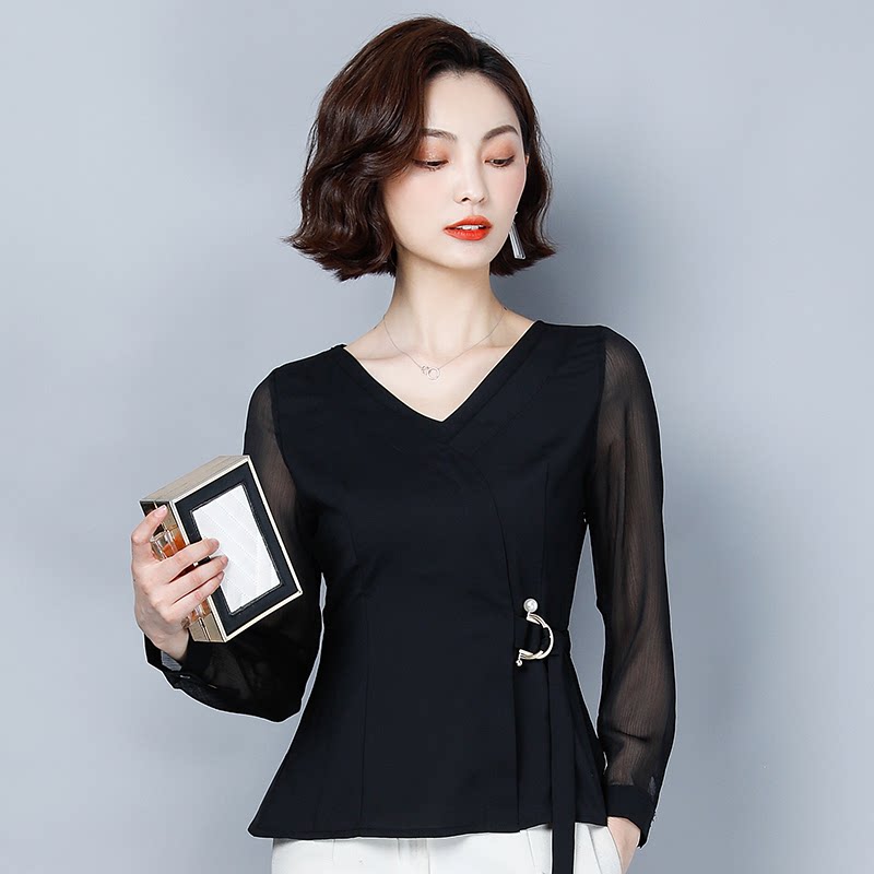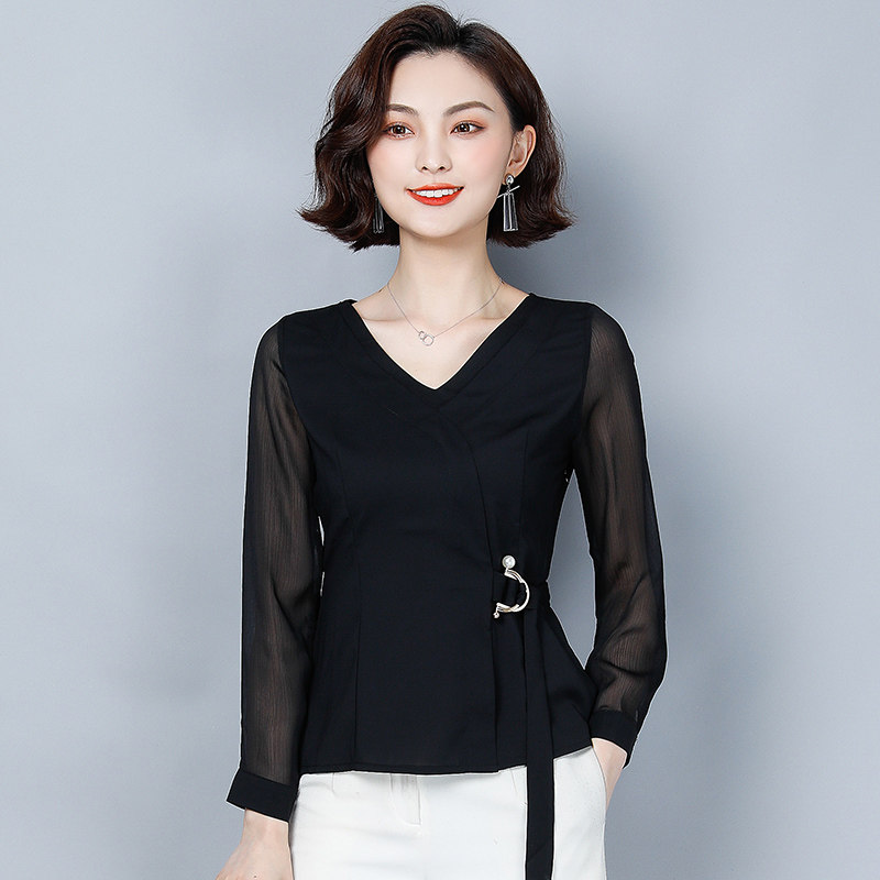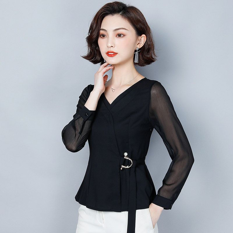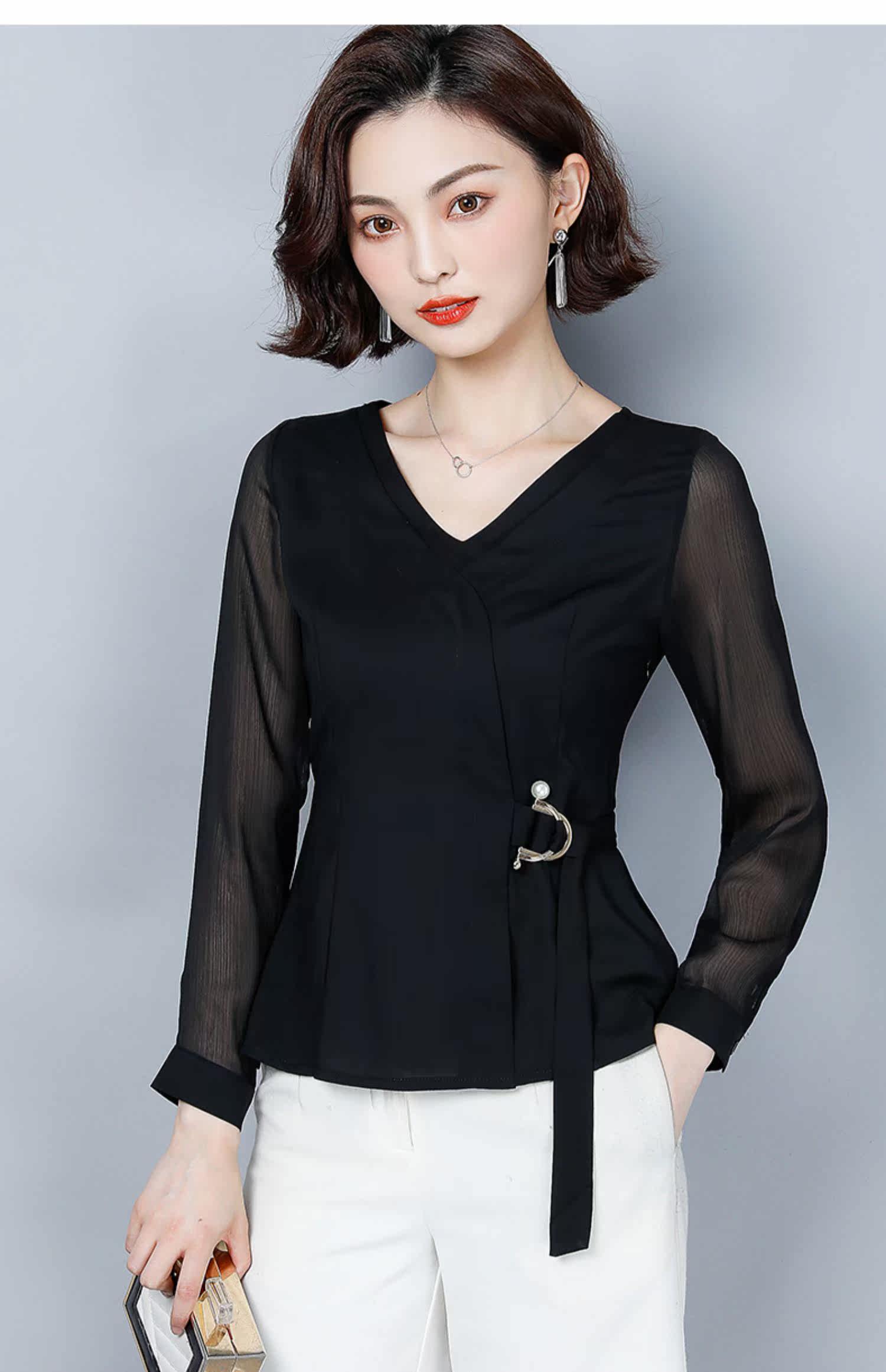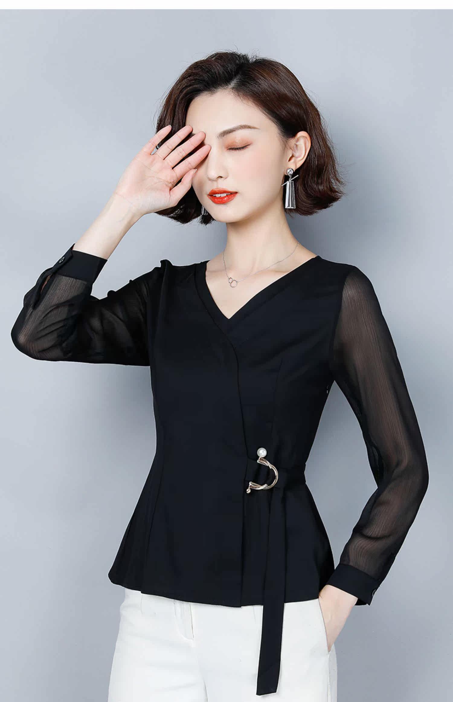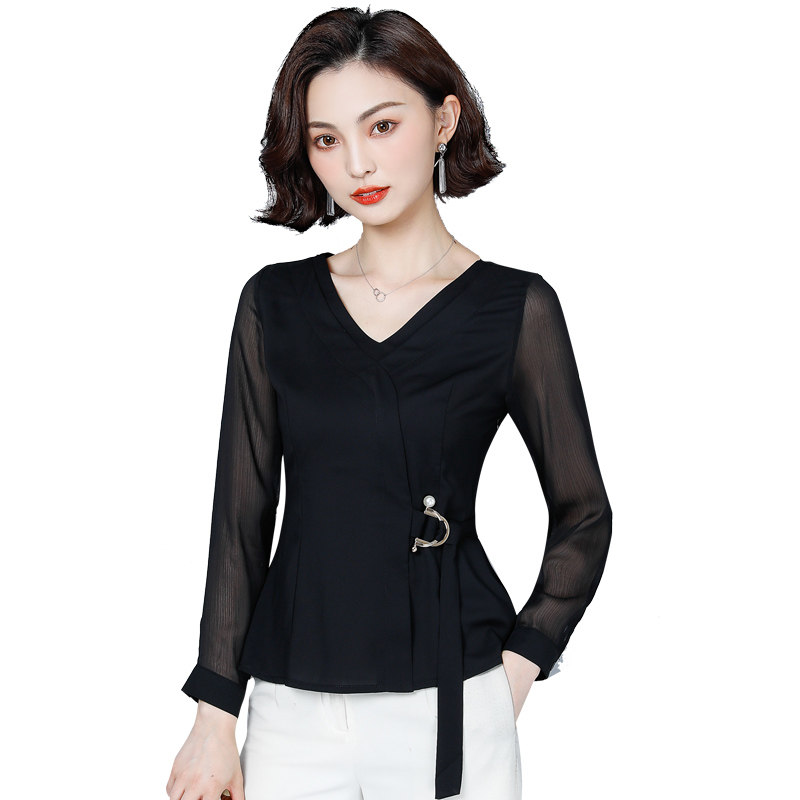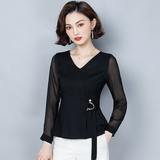 Шифоновый базовый приятный телу осенний лонгслив, приталенный корсет, рубашка, коллекция 2022, в западном стиле, в корейском стиле