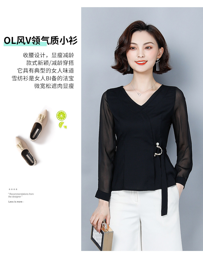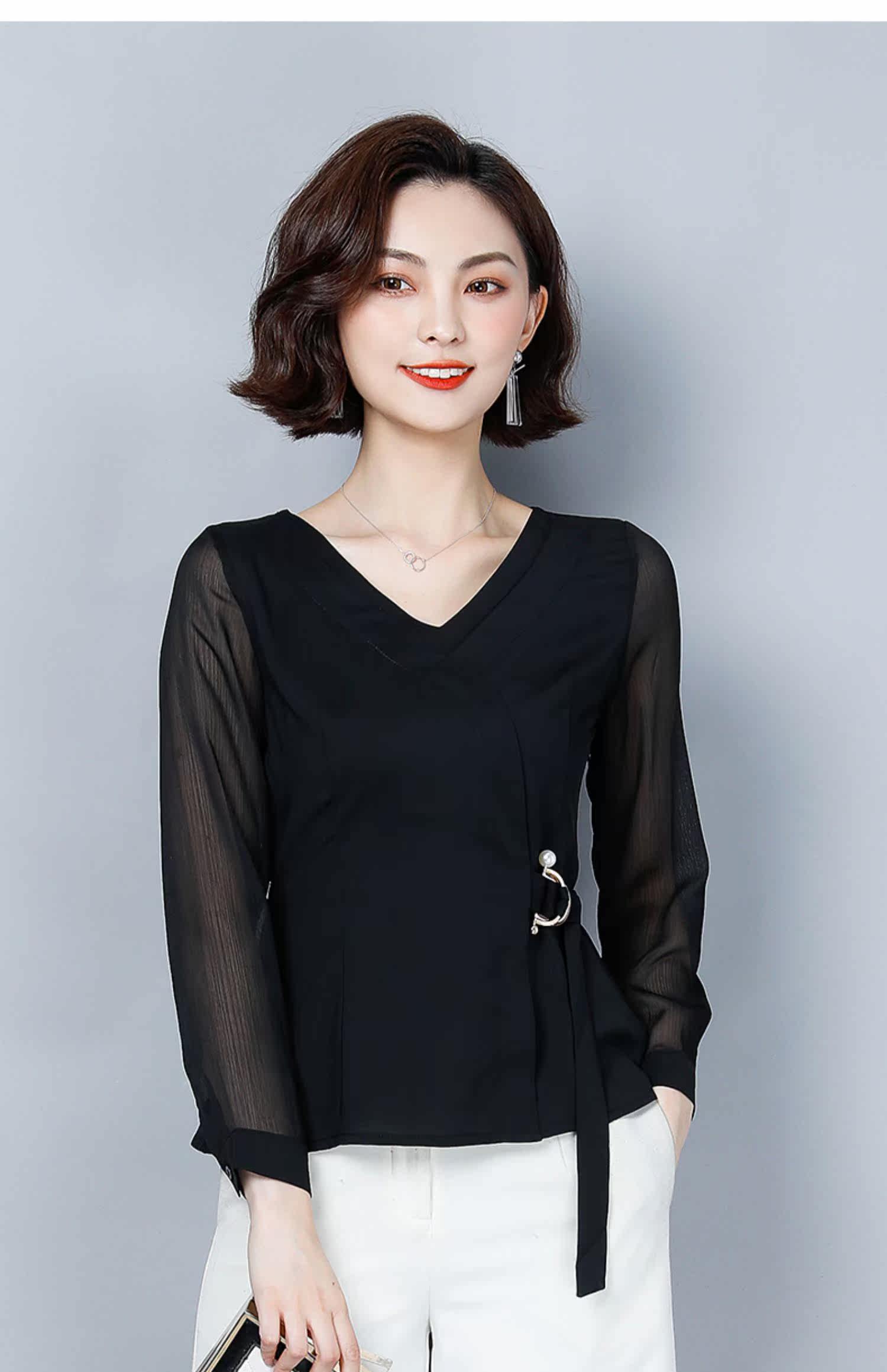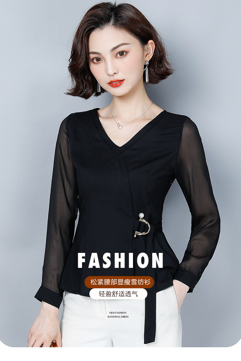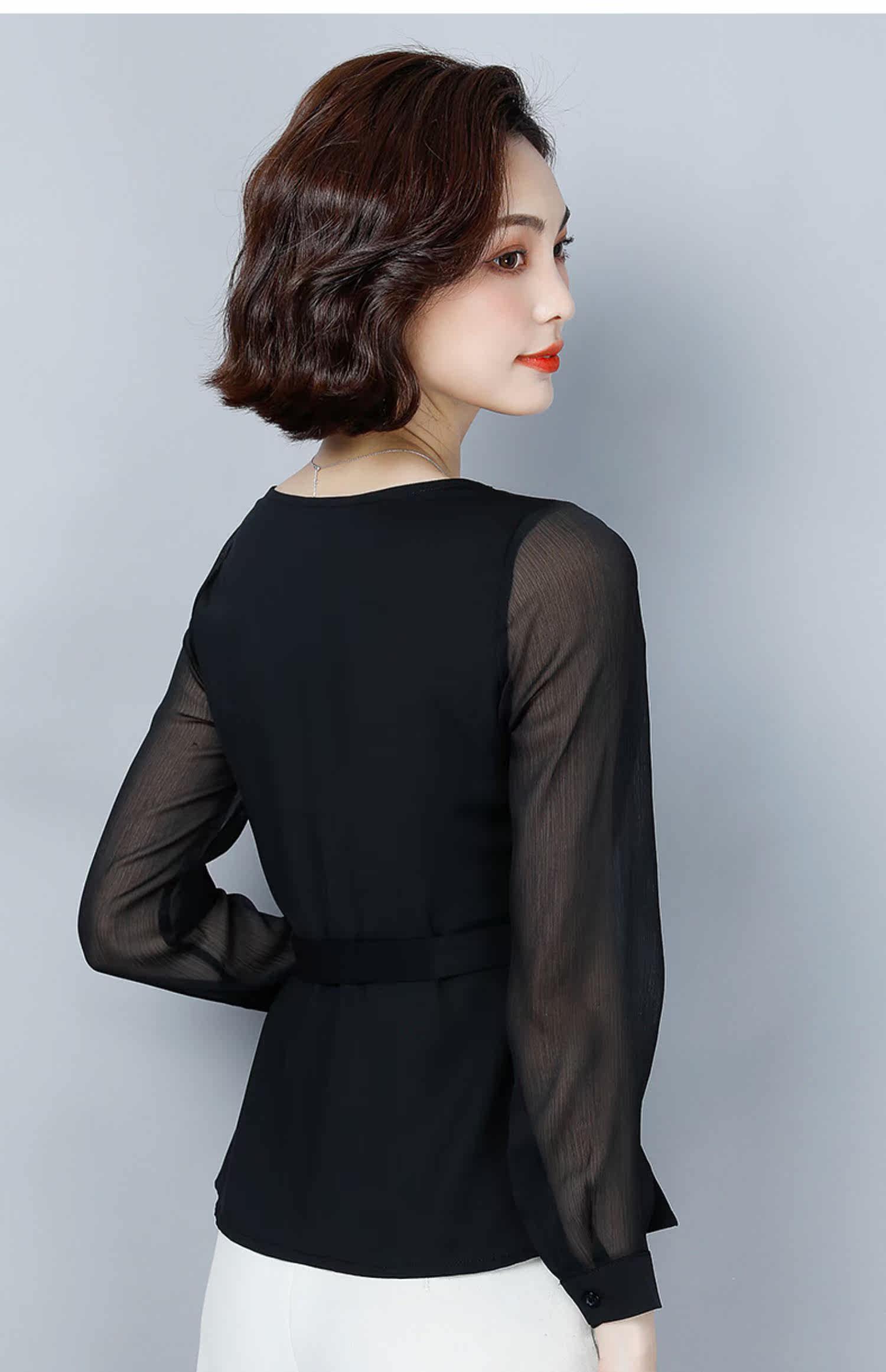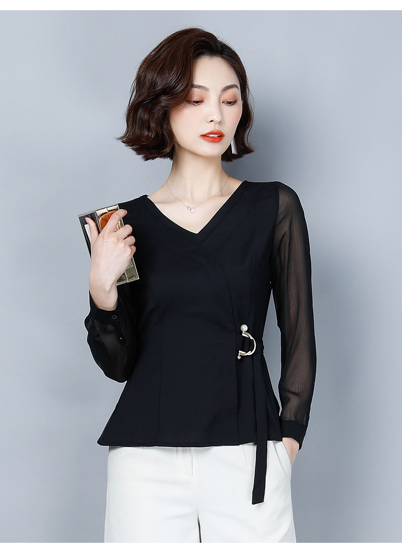 Шифоновый базовый приятный телу осенний лонгслив, приталенный корсет, рубашка, коллекция 2022, в западном стиле, в корейском стиле