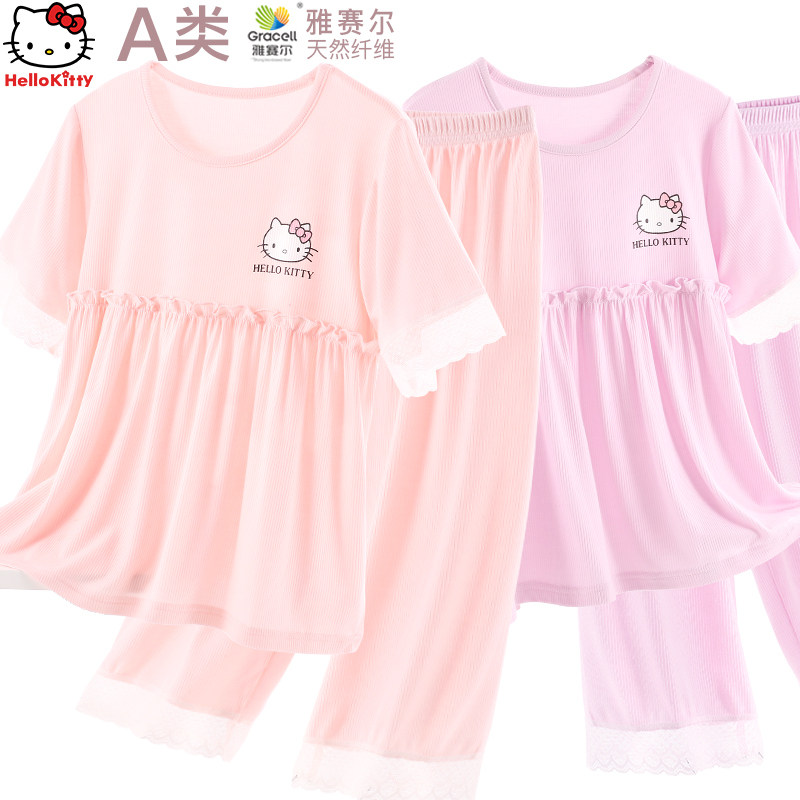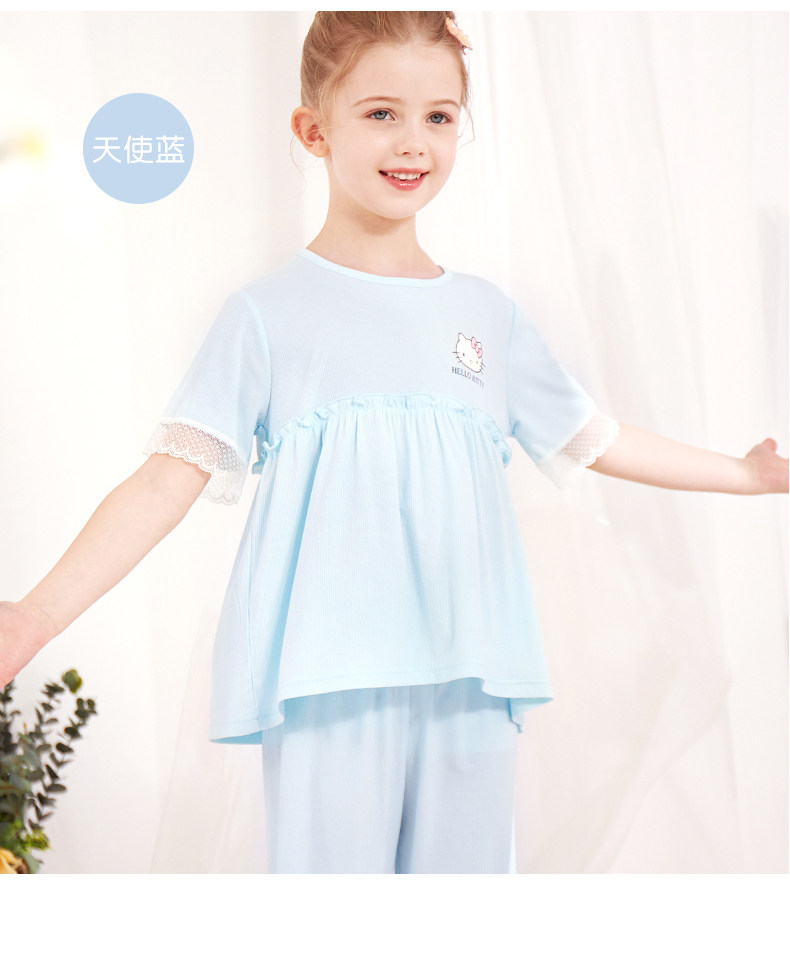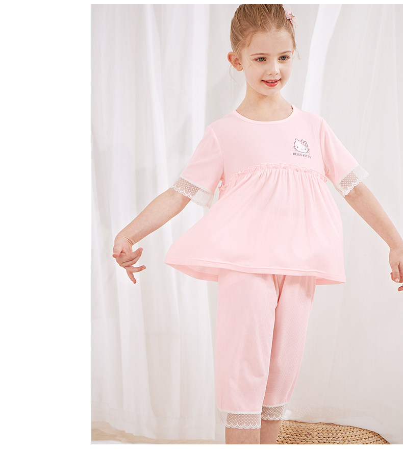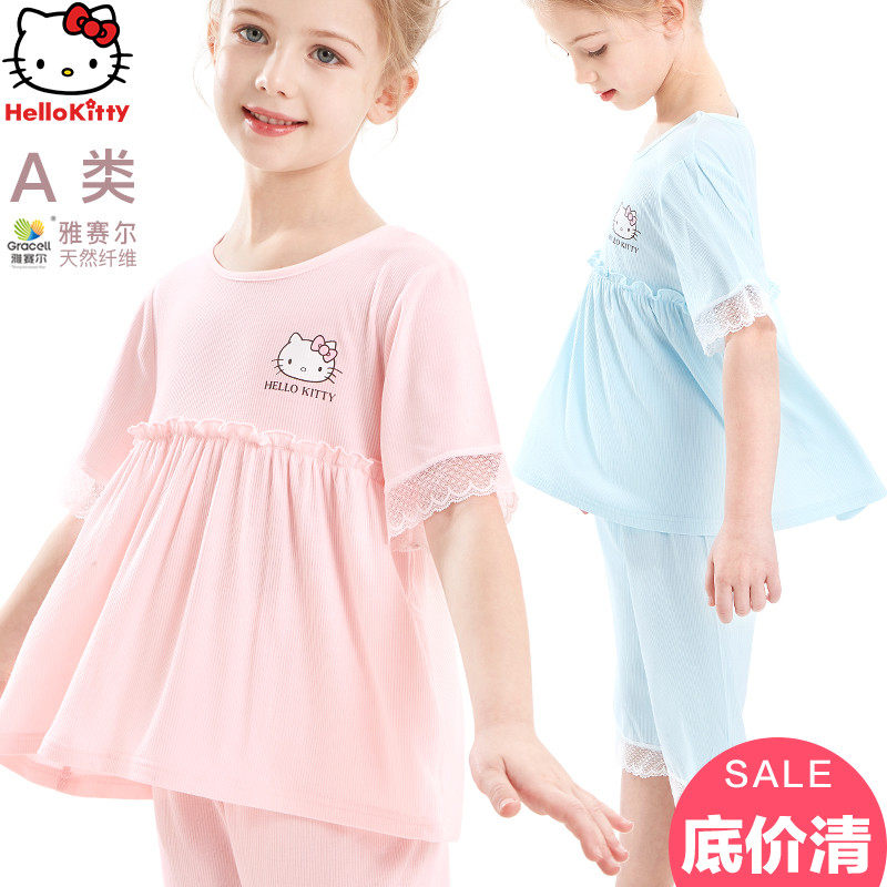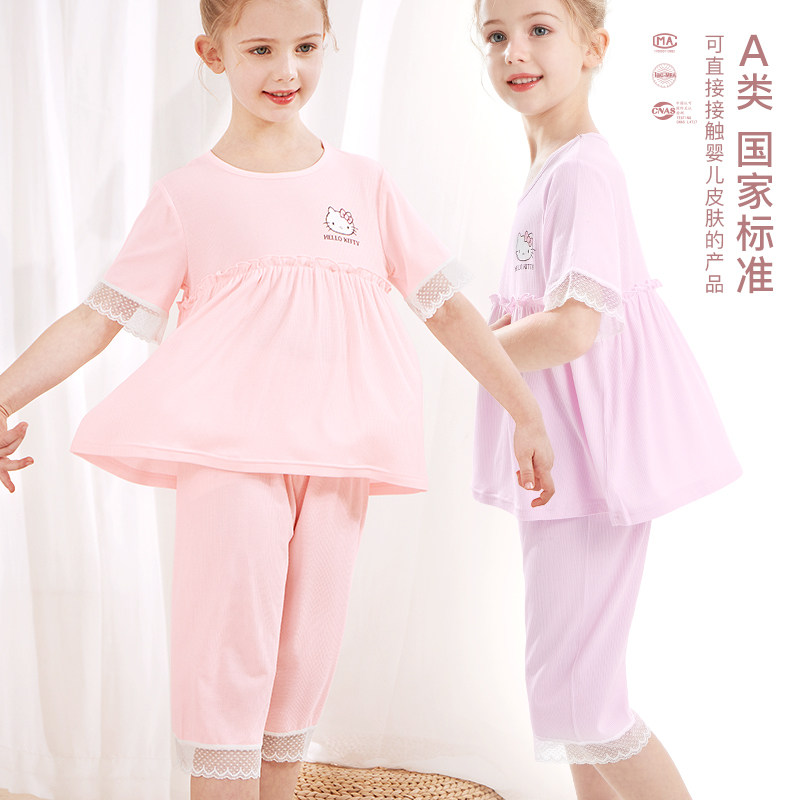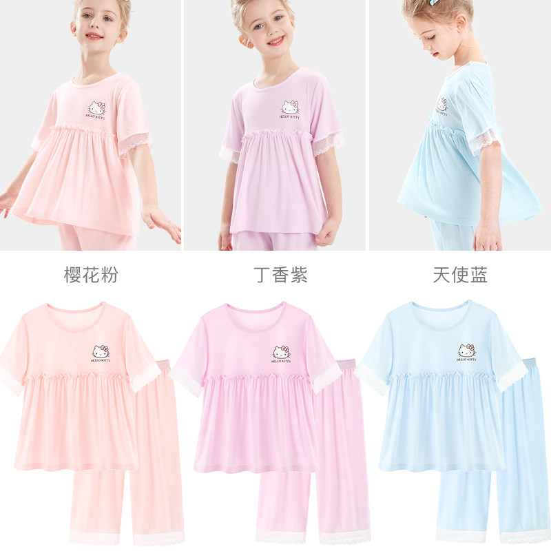 Летняя детская пижама, шелковые тонкие нарукавники, детский кружевной костюм принцессы, сшита из модала, короткий рукав