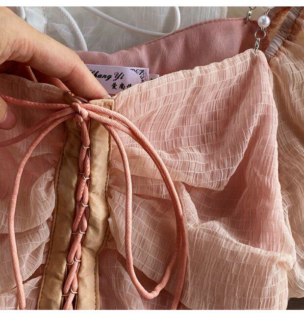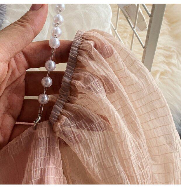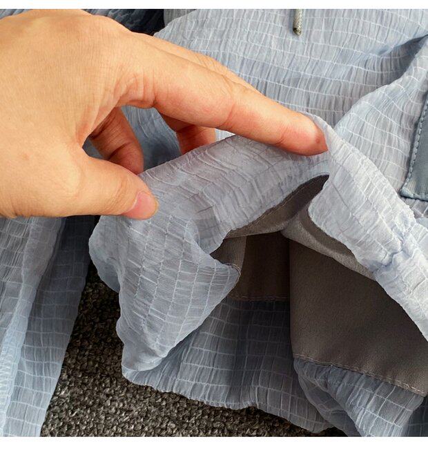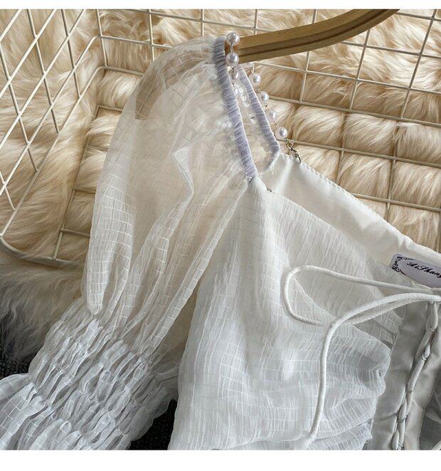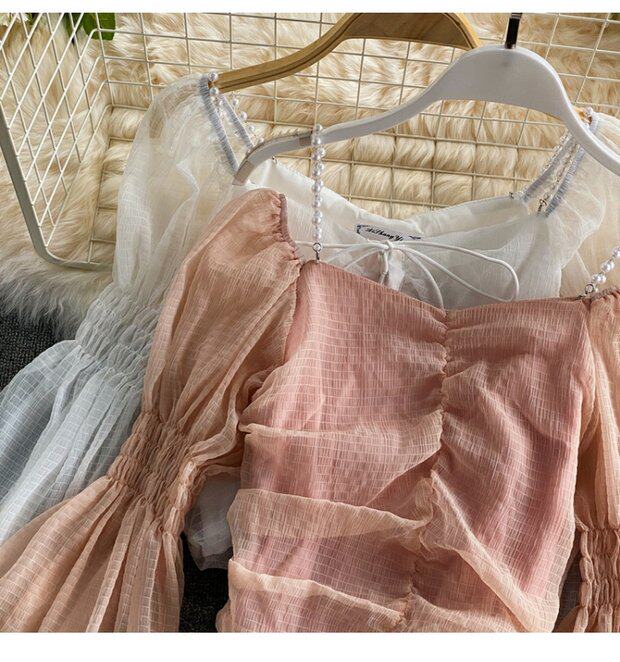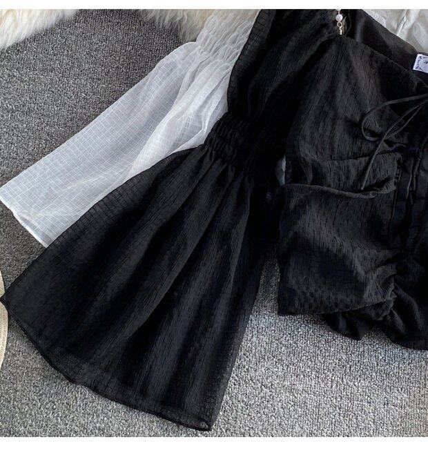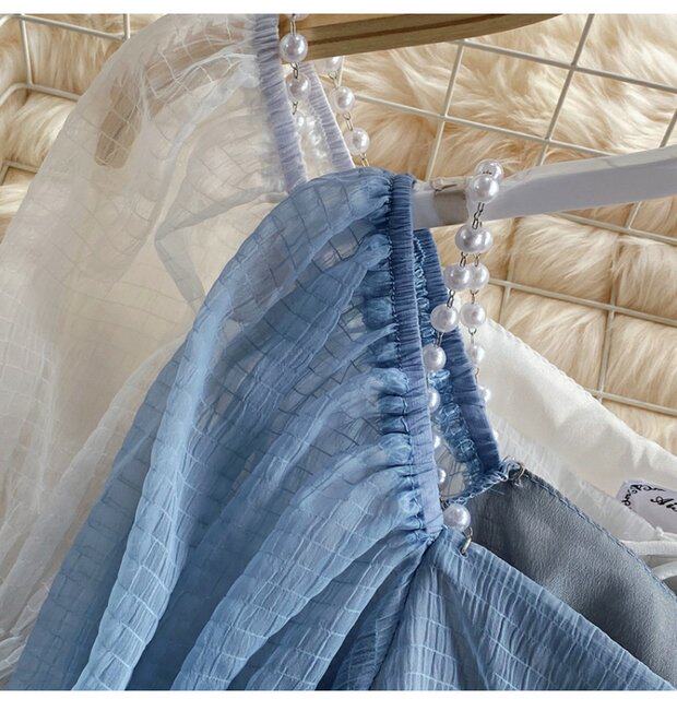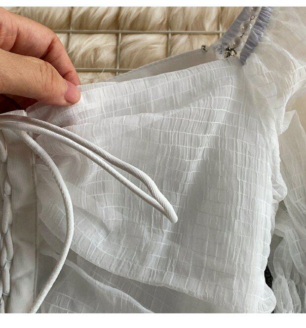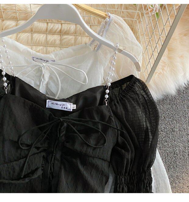 Шифоновая летняя рубашка, мегафон, эффект подтяжки, Франция, высокая талия, квадратный вырез, облегающий крой
