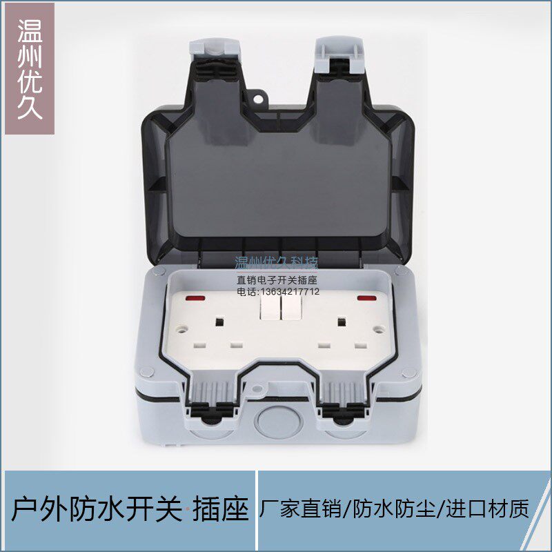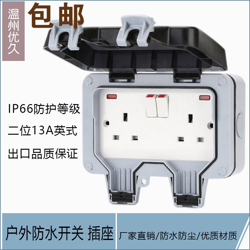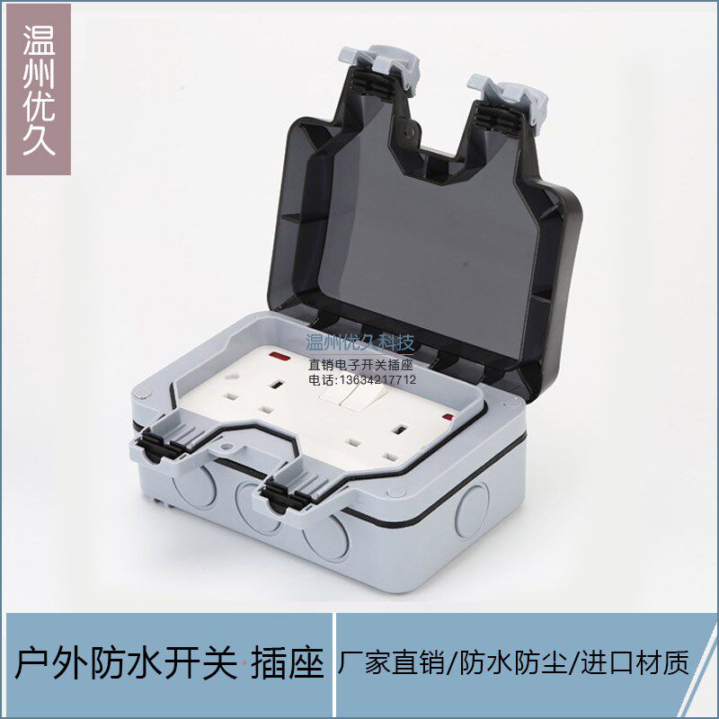 IP66 British указывает, что наружные водонепроницаемые розетки 13A с выключателем с выключателем британской брызг и гидронепроницаемым гнездам