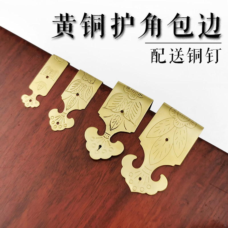 Латунная антикварная коробочка для хранения, подарочная коробка, деревянная коробка, защитные накладки на углы, китайский стиль