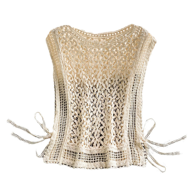 Летний трикотажный свитер с круглым воротником, в корейском стиле, на шнурках, короткий рукав