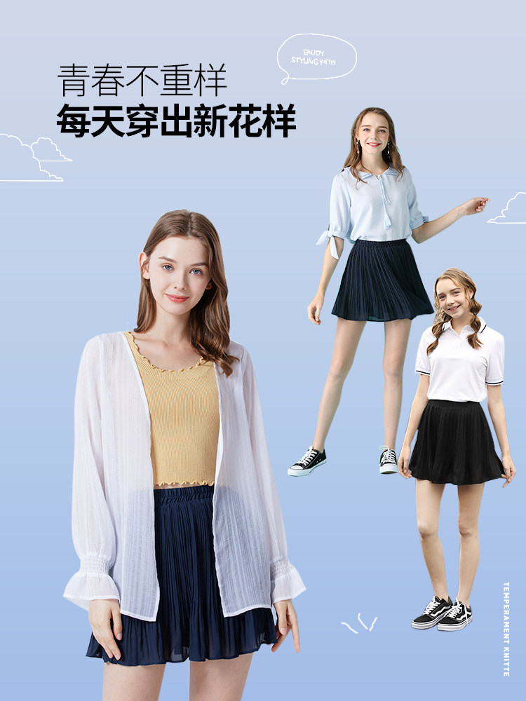 艾米恋 Летняя юбка в складку, шифоновые короткие штаны, высокая талия, А-силуэт