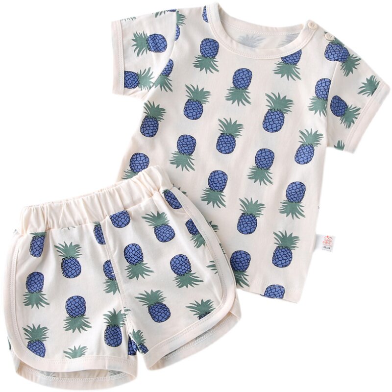 Детская раздельная летняя одежда подходит для мужчин и женщин, комплект для девочек, хлопковая летняя пижама, короткий рукав, в западном стиле