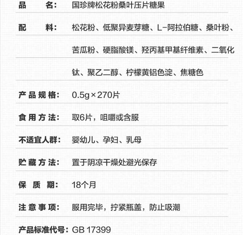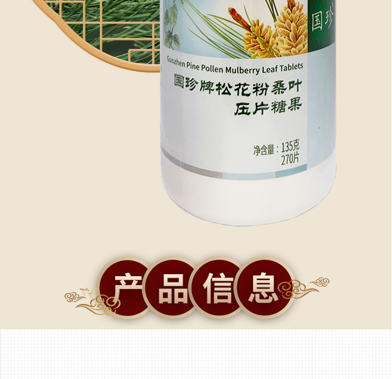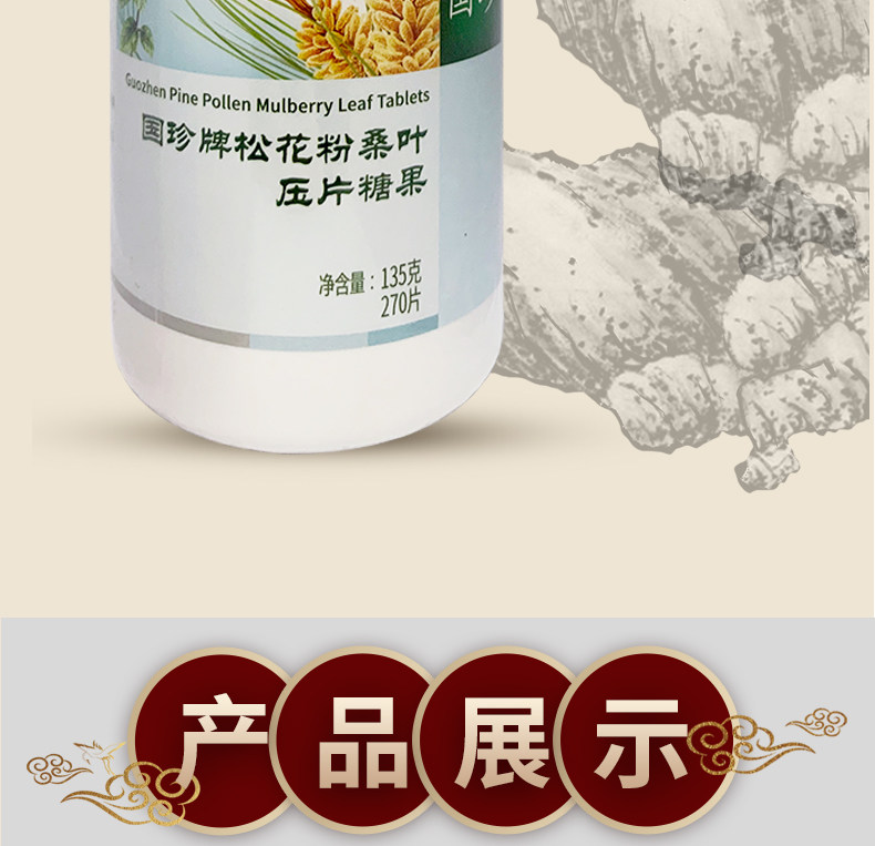 国珍 Бренд сосна пыльца шелковица чип -чип -чип Candy 270 таблетки/бутылка оригинальная сосна пыльца 270 обновлять версию официального веб -сайта Guizhen