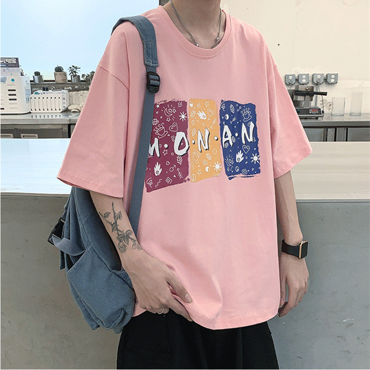 Освежающая розовая базовая футболка с коротким рукавом, большой размер, свободный крой, оверсайз